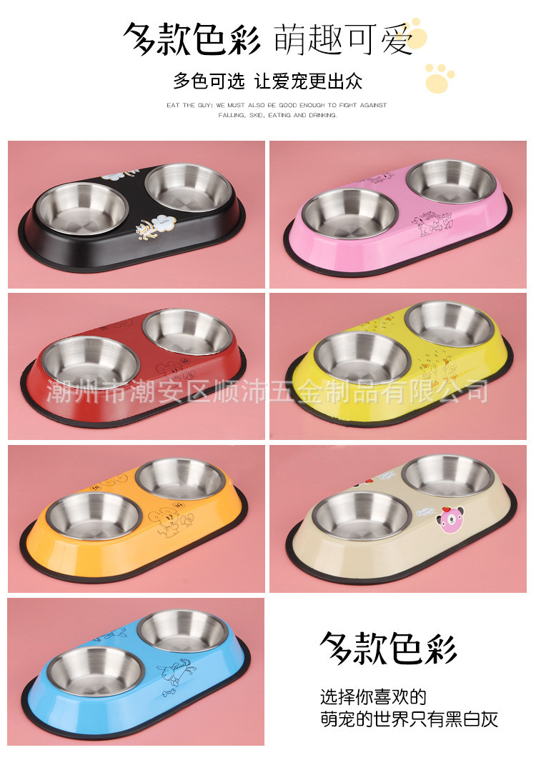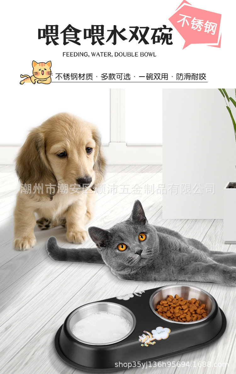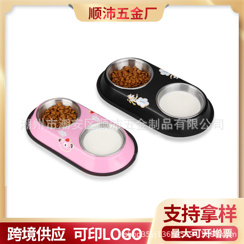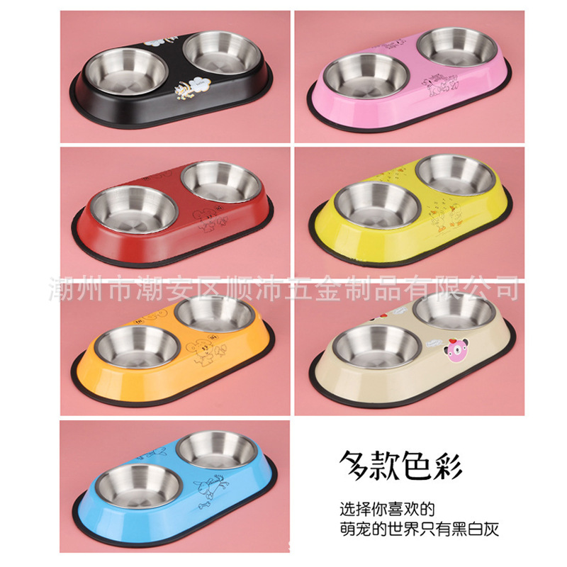 Трансграничные из нержавеющей стали Кошка Чаша оптом двойного назначения поилка утолщенная краска кормления собака чаша красочные ПЭТ двойной чаша