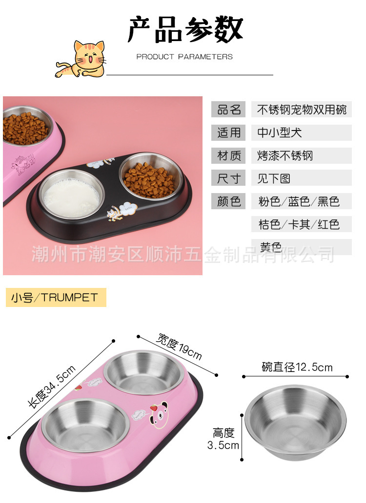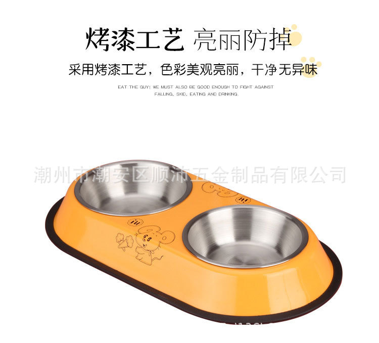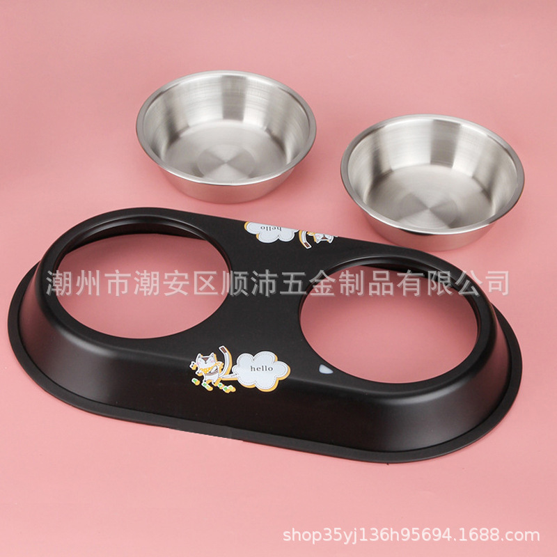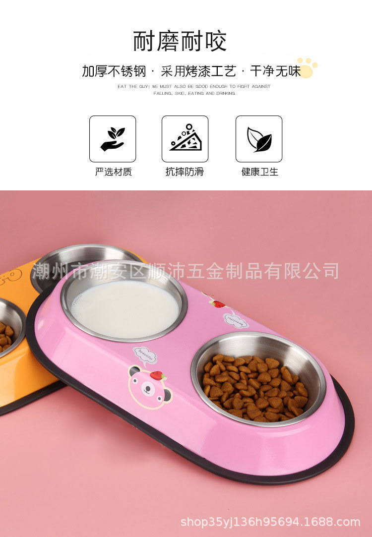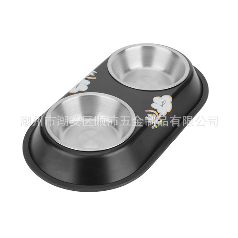 Трансграничные из нержавеющей стали Кошка Чаша оптом двойного назначения поилка утолщенная краска кормления собака чаша красочные ПЭТ двойной чаша