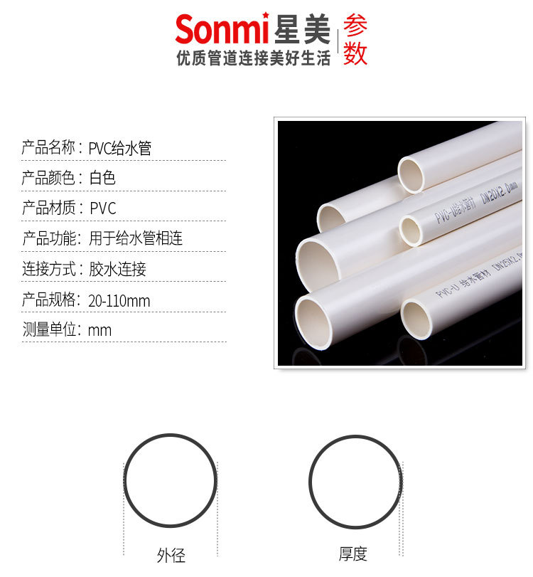 pvc给水管--壁厚度相比其他两种厚一些,硬