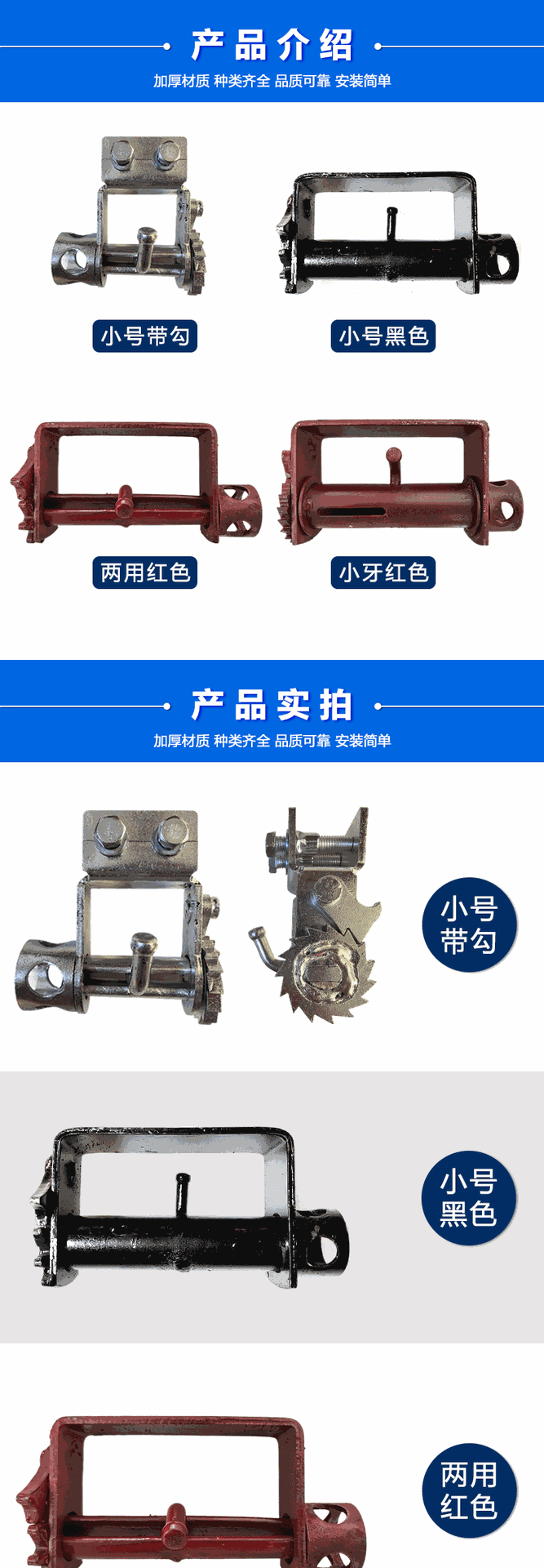 Малый размер, оцинкованная безсварная конструкция [50 шт./шт.]; Маленький размер, безпайковый, двойного назначения [40 шт./шт.]; Маленький размер, безпайковый, цельный [40 шт./шт.]; Маленький черный [40 шт./предмет]; Маленький красный двухфункциональный [40 шт./уп.]; Средний красный двухфункциональный [30 шт./шт.]; Большой черный светильник [25 шт./шт.]; Большой красный сверхпрочный [25 шт./шт.]; Большие прочные мелкие зубцы [25 шт./шт.]; Большой красный вес [25 шт./шт.]; Большой красный сверхтяжелый [25 шт./шт.]