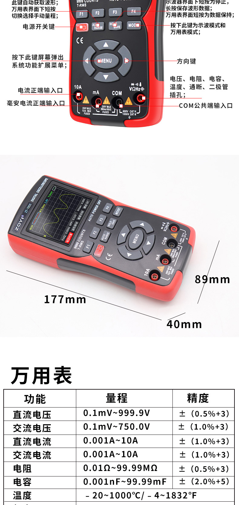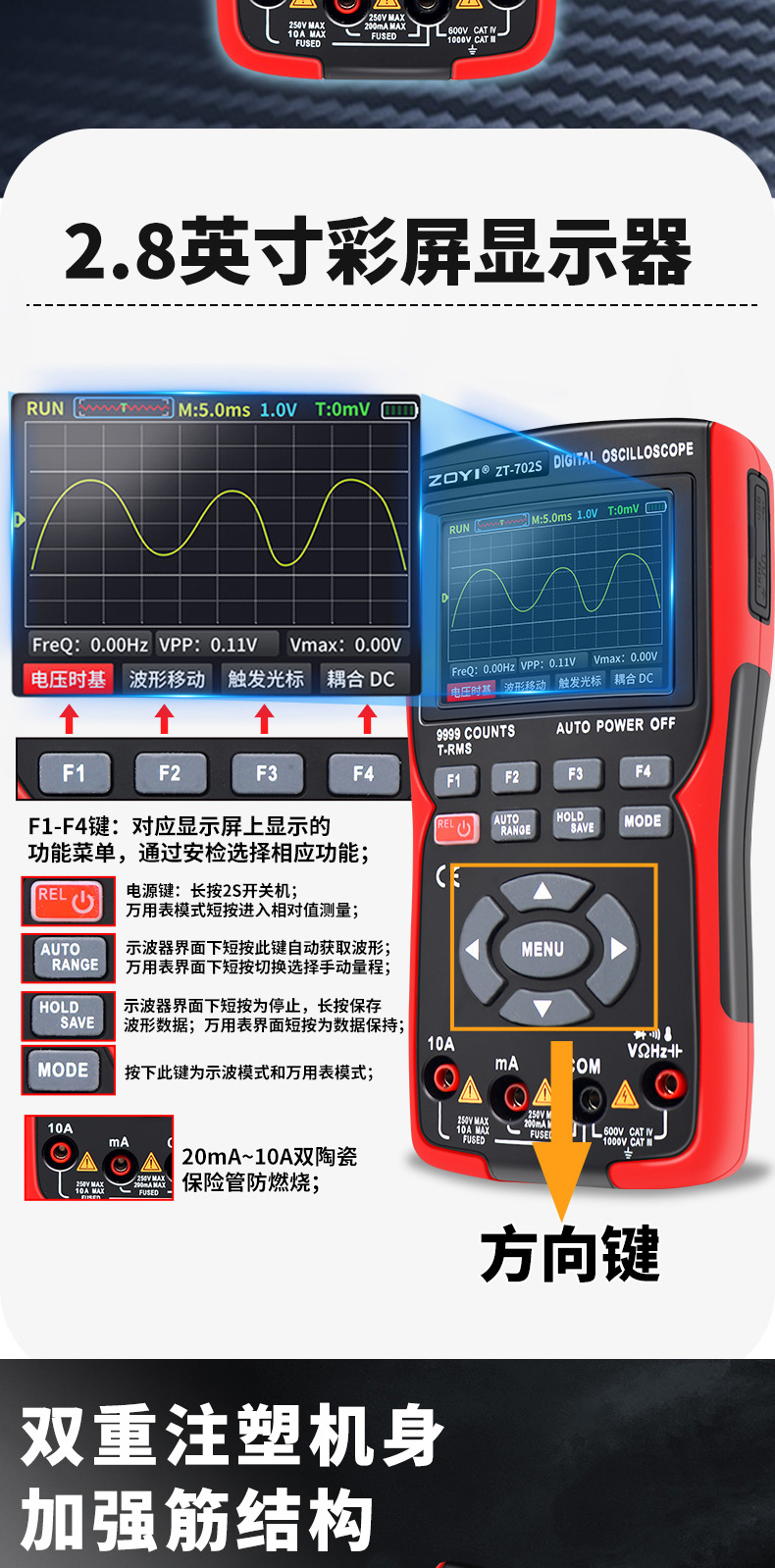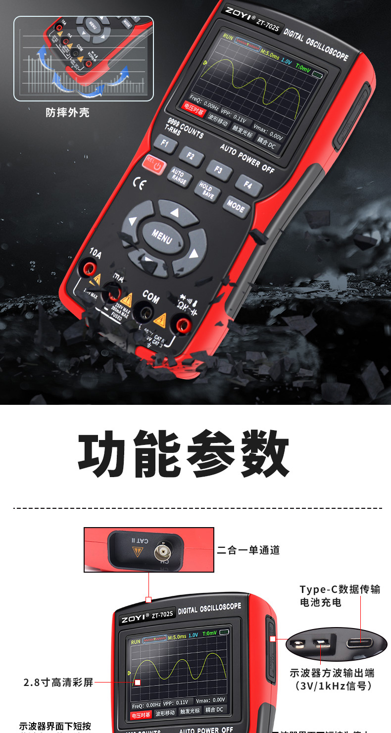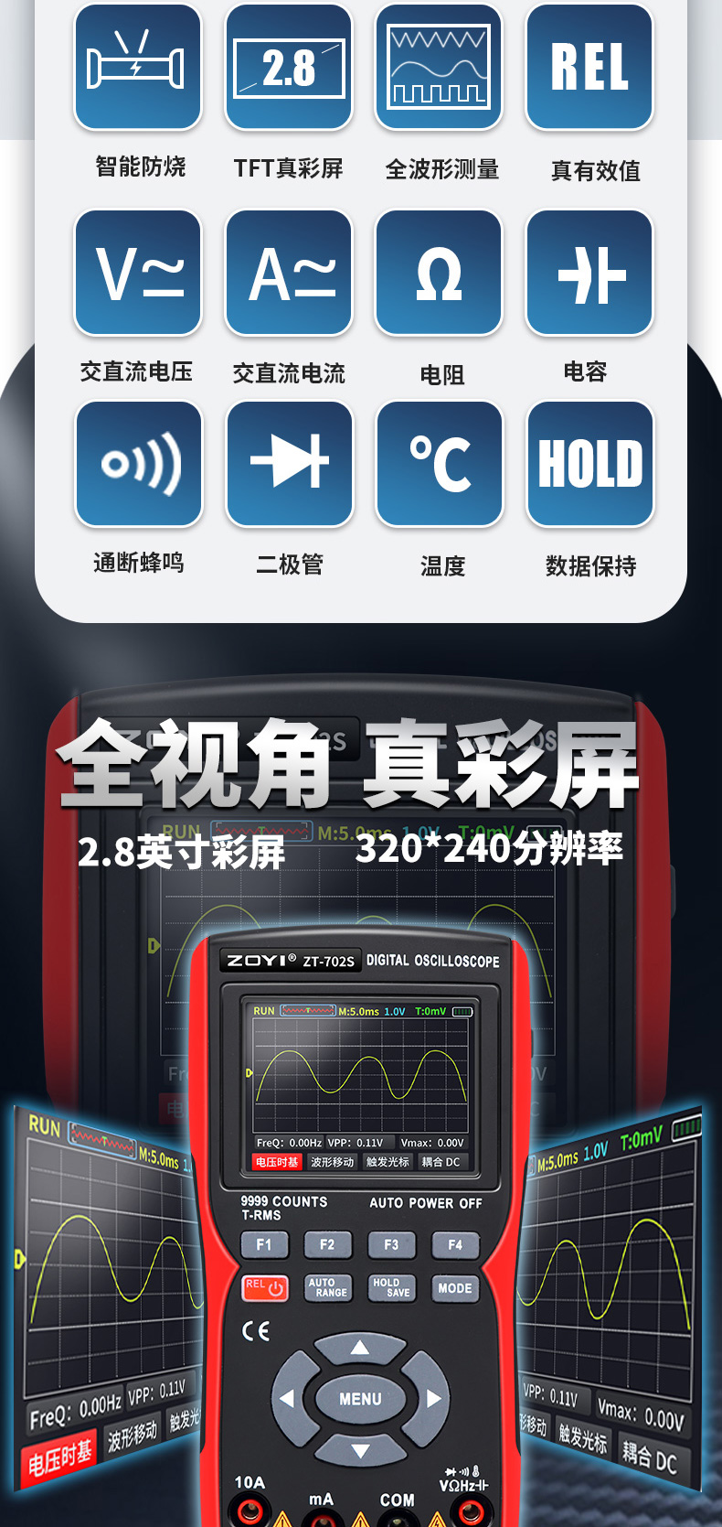 ZT702S новый цветной дисплей Портативный цифровой осциллограф-мультиметр автоматический ремонтный прибор многофункциональные измерения против возгорания