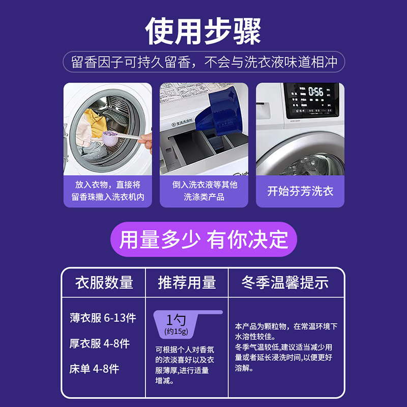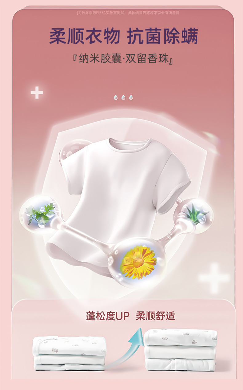 Увеличивает мягкость и стойкий аромат, удаляет клещей, защищает цвет, удаляет бактерии и сохраняет аромат