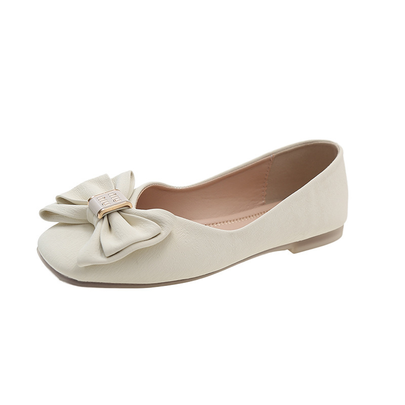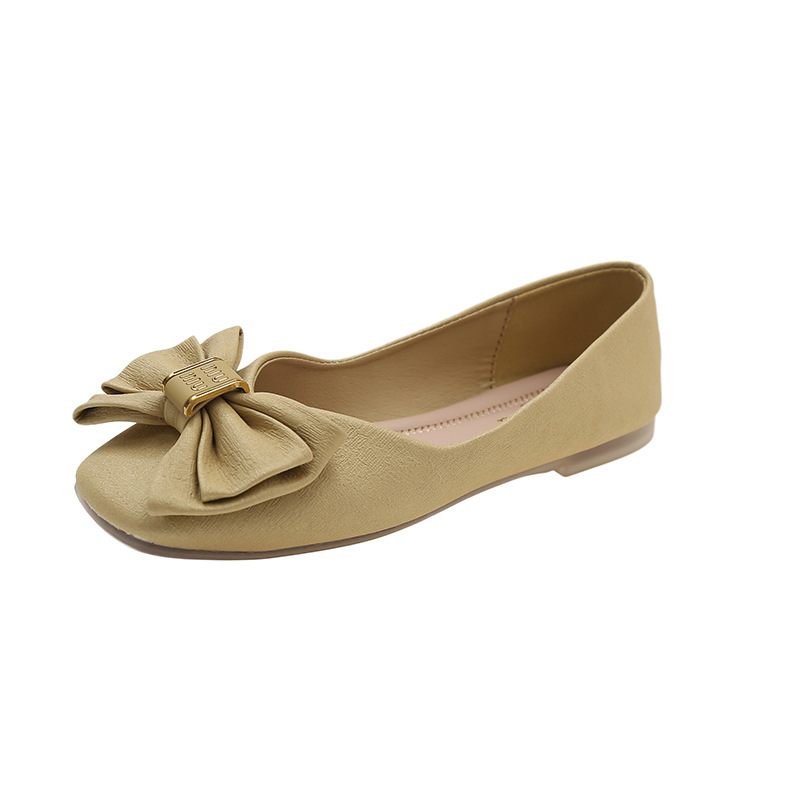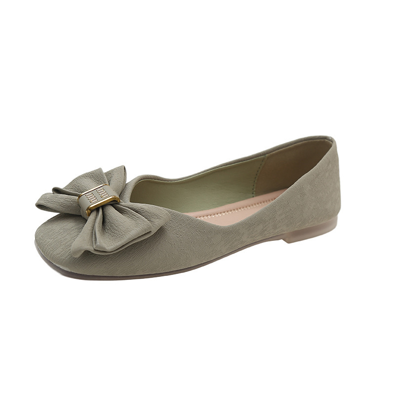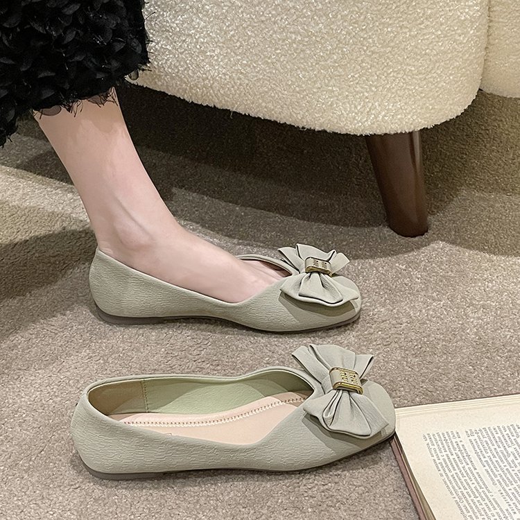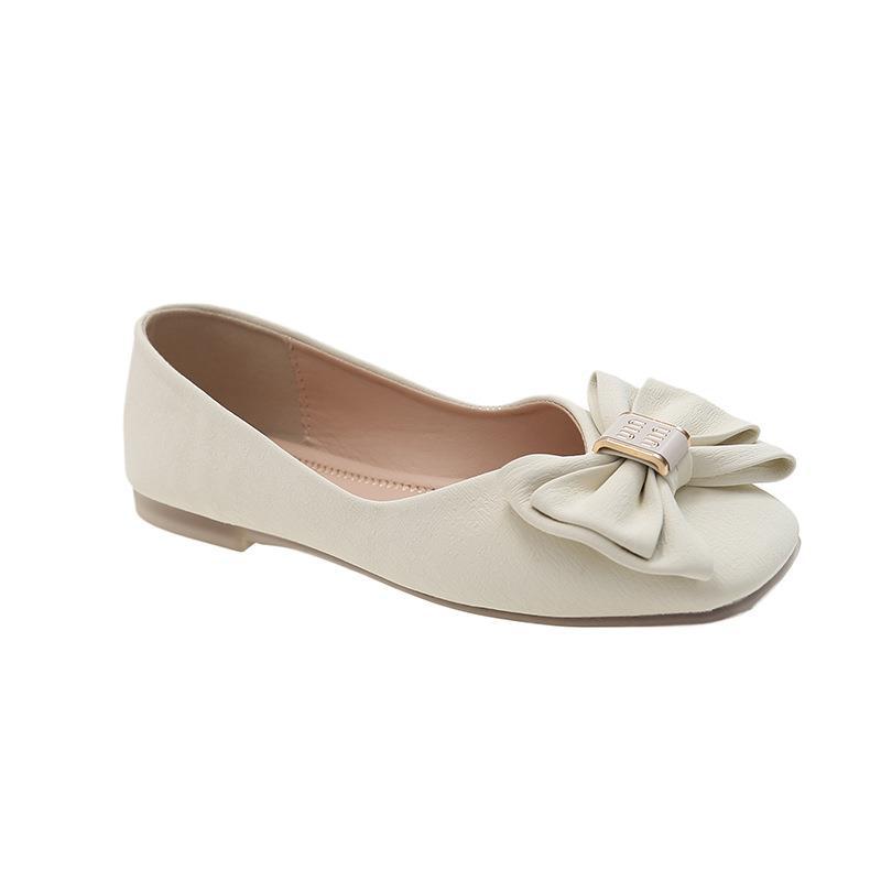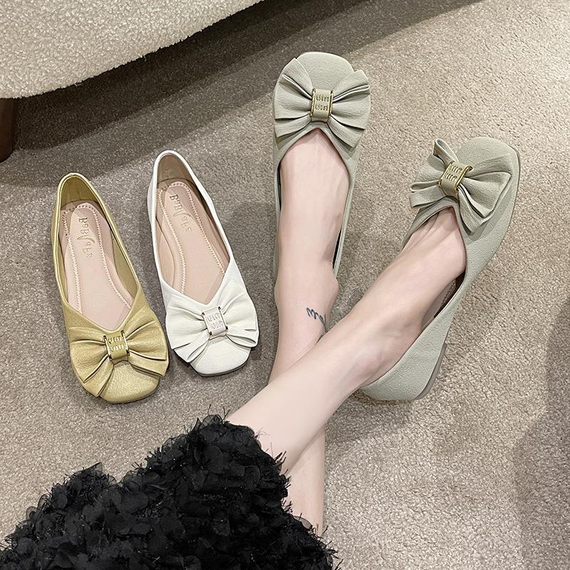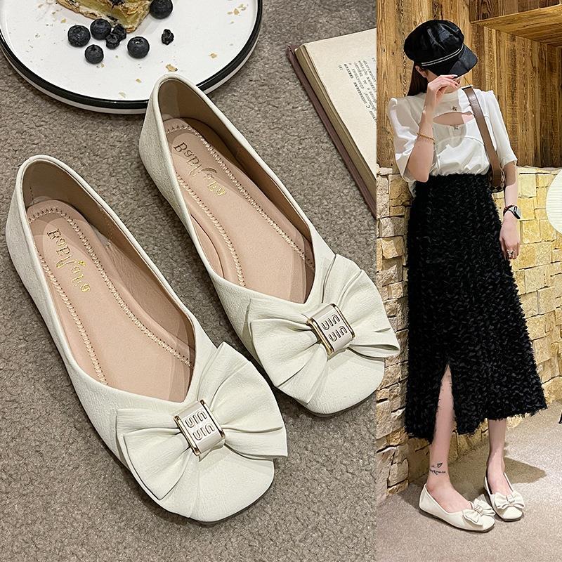 Туфли с бантом и квадратным носком женские 2023 летние новые неглубокие мягкие подошвы одинарные туфли темперамент на плоской подошве