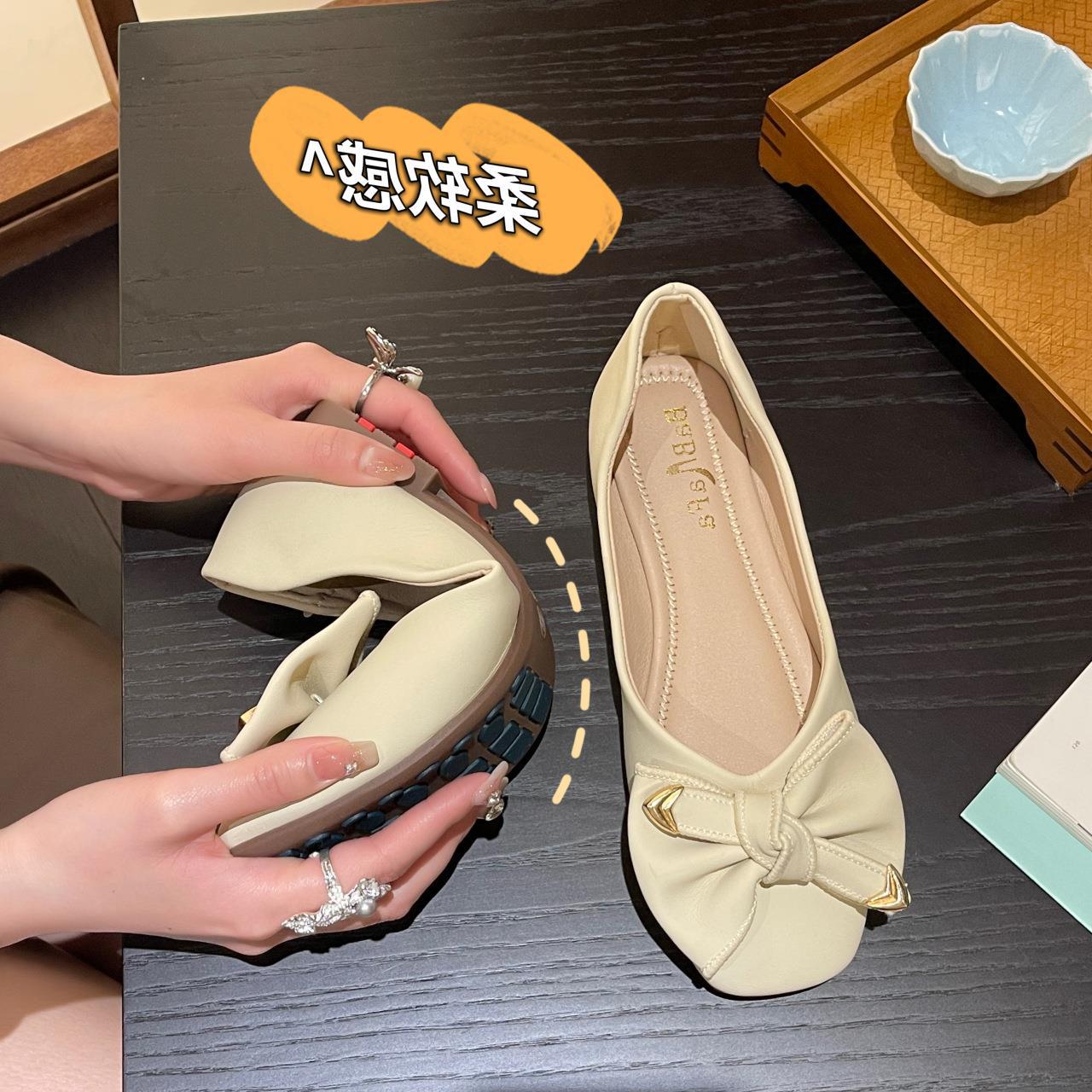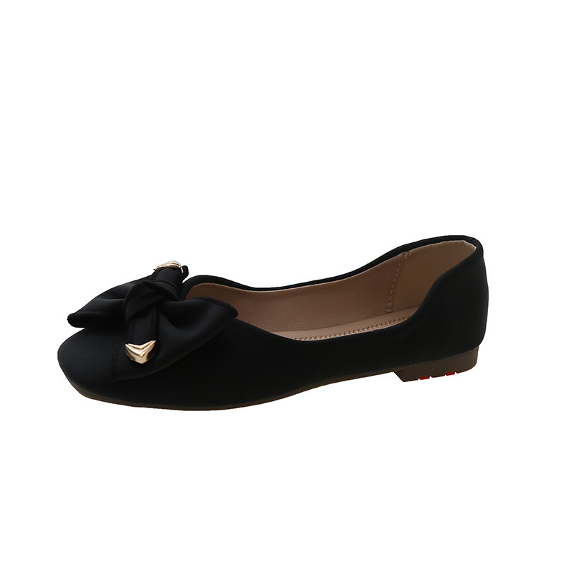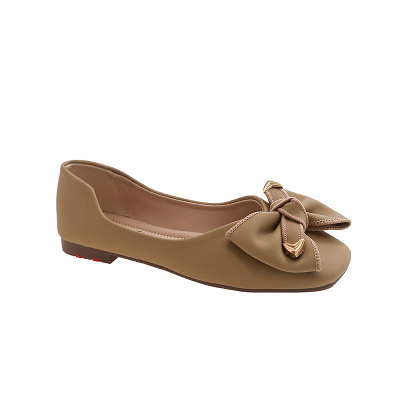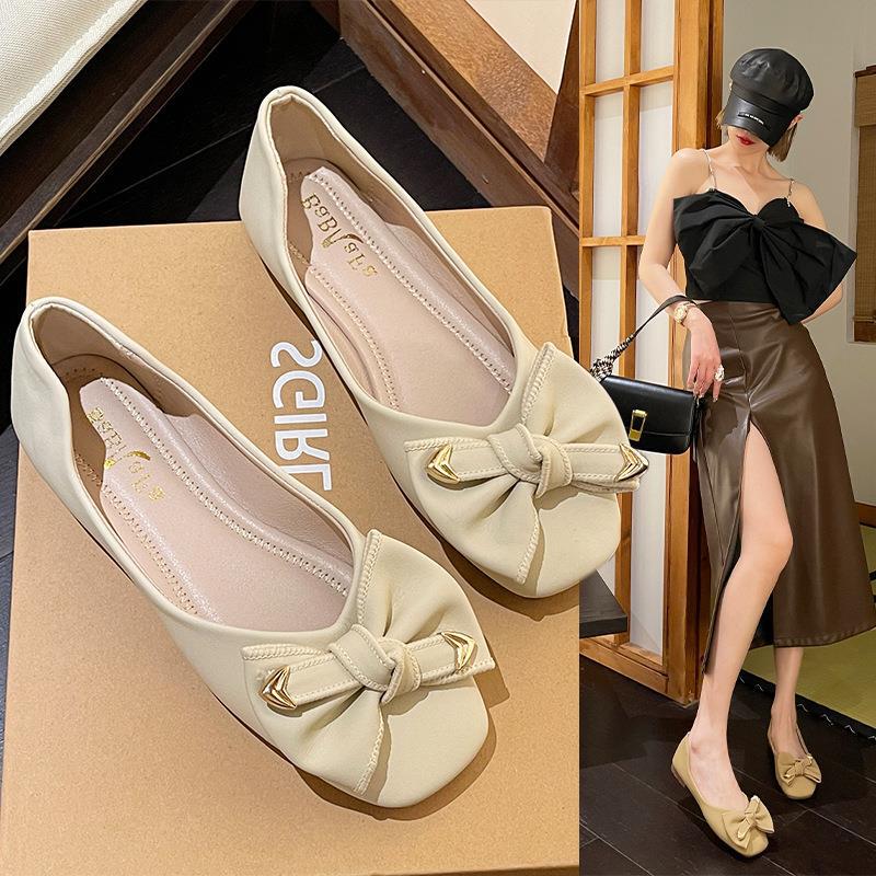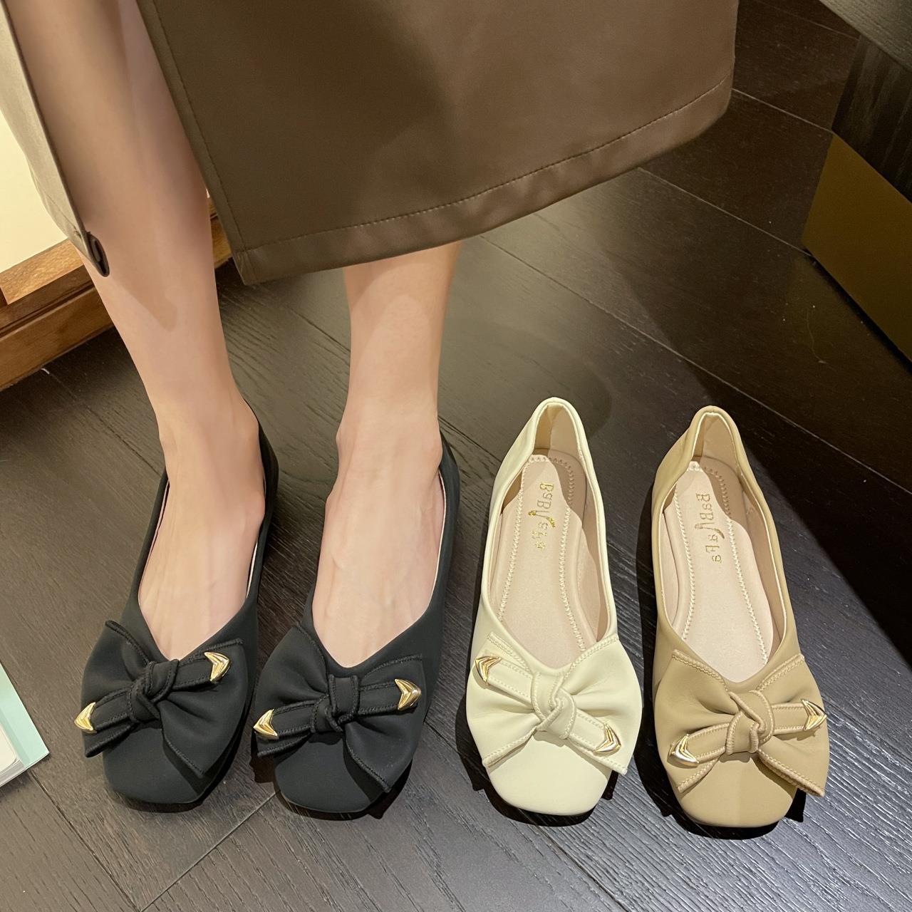 Туфли с бантом, женские весна и лето 2023, новые модные однослойные туфли с квадратным носком и мелким ртом, элегантные женские туфли на плоской подошве