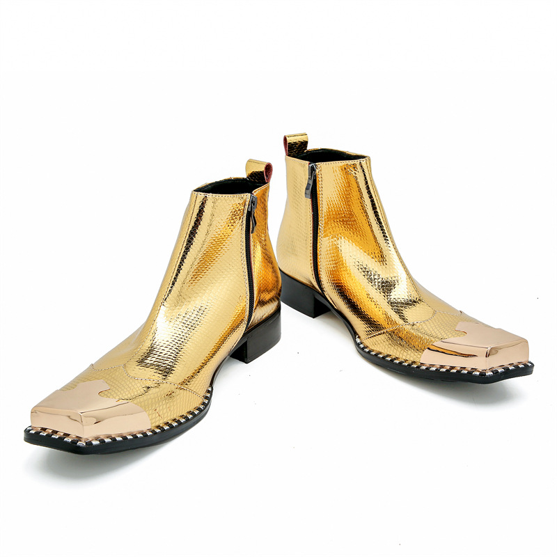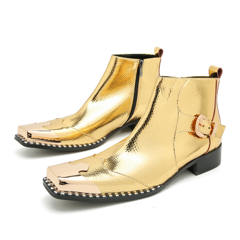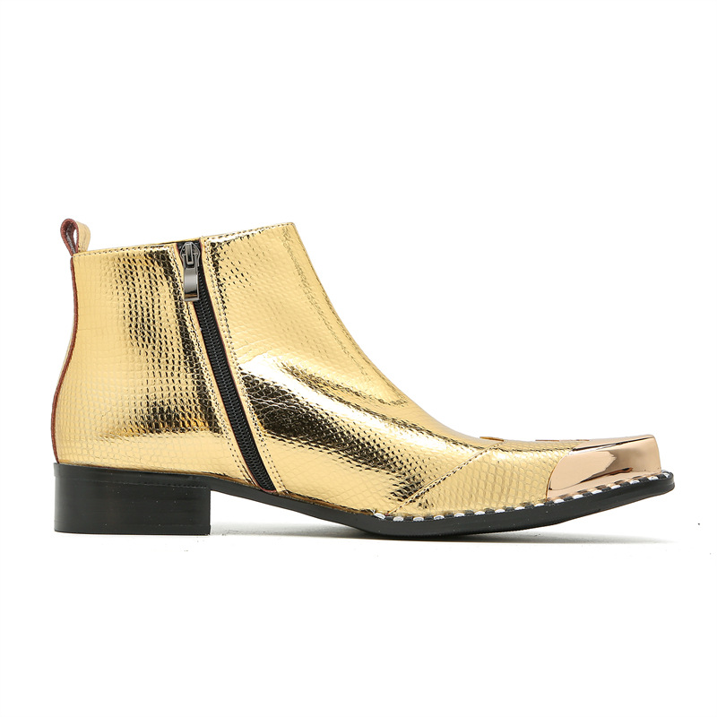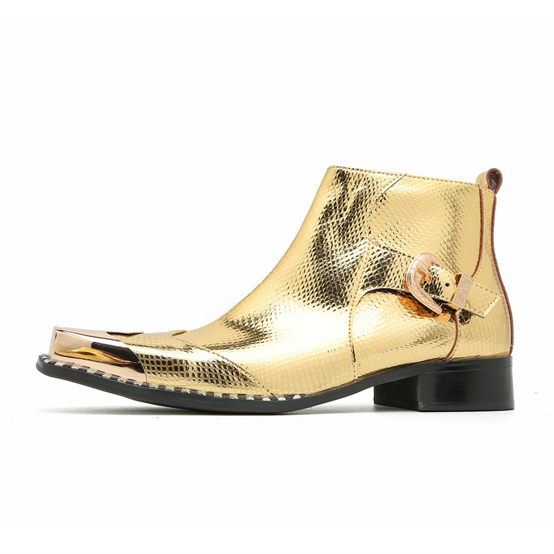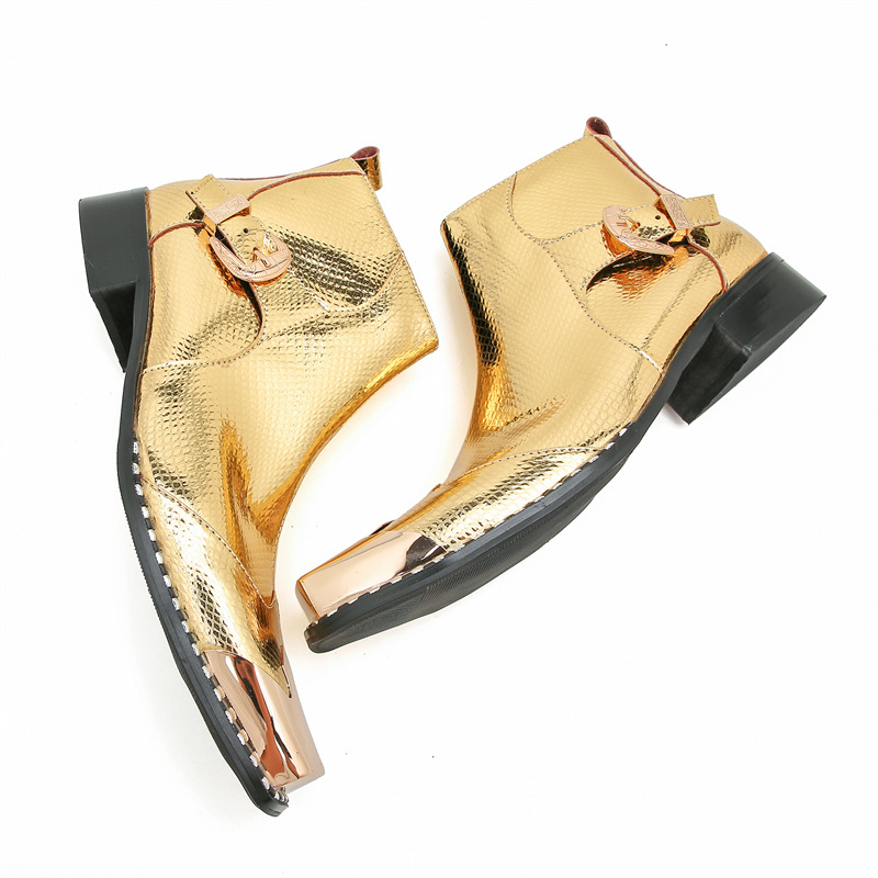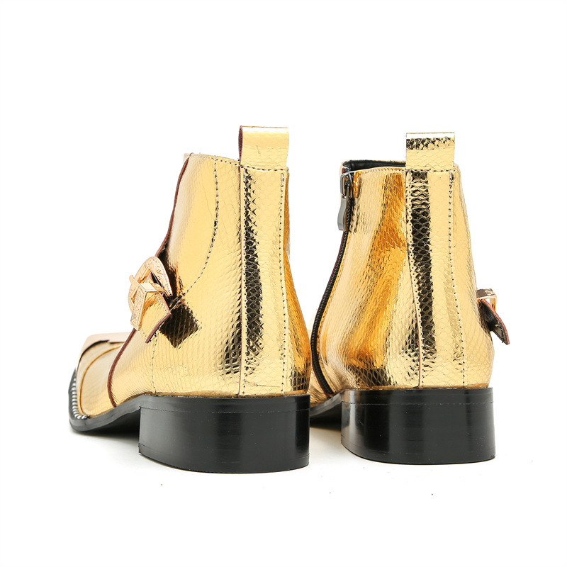 Ботинки Челси 2023 Европейская и американская молодежная мода Личность заостренная Золотая боковая молния брендовые ботинки Martin из воловьей кожи