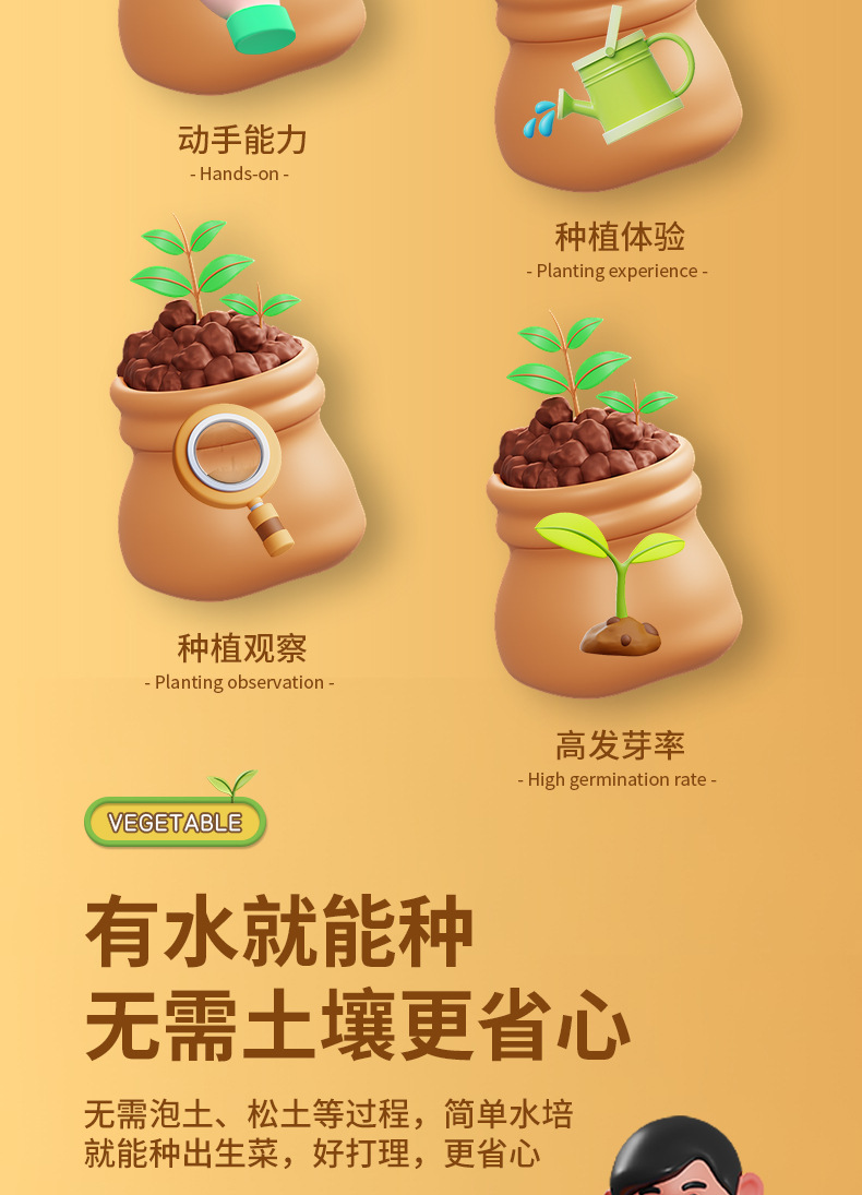 Гидропонный посадочный костюм [водный шпинат] с лейкой; Гидропонный посадочный костюм [салат] с лейкой; Гидропонный посадочный костюм [ростки фасоли] с лейкой; Гидропонный посадочный костюм [горох] с лейкой; Гидропонный посадочный костюм [Пшеница] с лейкой