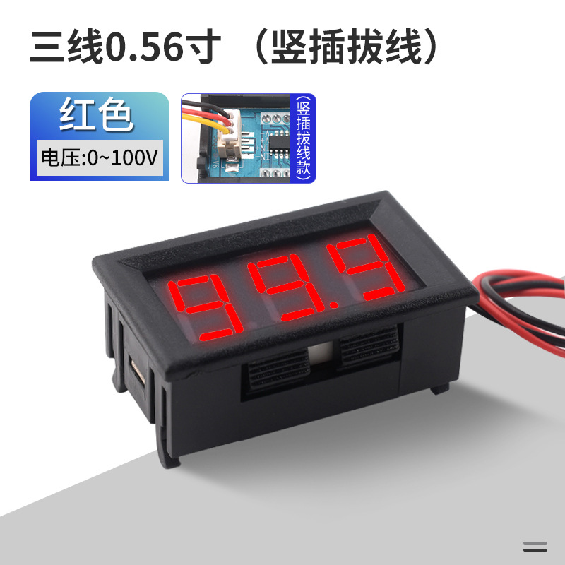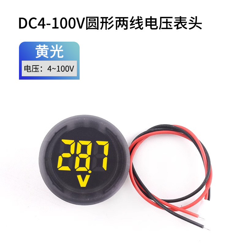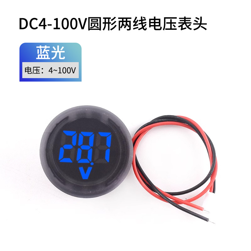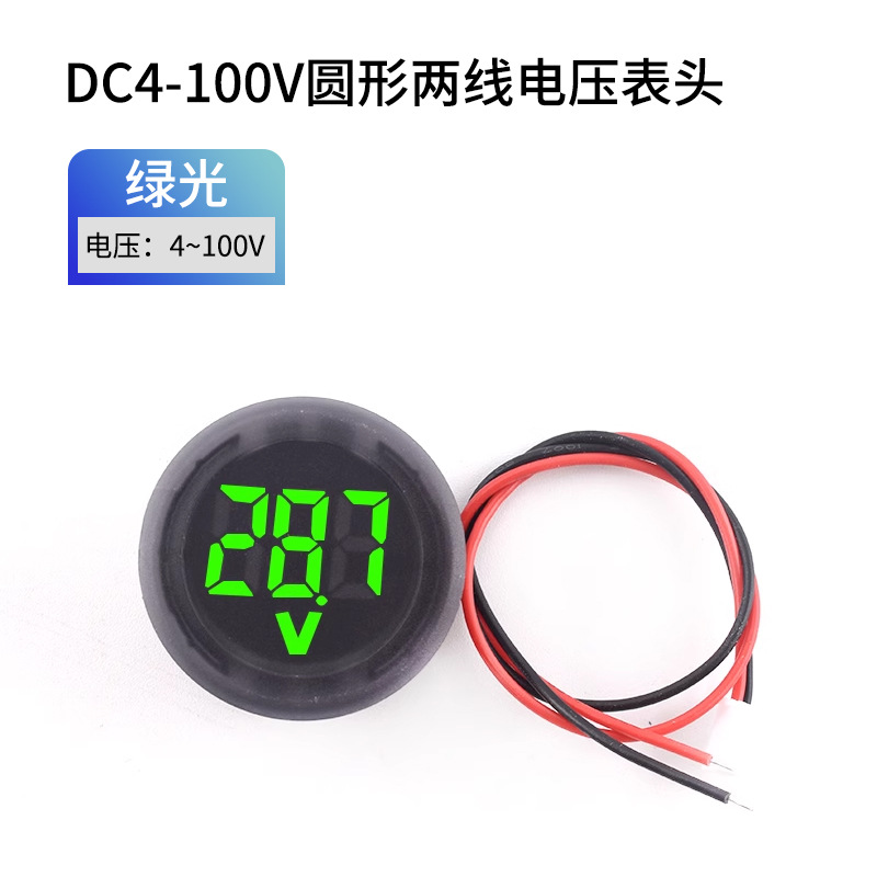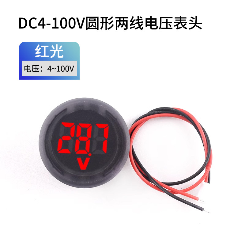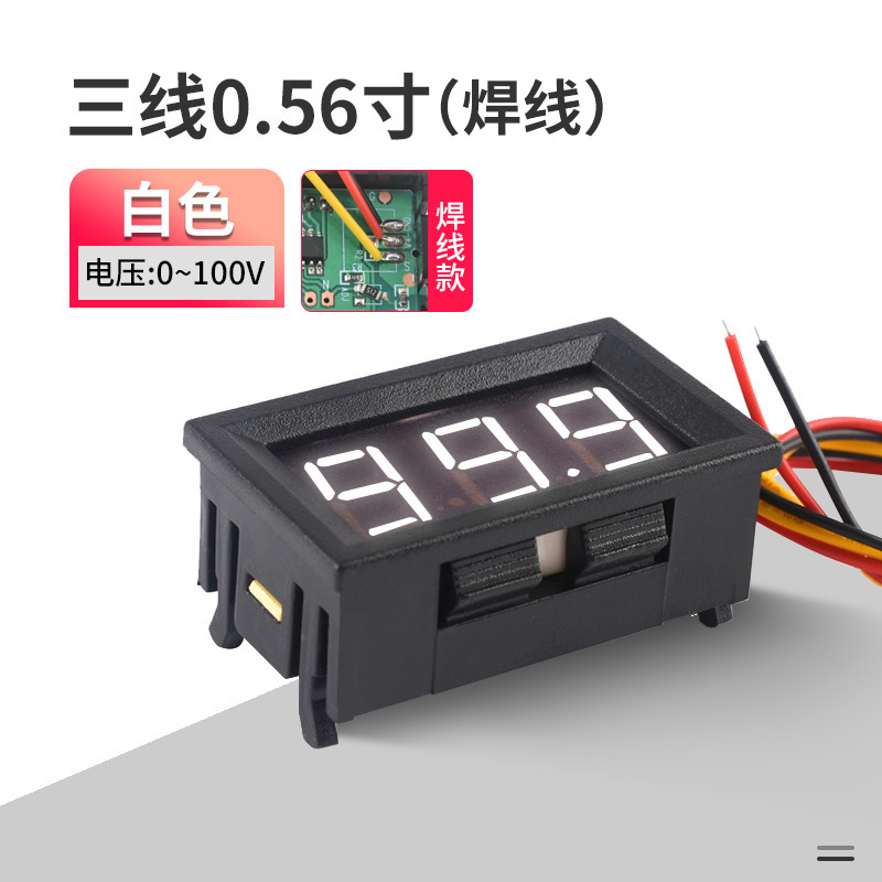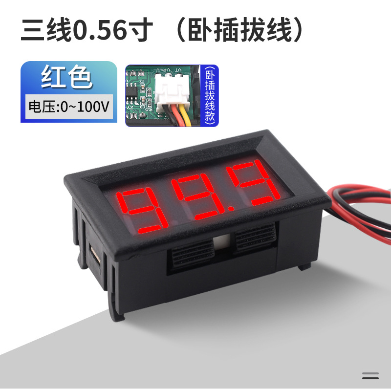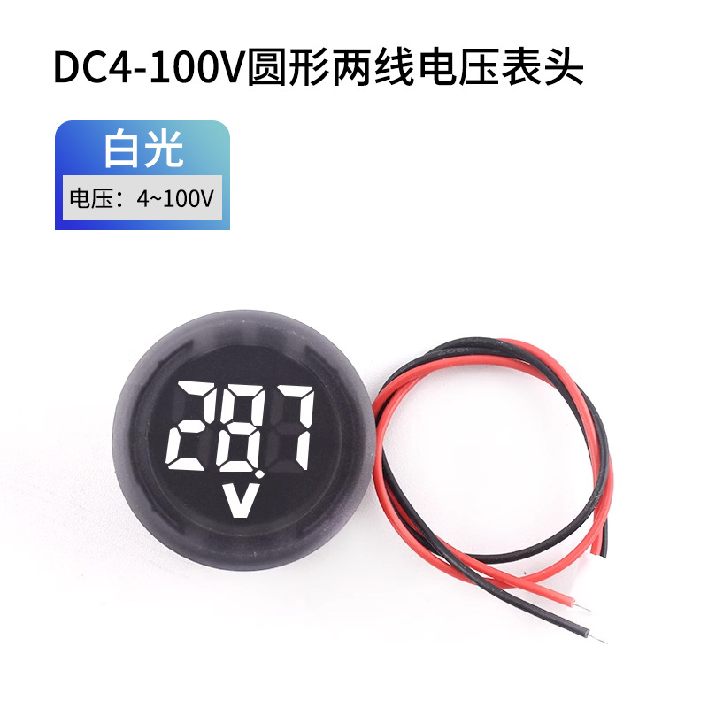 量程直流DC0-100V,2线和3线产品通用,打破常规电压表,可直接工作于5V、9V、12V、24V等电路中,无需稳压。配有三根接线,方便接入汽车/电瓶车/摩托车车内线路,具有反接保护功能,线接反不会烧。用于监视电瓶电压,及时掌握电瓶电压状态,也可用于其它产品电压测量用途。注意当2线使用最高输入电压不能超过30V,否则有烧毁的危险 。