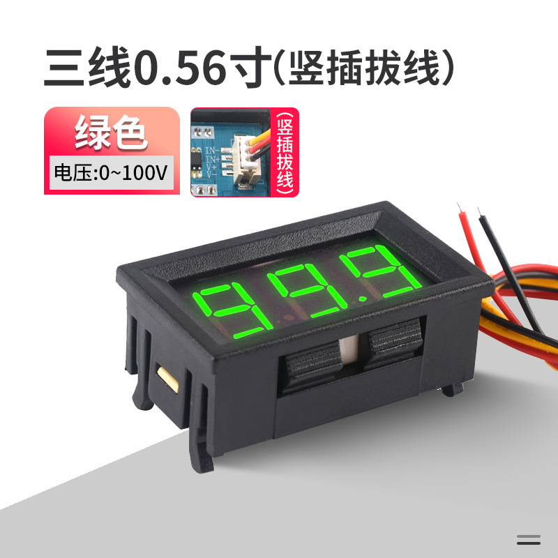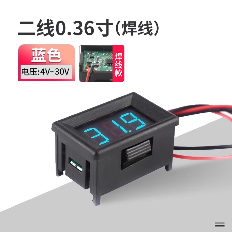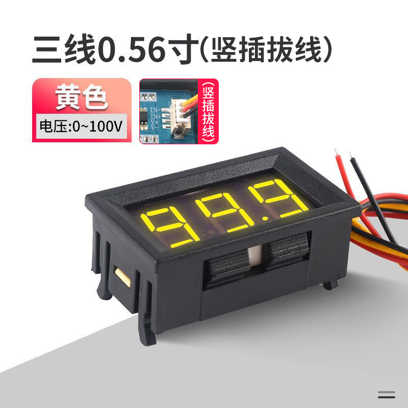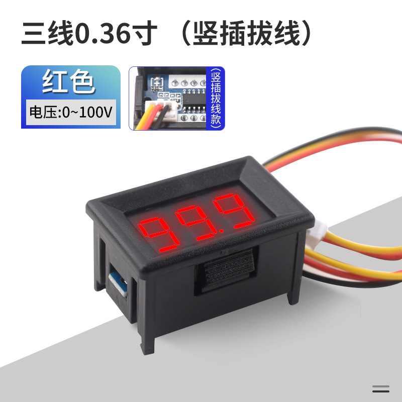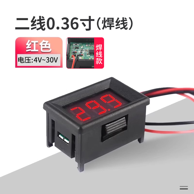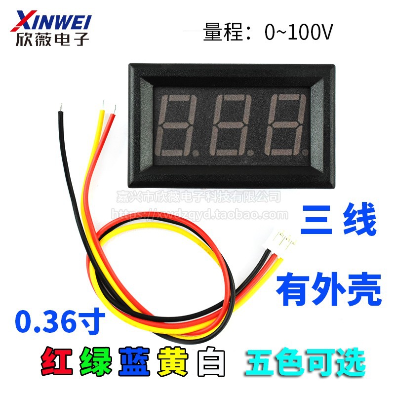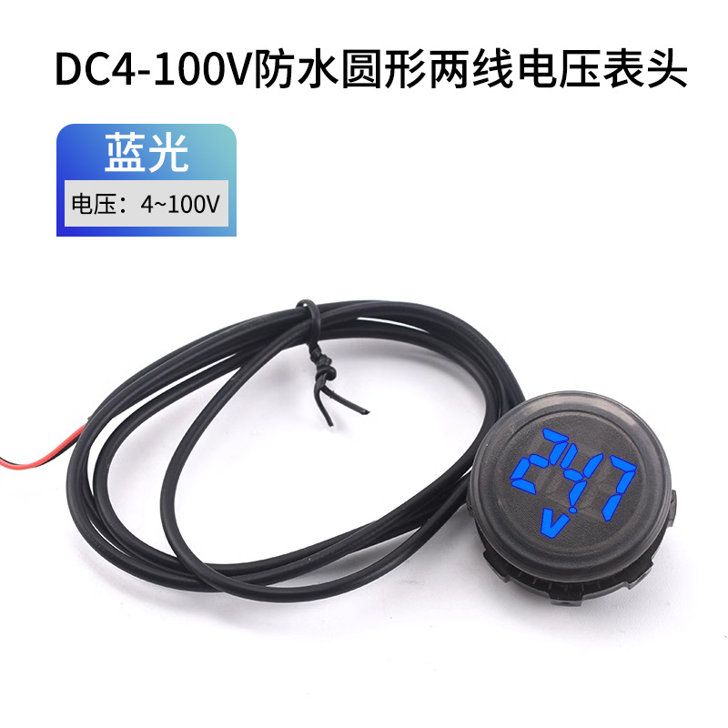 量程直流DC0-100V,2线和3线产品通用,打破常规电压表,可直接工作于5V、9V、12V、24V等电路中,无需稳压。配有三根接线,方便接入汽车/电瓶车/摩托车车内线路,具有反接保护功能,线接反不会烧。用于监视电瓶电压,及时掌握电瓶电压状态,也可用于其它产品电压测量用途。注意当2线使用最高输入电压不能超过30V,否则有烧毁的危险 。