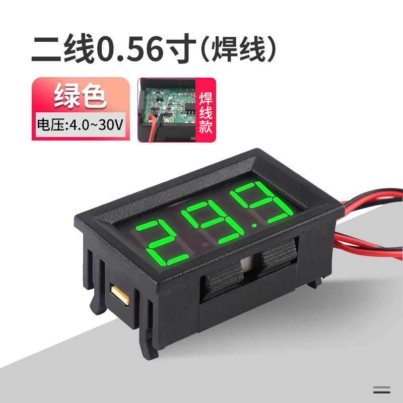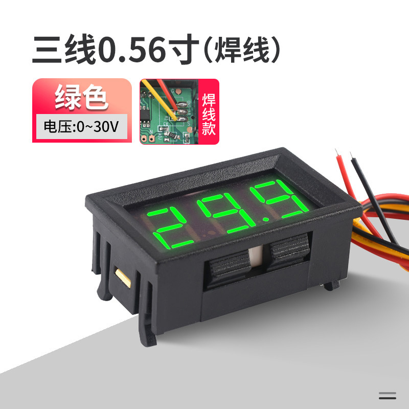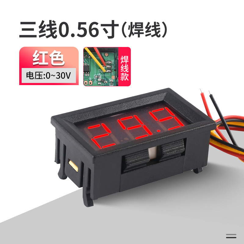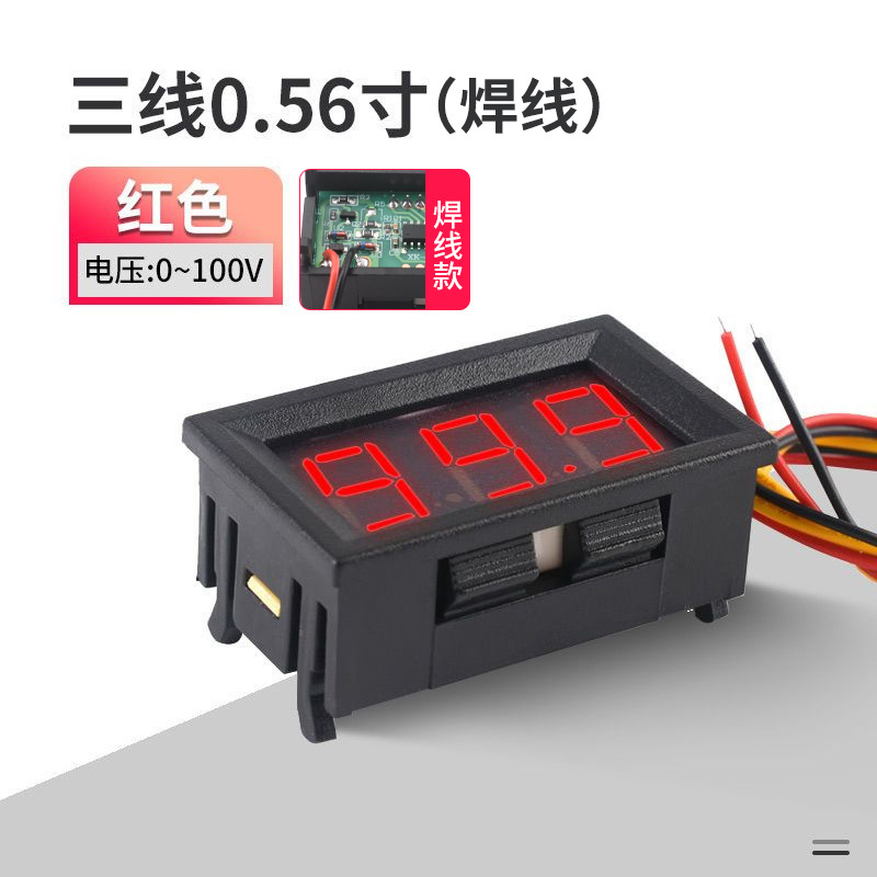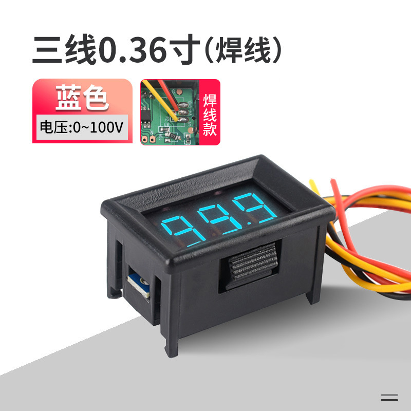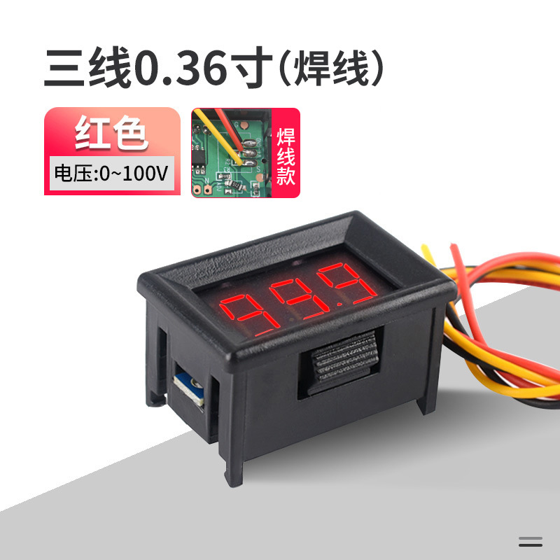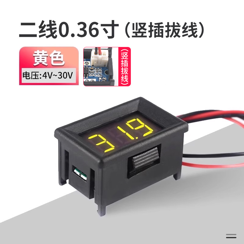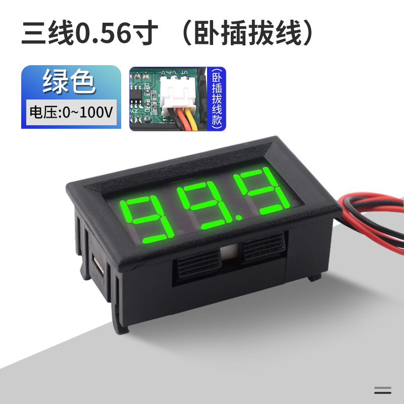 量程直流DC0-100V,2线和3线产品通用,打破常规电压表,可直接工作于5V、9V、12V、24V等电路中,无需稳压。配有三根接线,方便接入汽车/电瓶车/摩托车车内线路,具有反接保护功能,线接反不会烧。用于监视电瓶电压,及时掌握电瓶电压状态,也可用于其它产品电压测量用途。注意当2线使用最高输入电压不能超过30V,否则有烧毁的危险 。
