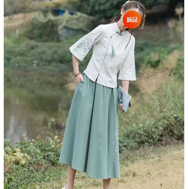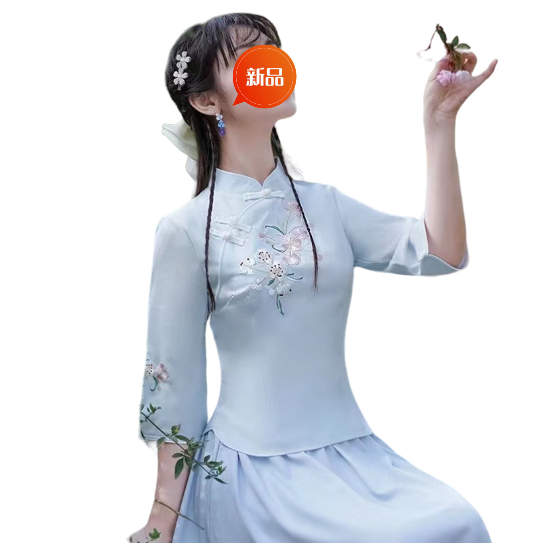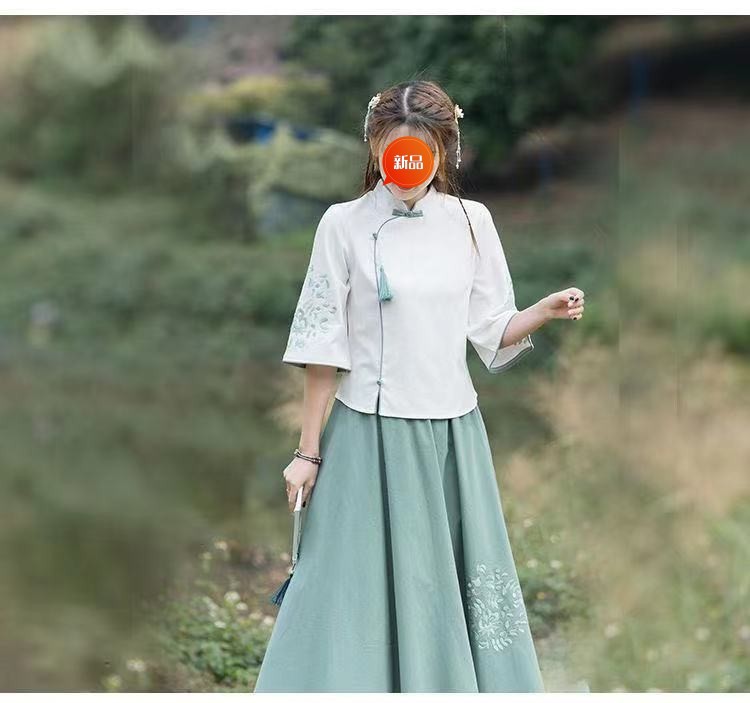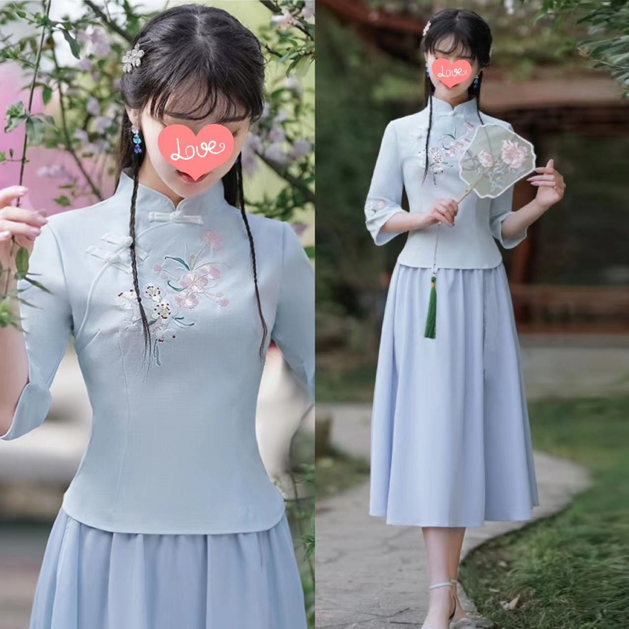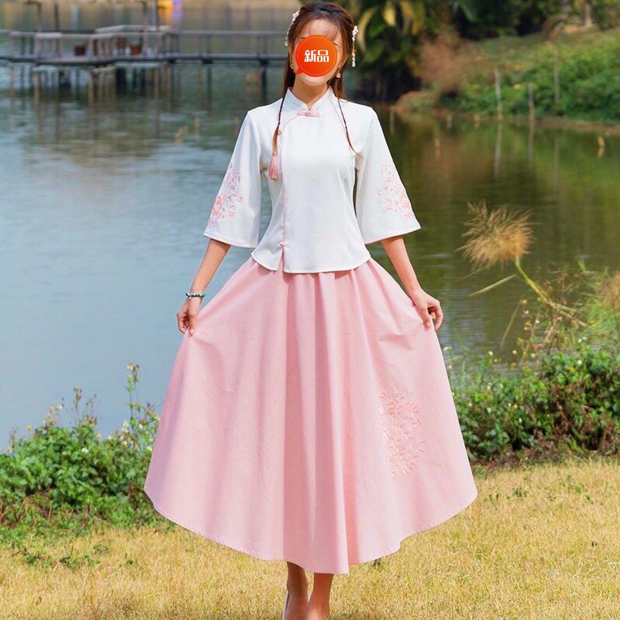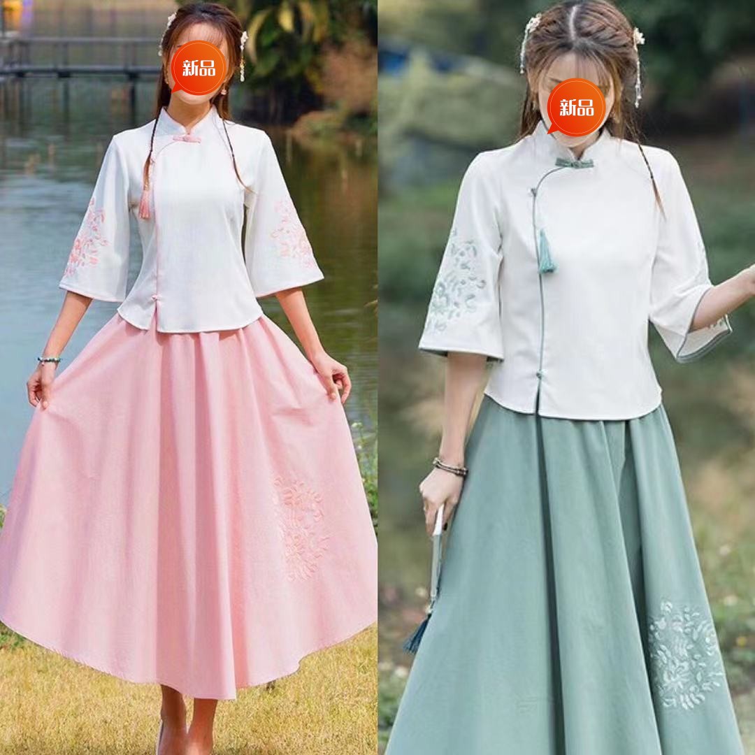 Костюм в стиле Китайской Республики Ханфу 2023 Летняя новая вышивка из хлопка и льна Улучшенный стиль Китайской Республики Ханфу Чайная одежда Художественный костюм