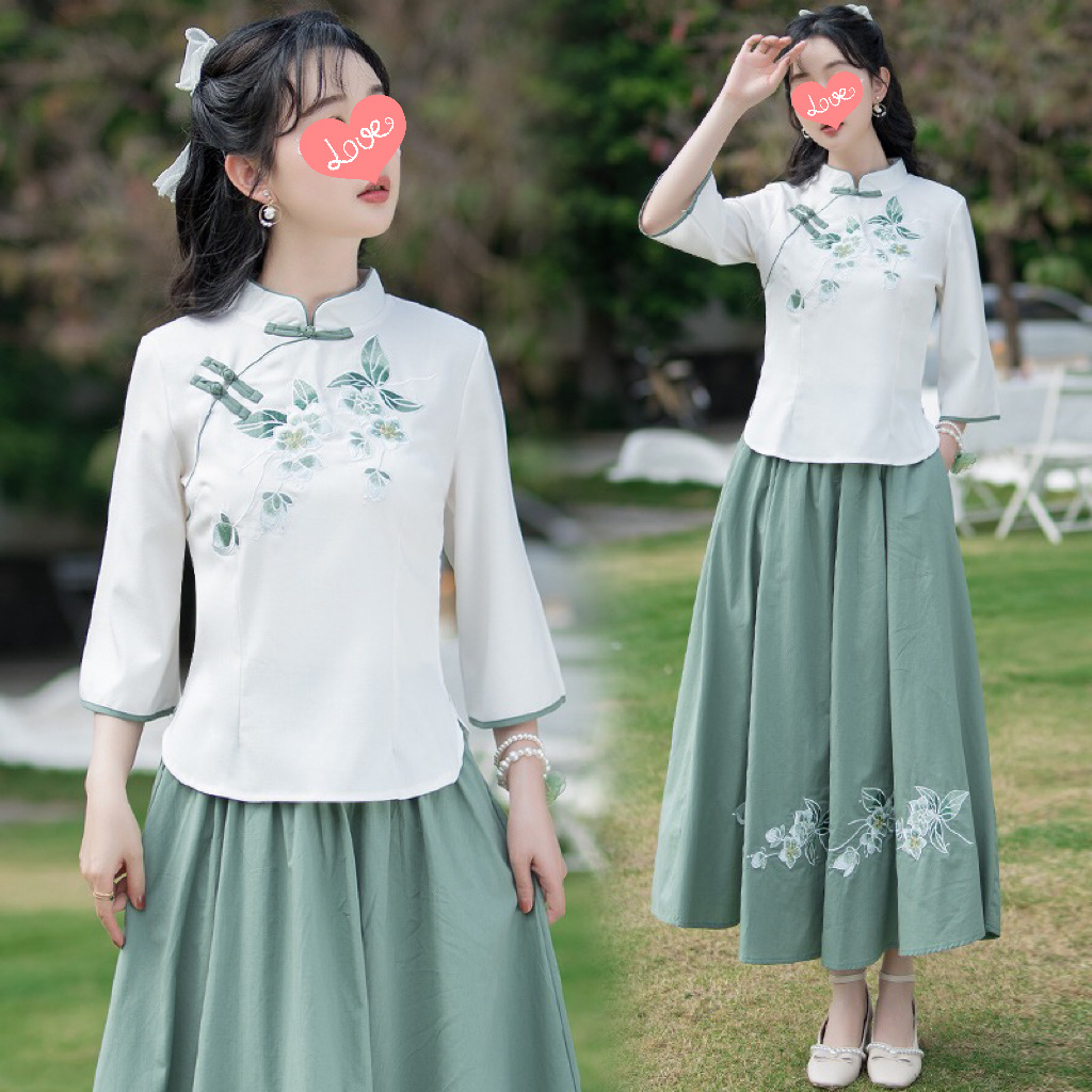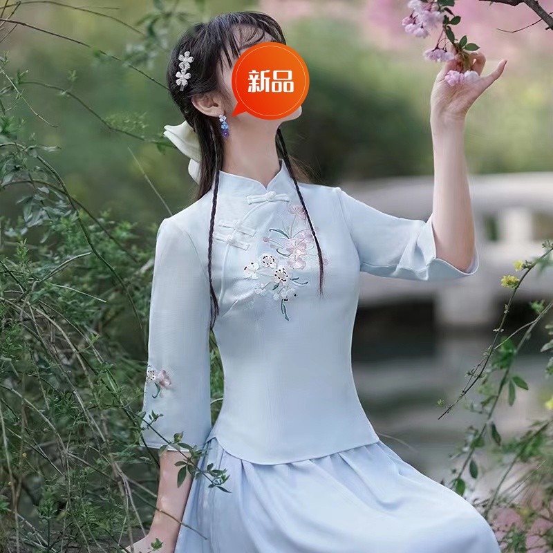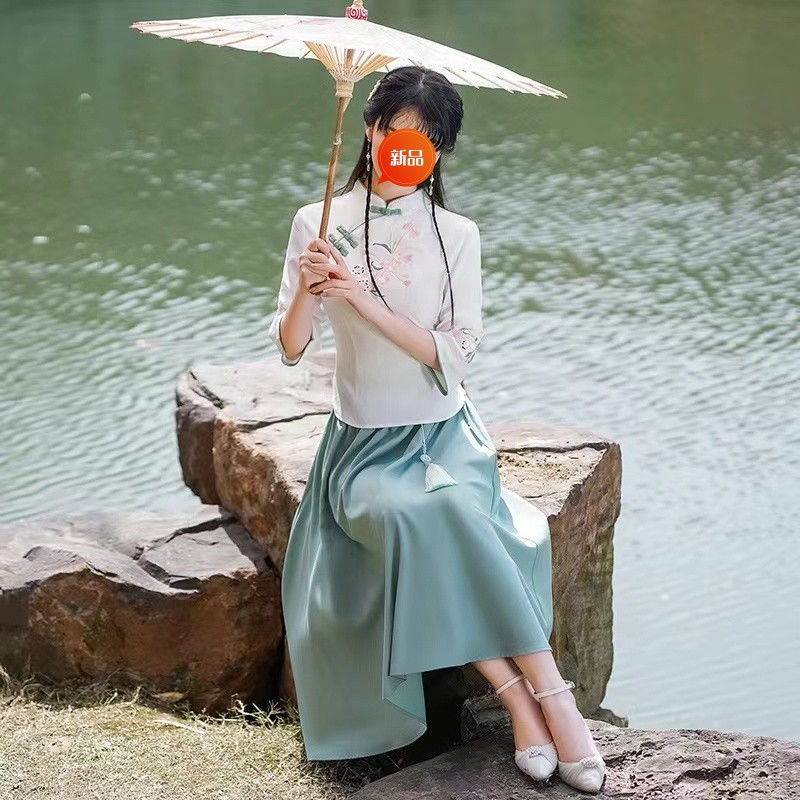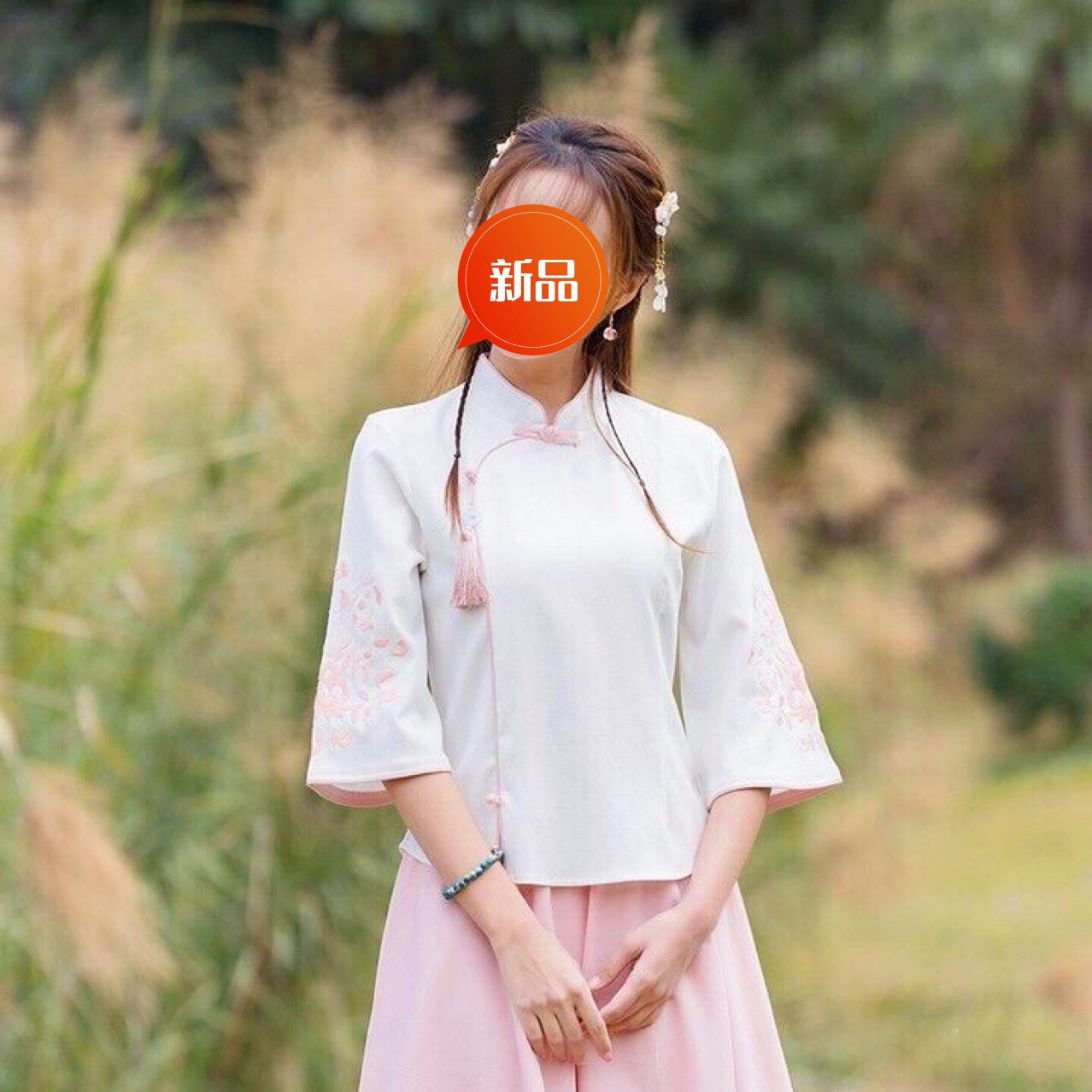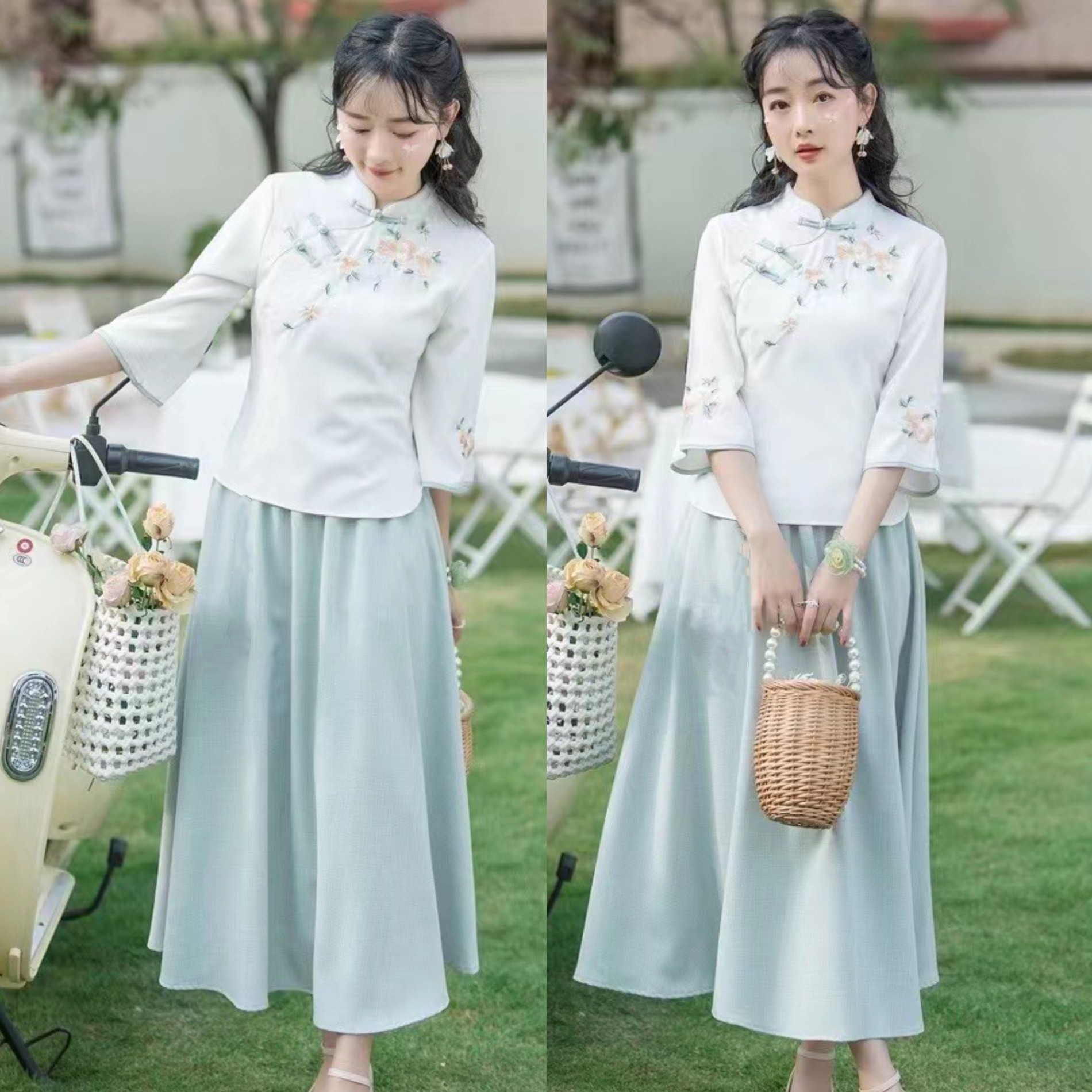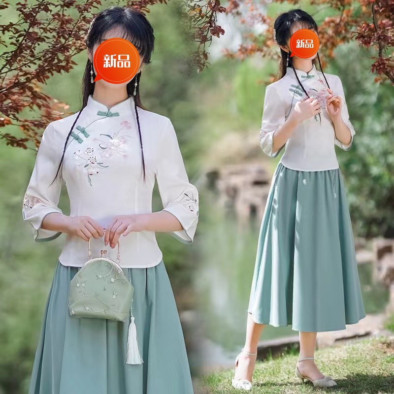 Костюм в стиле Китайской Республики Ханфу 2023 Летняя новая вышивка из хлопка и льна Улучшенный стиль Китайской Республики Ханфу Чайная одежда Художественный костюм