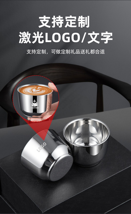 Ins316 двухслойная кофейная итальянская чашка из нержавеющей стали, чашка с защитой от ожогов, зеркальная легкая чашка для питья, роскошный подарок, лазерный логотип