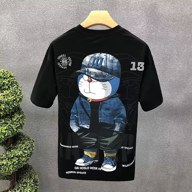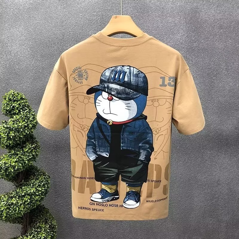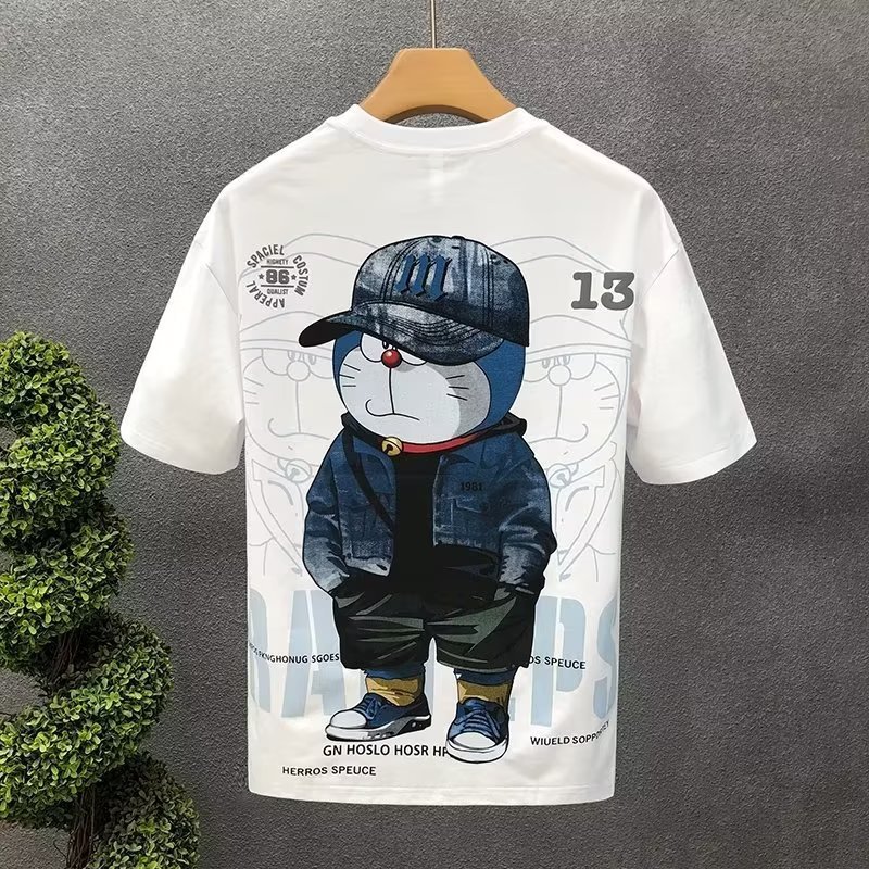 Мужская хлопковая футболка с короткими рукавами и мультяшным принтом, летний топ с коротким рукавом и коротким рукавом, новый стиль, Подростковый нишевый дизайн, 2023