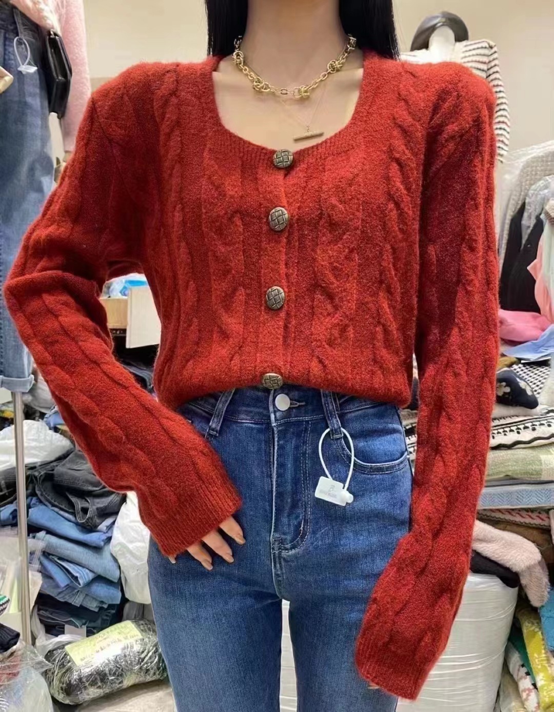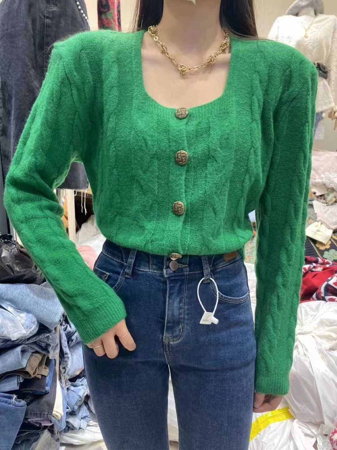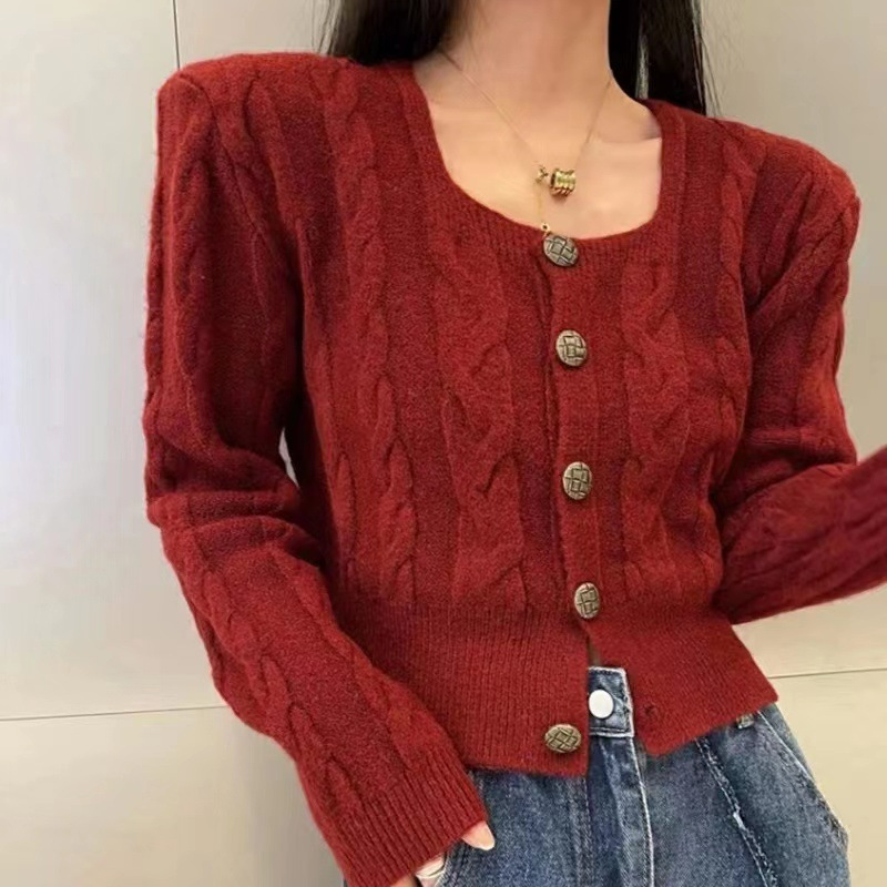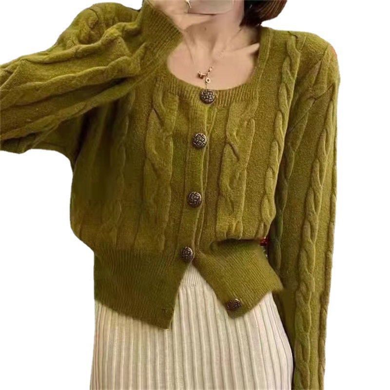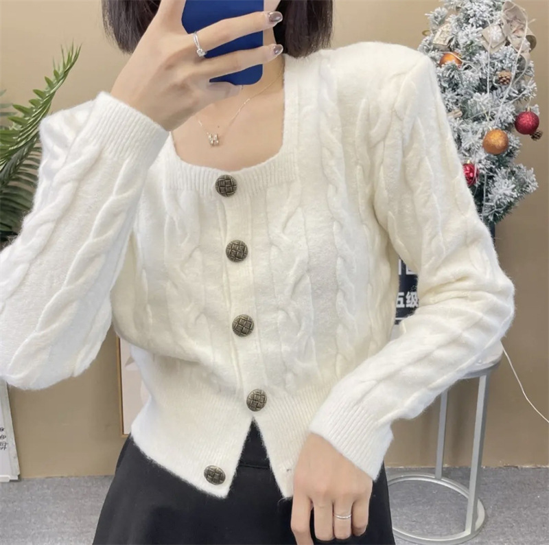 Свитер женский 2023 Twist с квадратным воротником Свободный Тонкий Осень Новый академический стиль нишевый дизайн вязаный кардиган женский