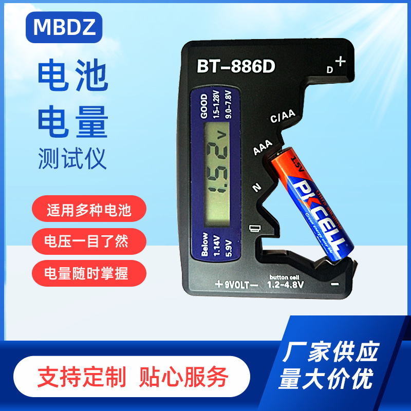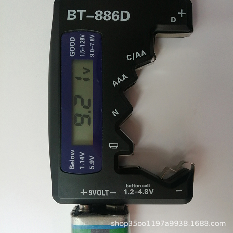 Тестер батареи BT-886D/189, тестер батареи может измерять батарей 1,5 В, 3 В, 3,7 В, 9 В