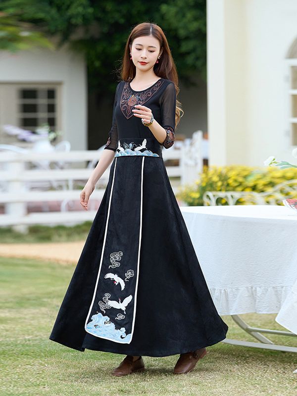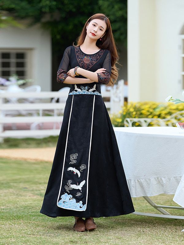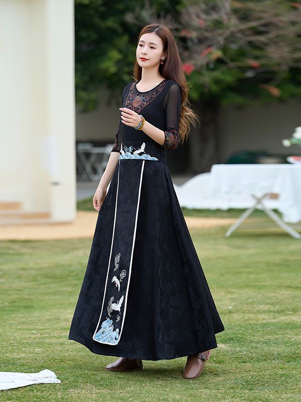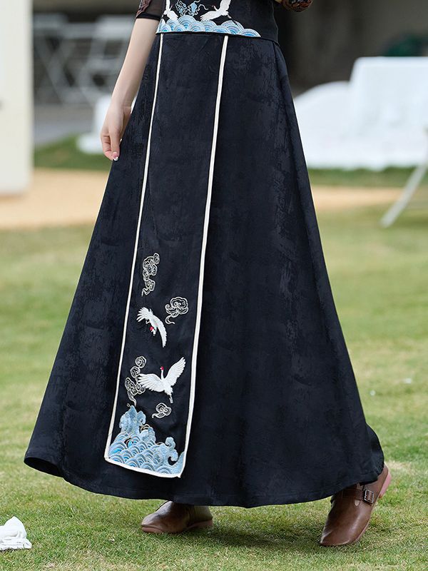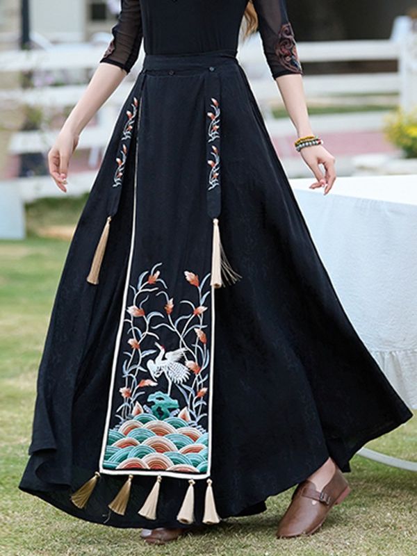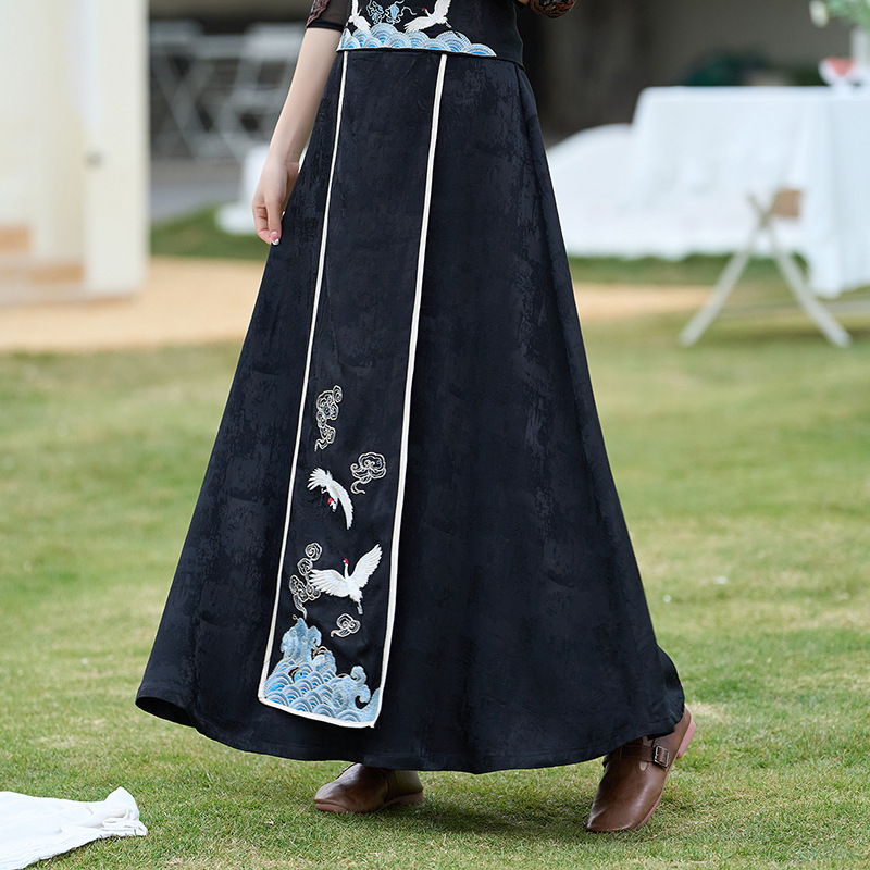 Женская Улучшенная атласная юбка с верхом в этническом стиле, китайская винтажная юбка с верхом и вышивкой, большая длинная юбка-качели