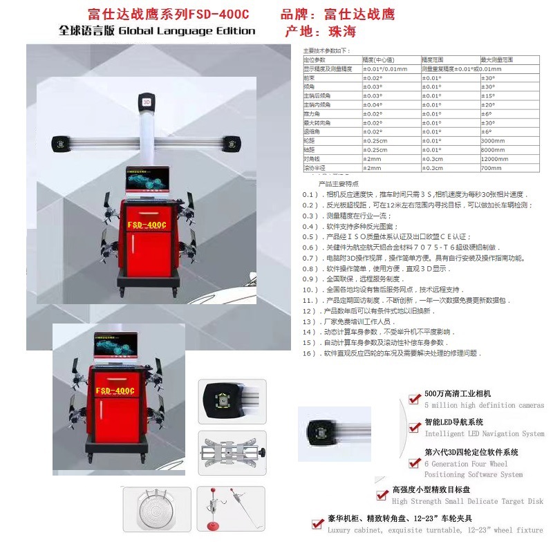 Поставка fushida Warhawk 5 миллионов пикселей FSD-400C 3D автомобильный четырехколесный локатор