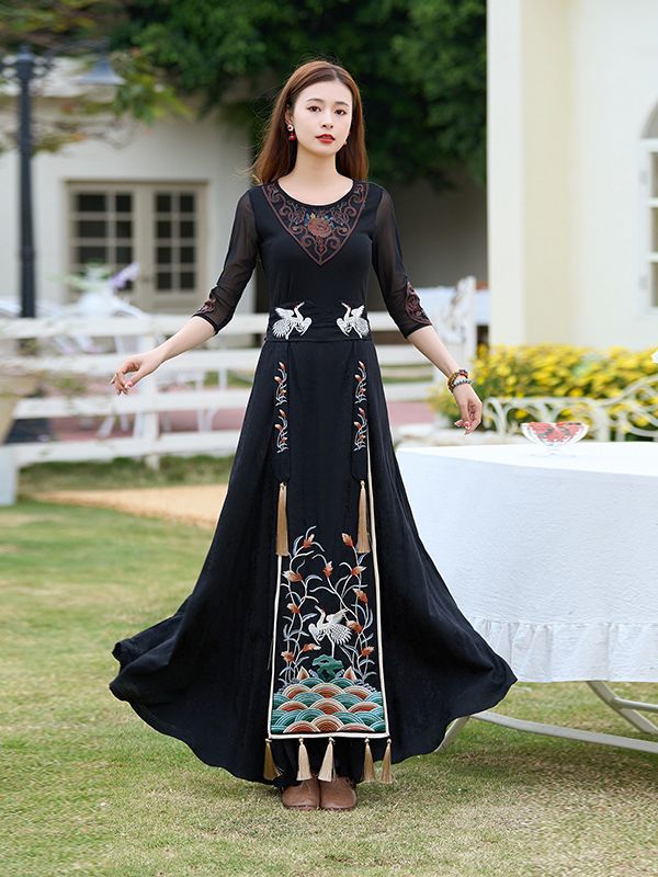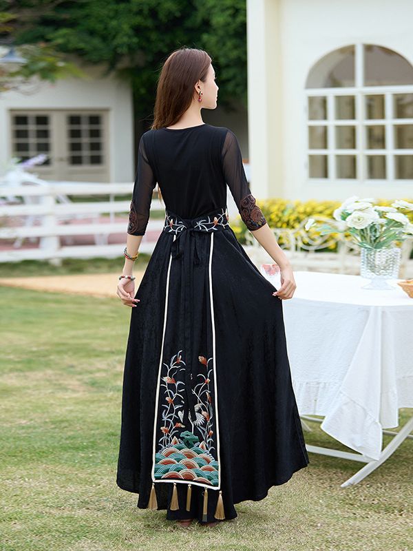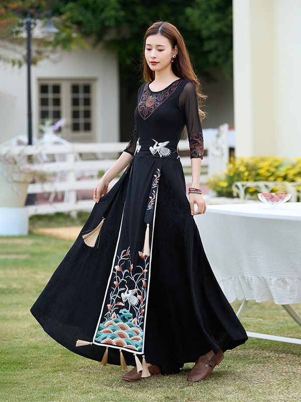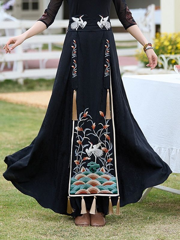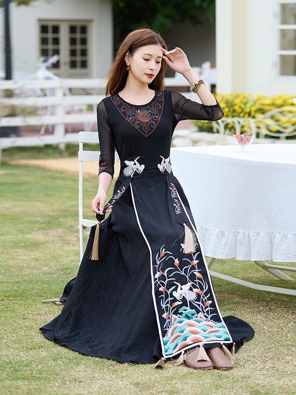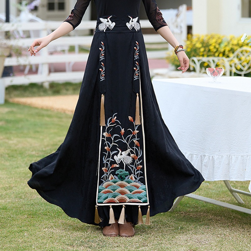 Весна и лето 2023 новая женская одежда в этническом стиле китайская Ретро Тяжелая промышленная вышитая юбка с верхом и свободной талией длинная юбка