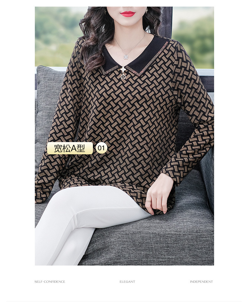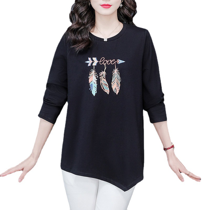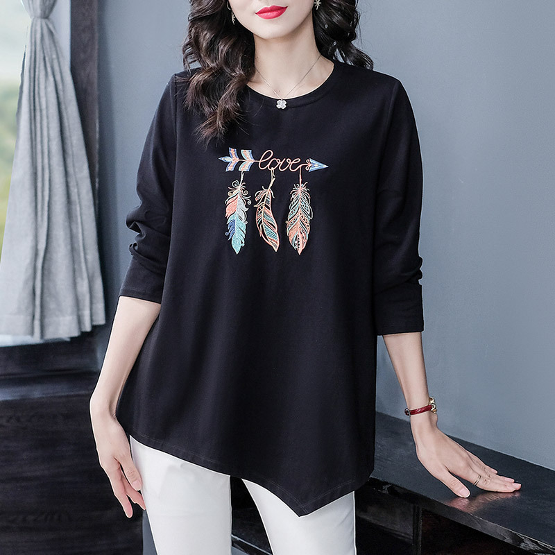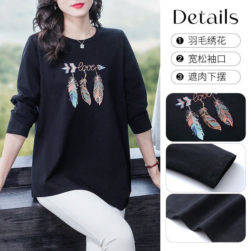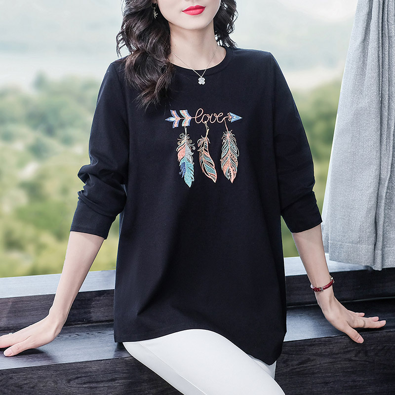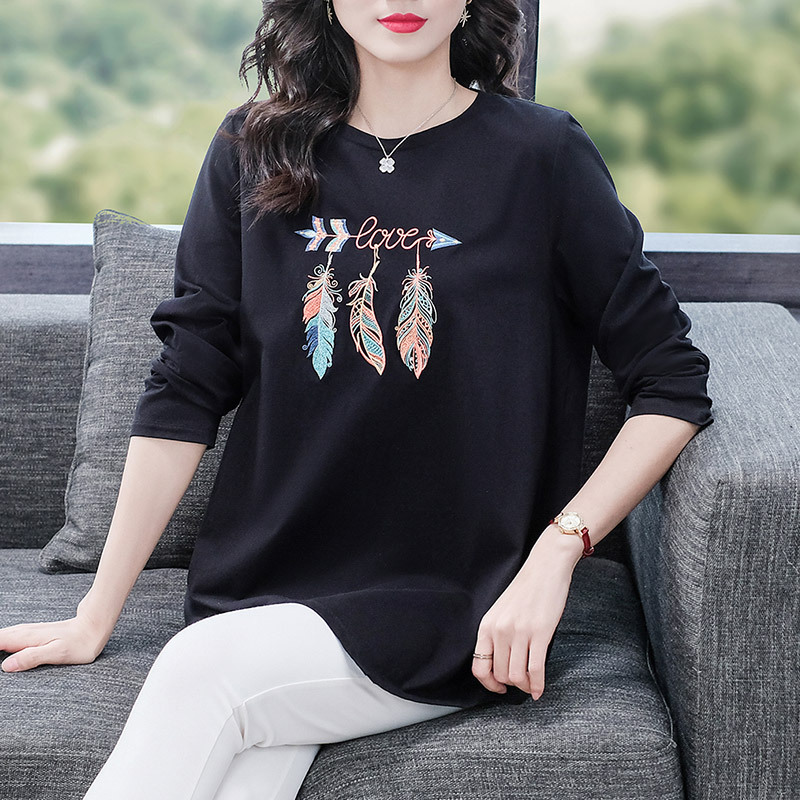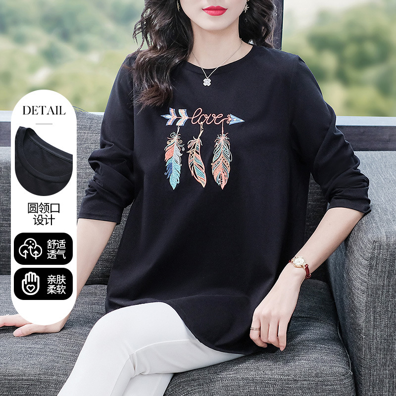 Одежда больших размеров для женщин среднего и пожилого возраста 2023 весенний вязаный дышащий легкий свитер с длинным рукавом и вышивкой и круглым вырезом для взрослых Футболка-топ