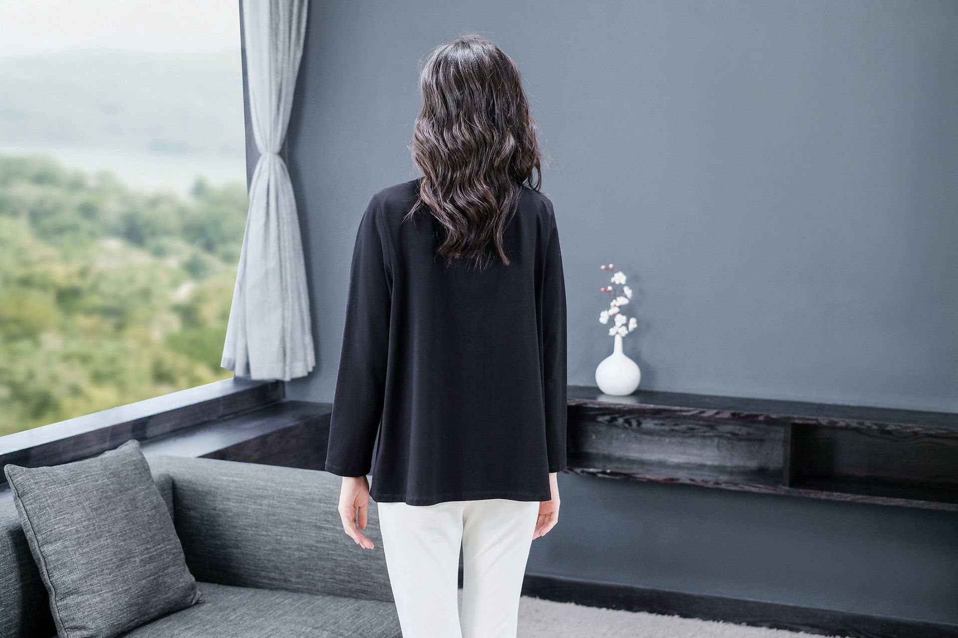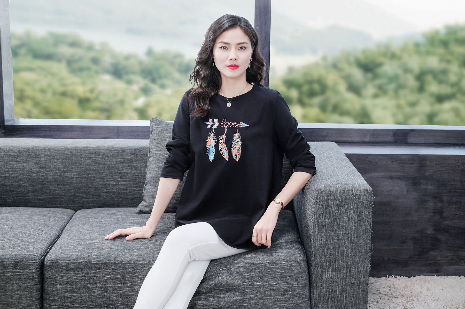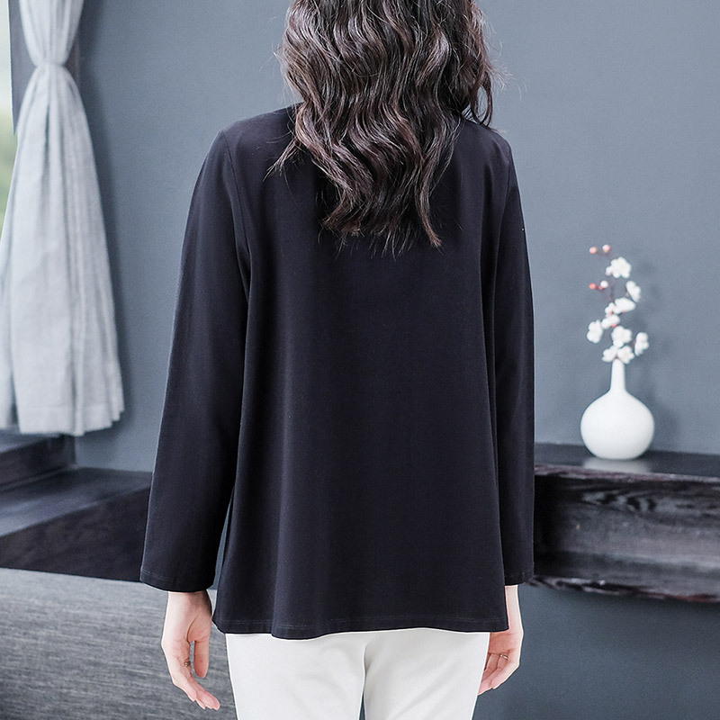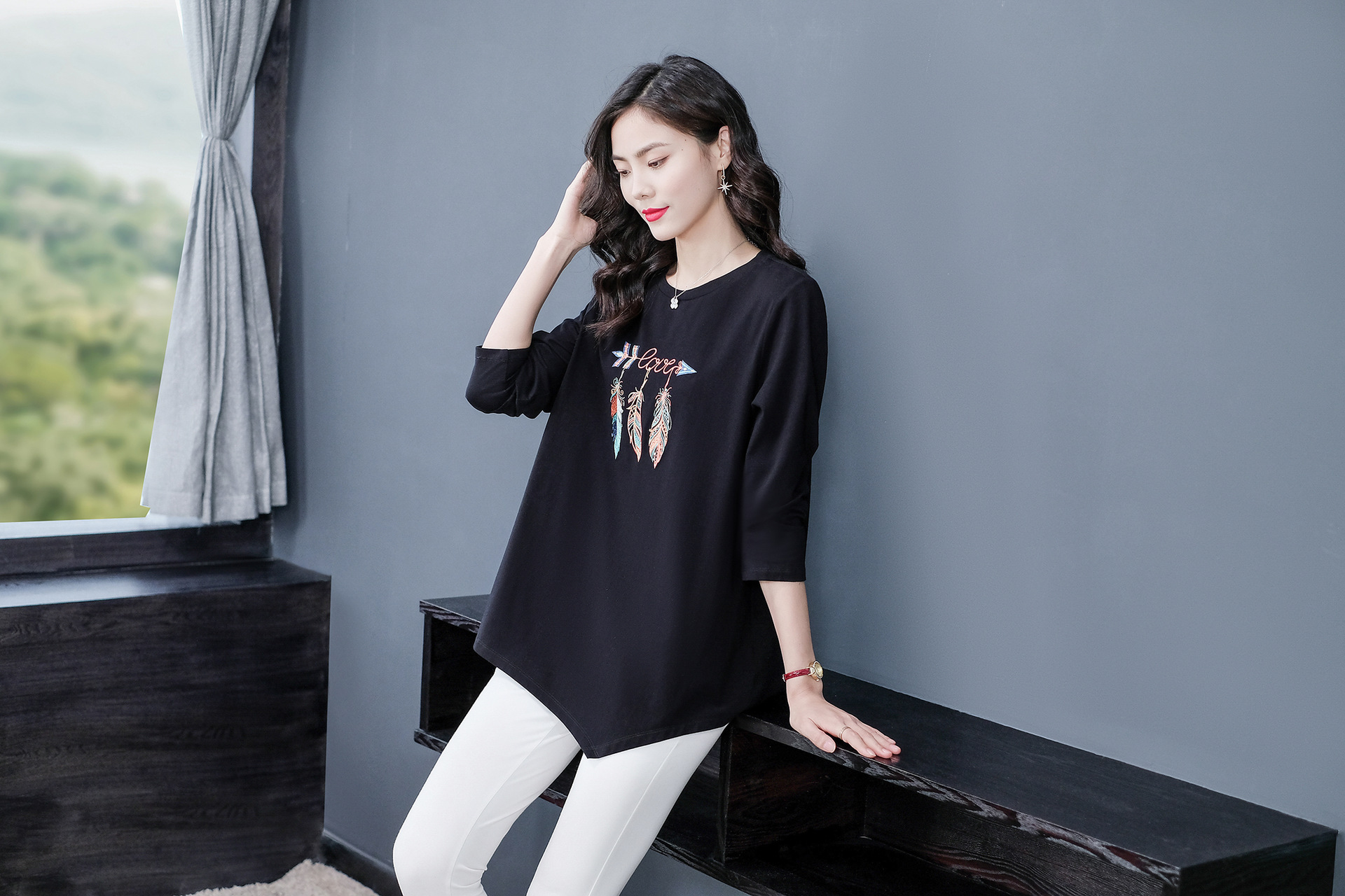 Одежда больших размеров для женщин среднего и пожилого возраста 2023 весенний вязаный дышащий легкий свитер с длинным рукавом и вышивкой и круглым вырезом для взрослых Футболка-топ