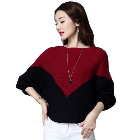 Весна и осень Новый вязаный свитер женский без бретелек воротник летучая мышь рубашка Универсальный вязаный свитер Женская Базовая рубашка