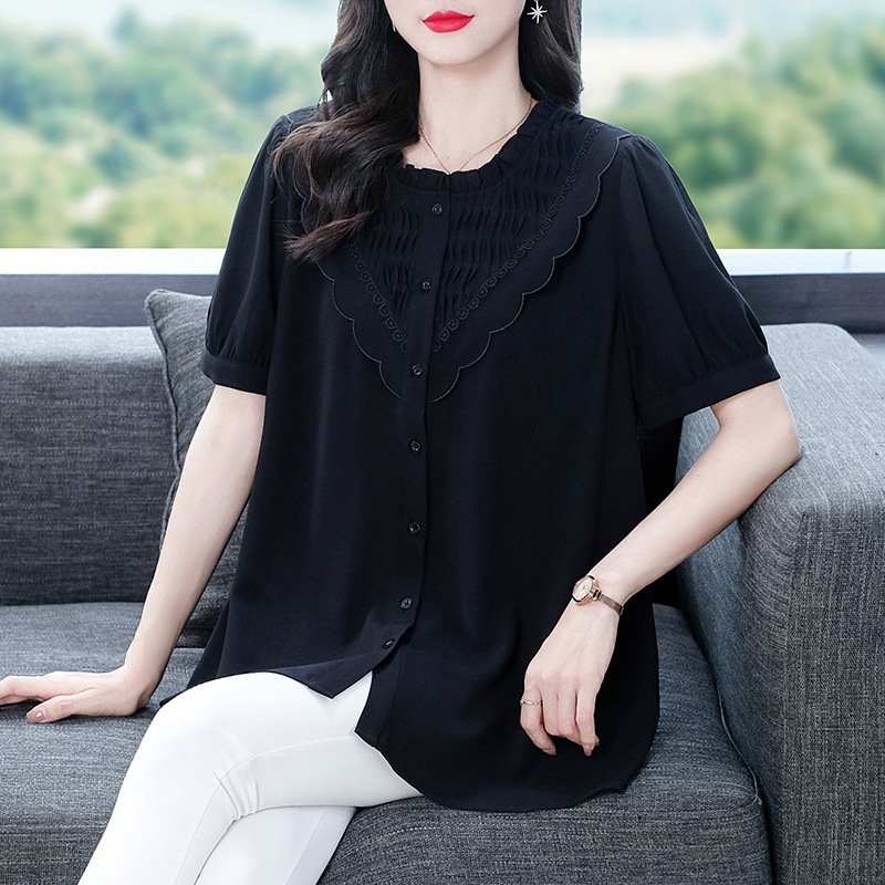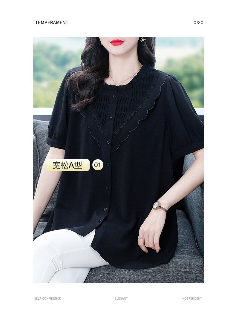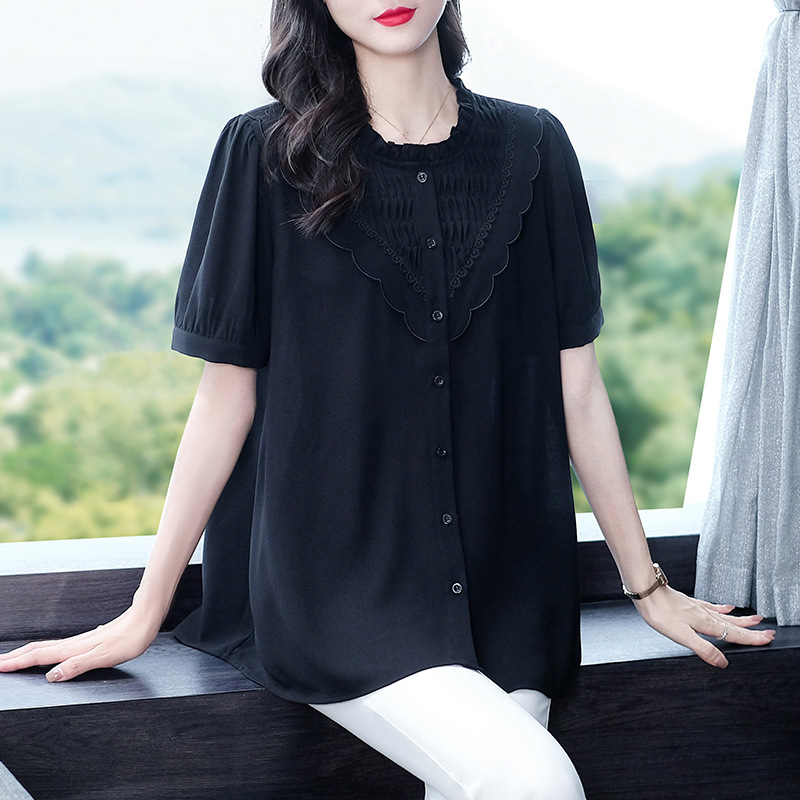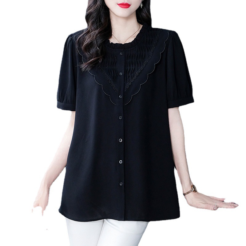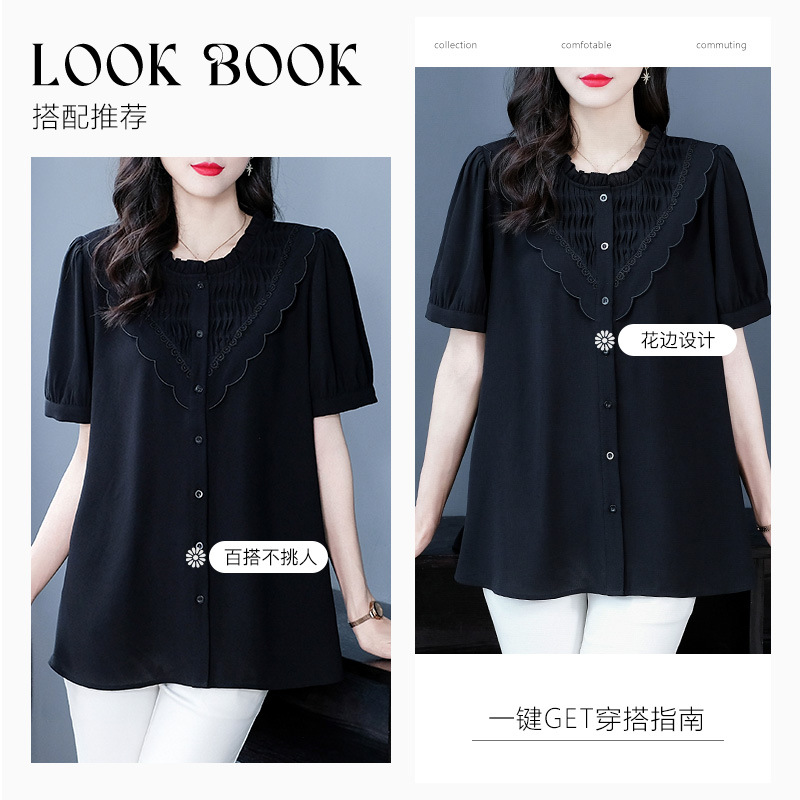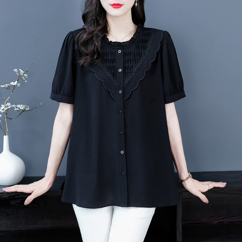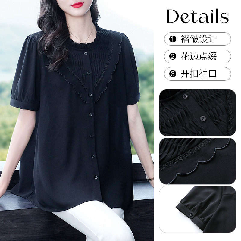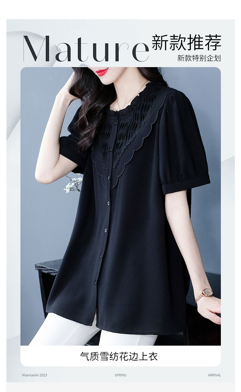 Летняя кружевная свободная универсальная шифоновая рубашка больших размеров для девочек с короткими рукавами и оборками, Топ для женщин среднего и пожилого возраста