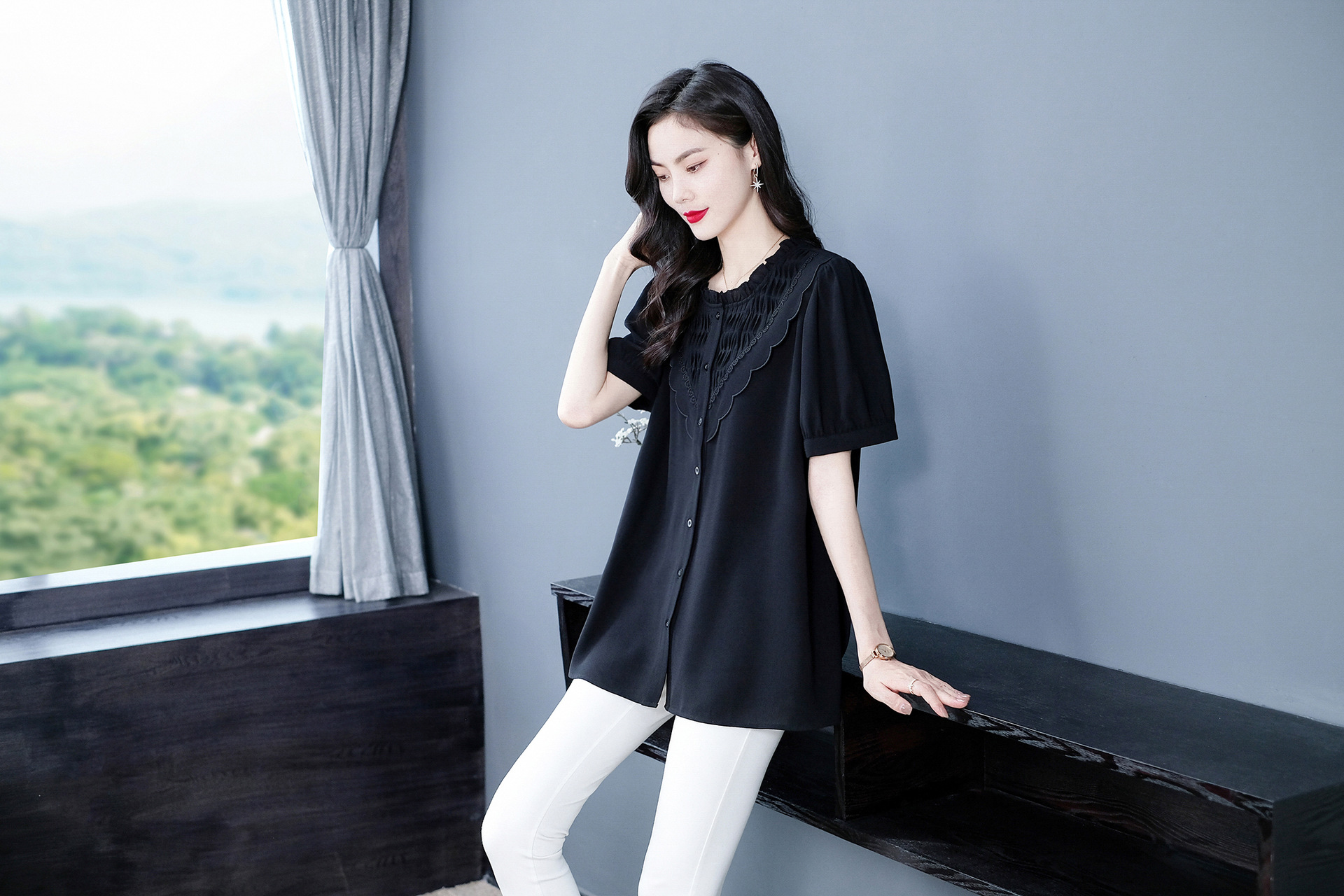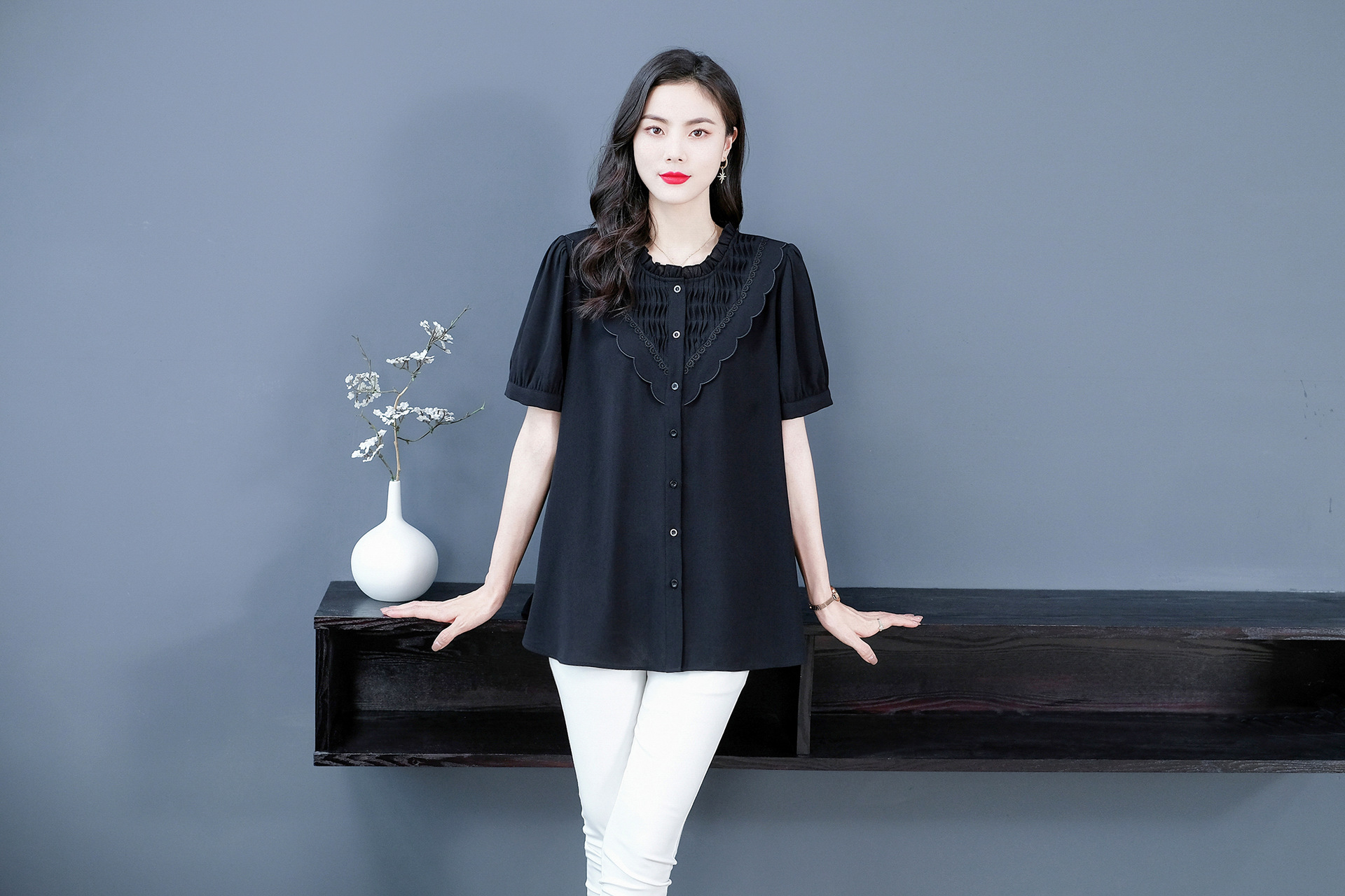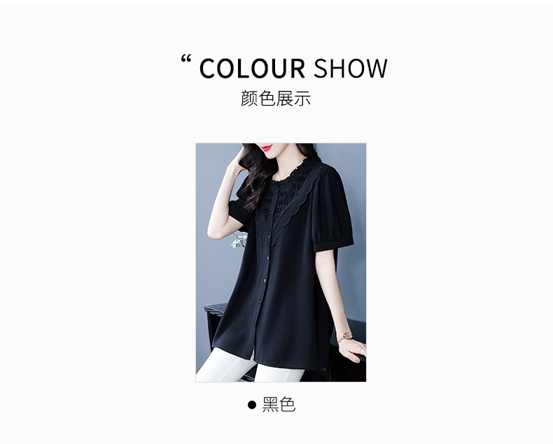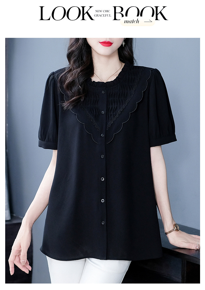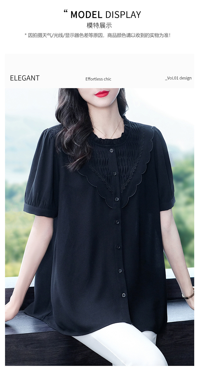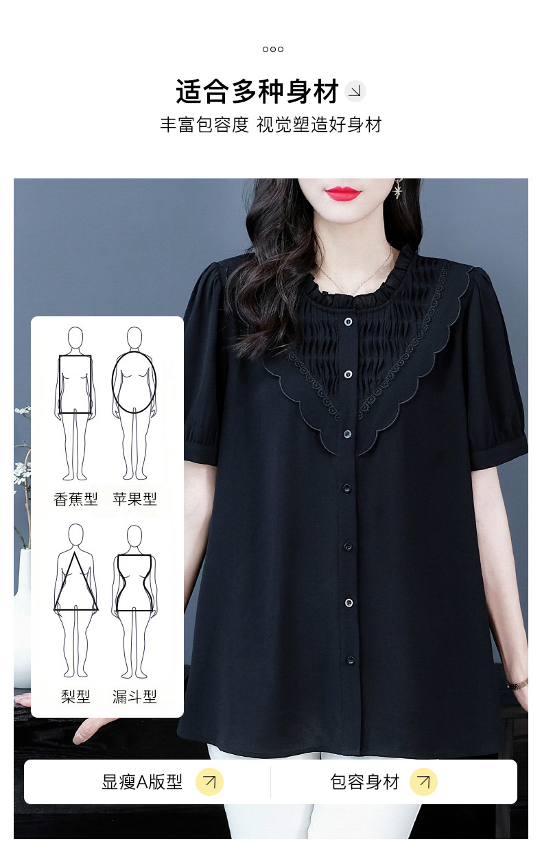 Летняя кружевная свободная универсальная шифоновая рубашка больших размеров для девочек с короткими рукавами и оборками, Топ для женщин среднего и пожилого возраста