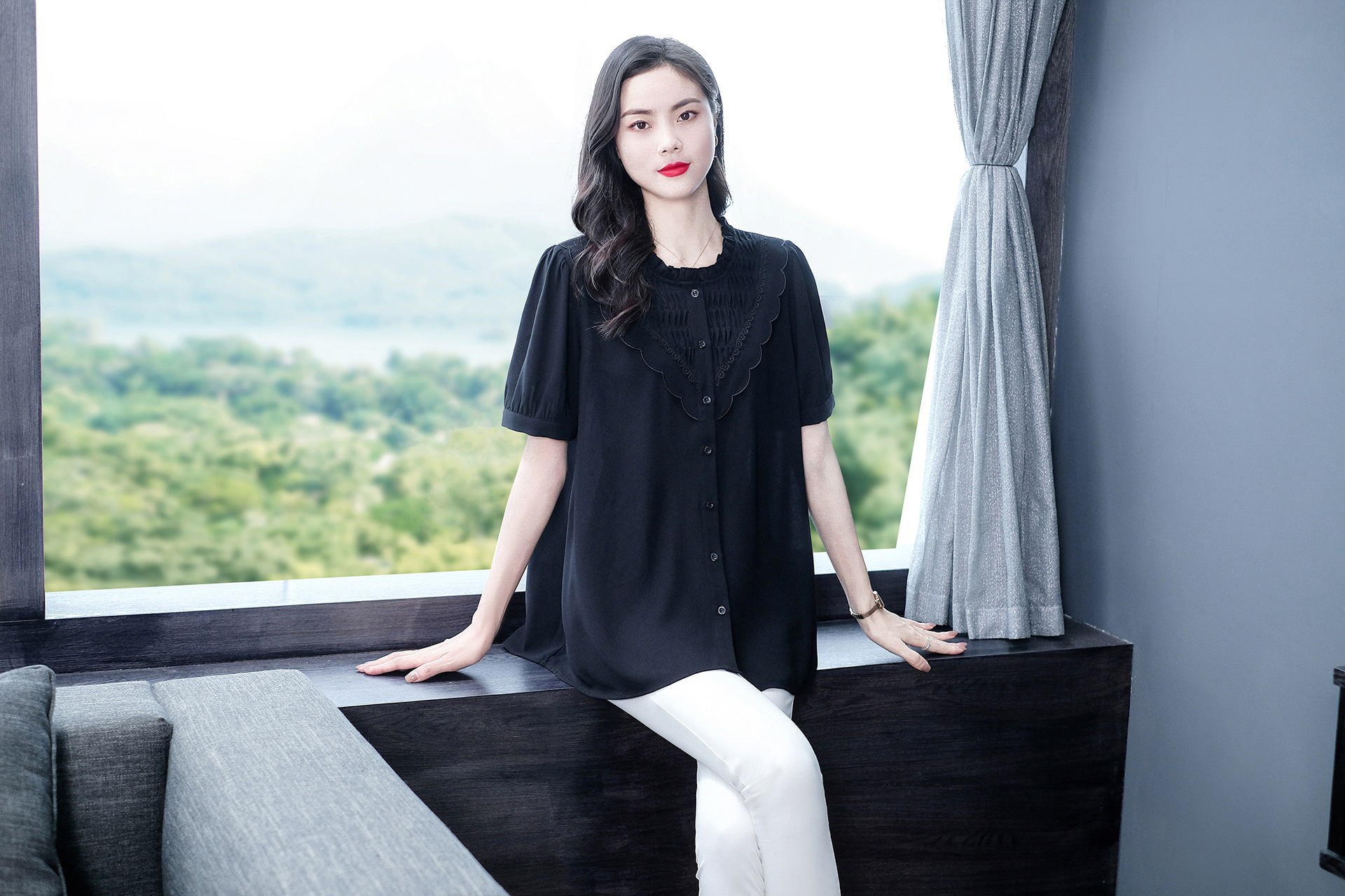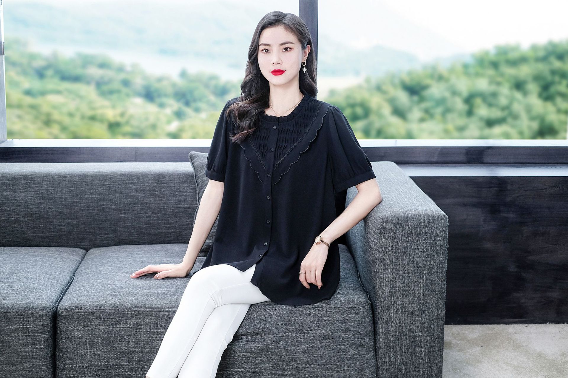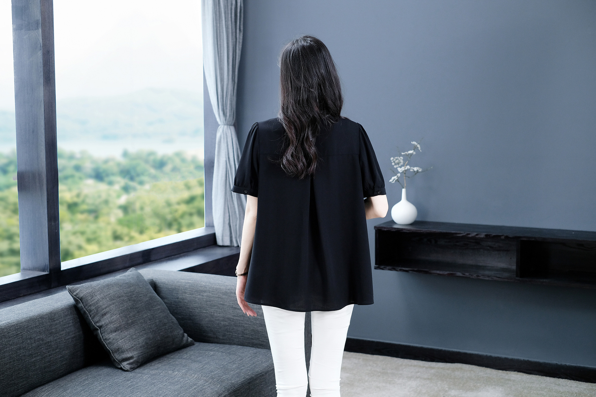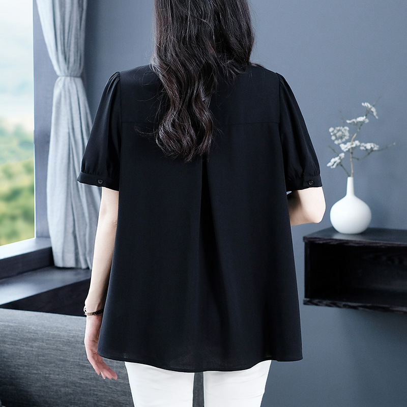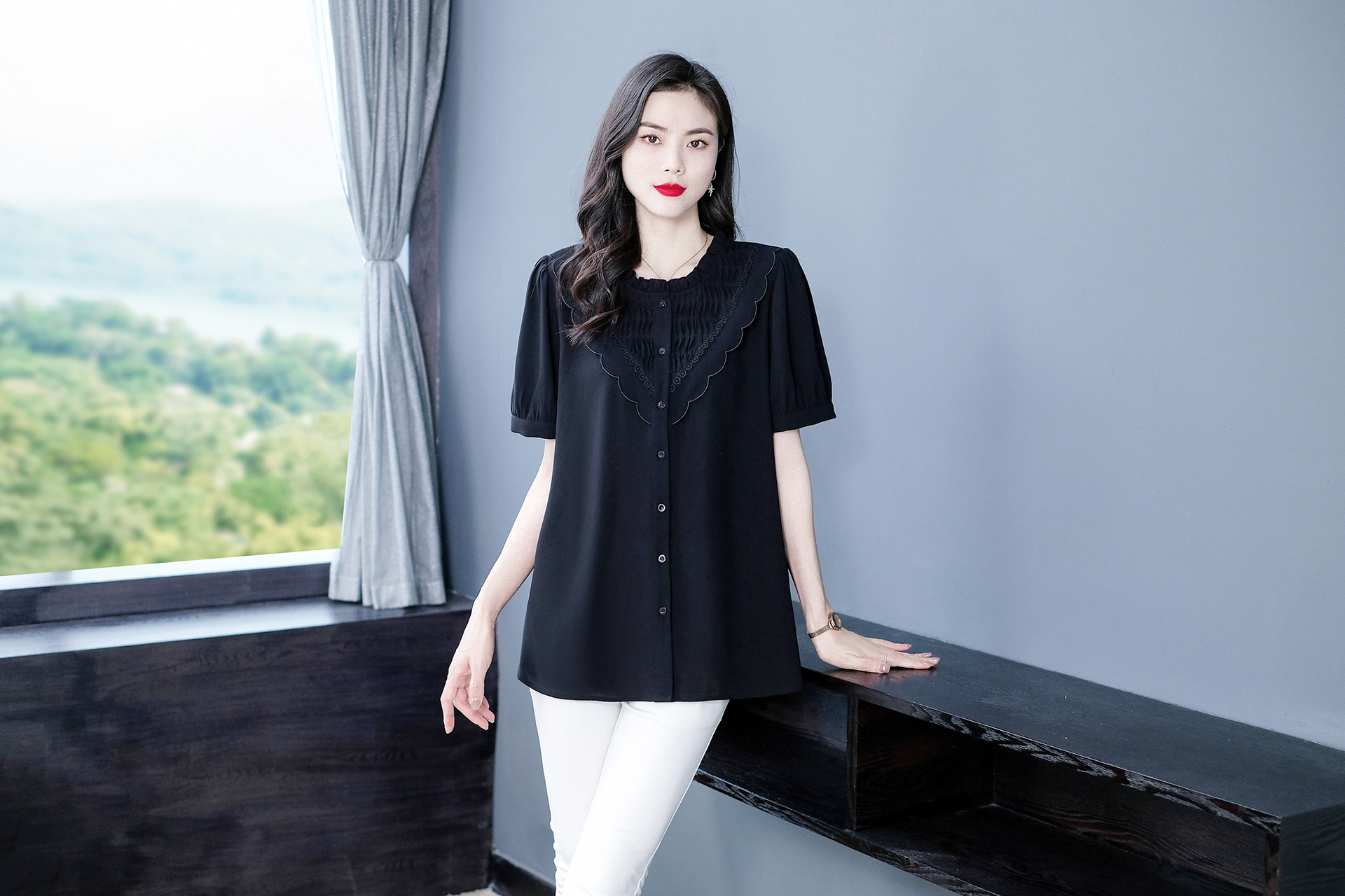 Летняя кружевная свободная универсальная шифоновая рубашка больших размеров для девочек с короткими рукавами и оборками, Топ для женщин среднего и пожилого возраста