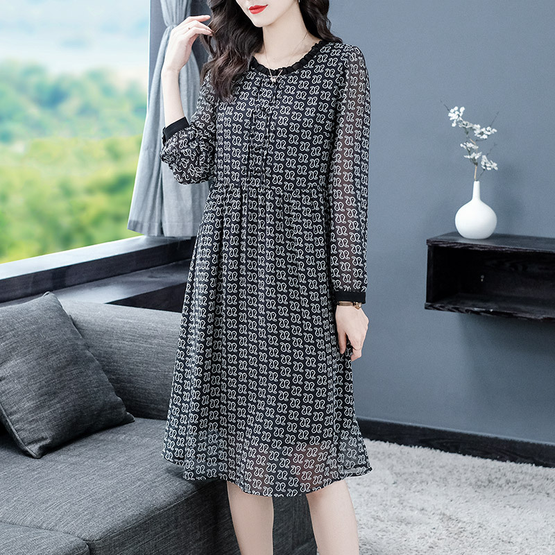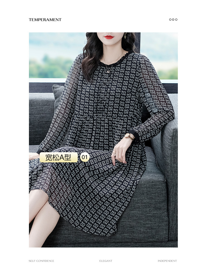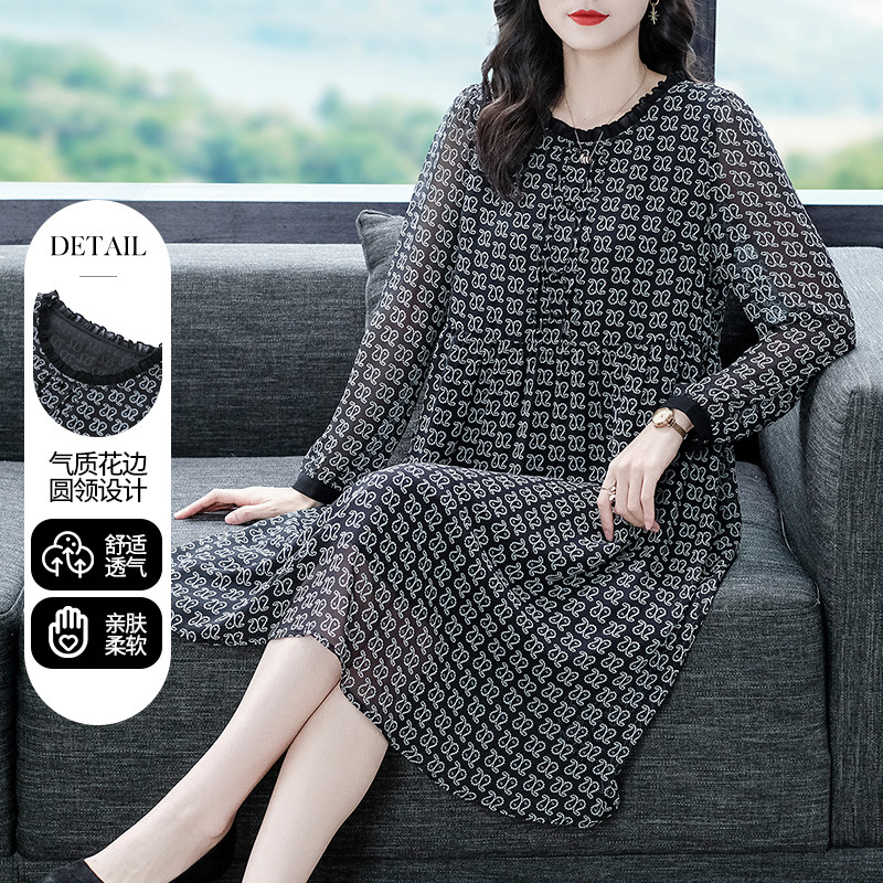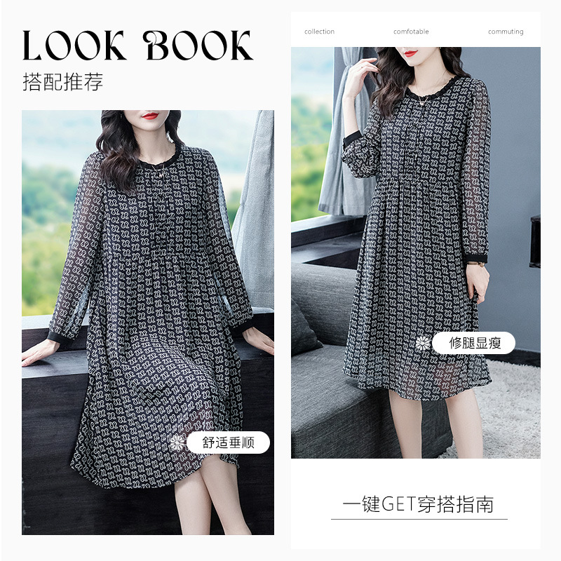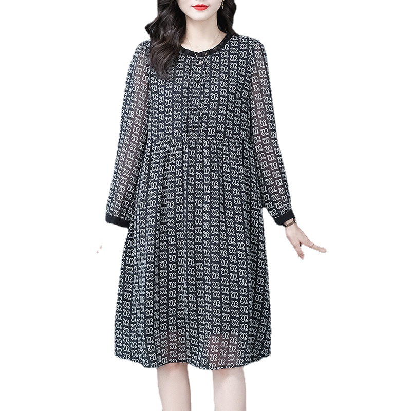 Летнее Новое пухлое платье для девочек больших размеров, свободное платье с круглым вырезом для похудения, платье с длинными рукавами, одежда для женщин среднего и пожилого возраста