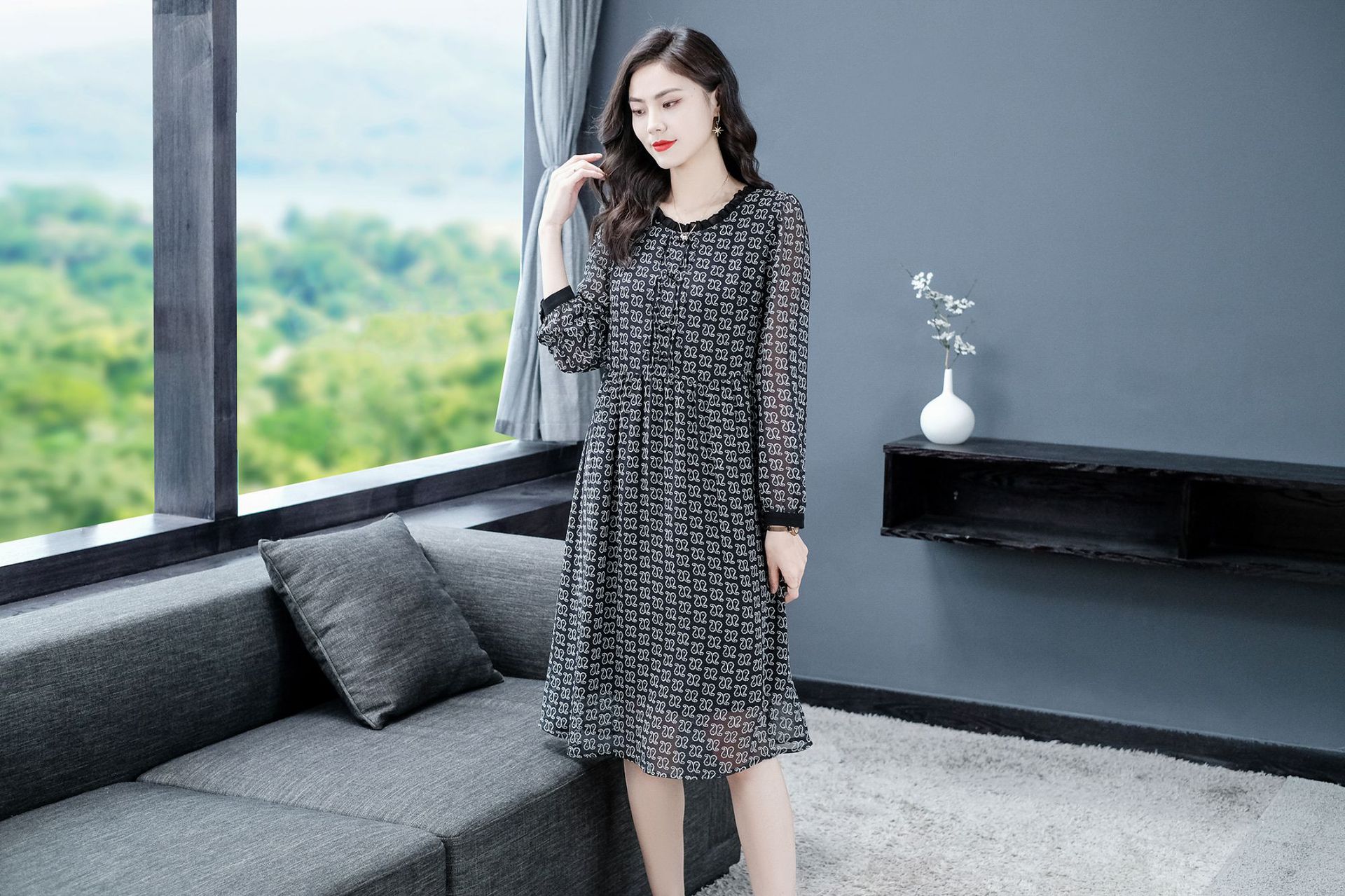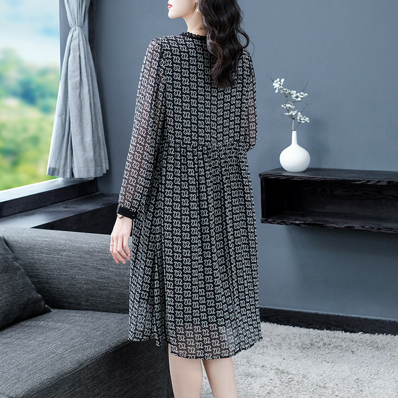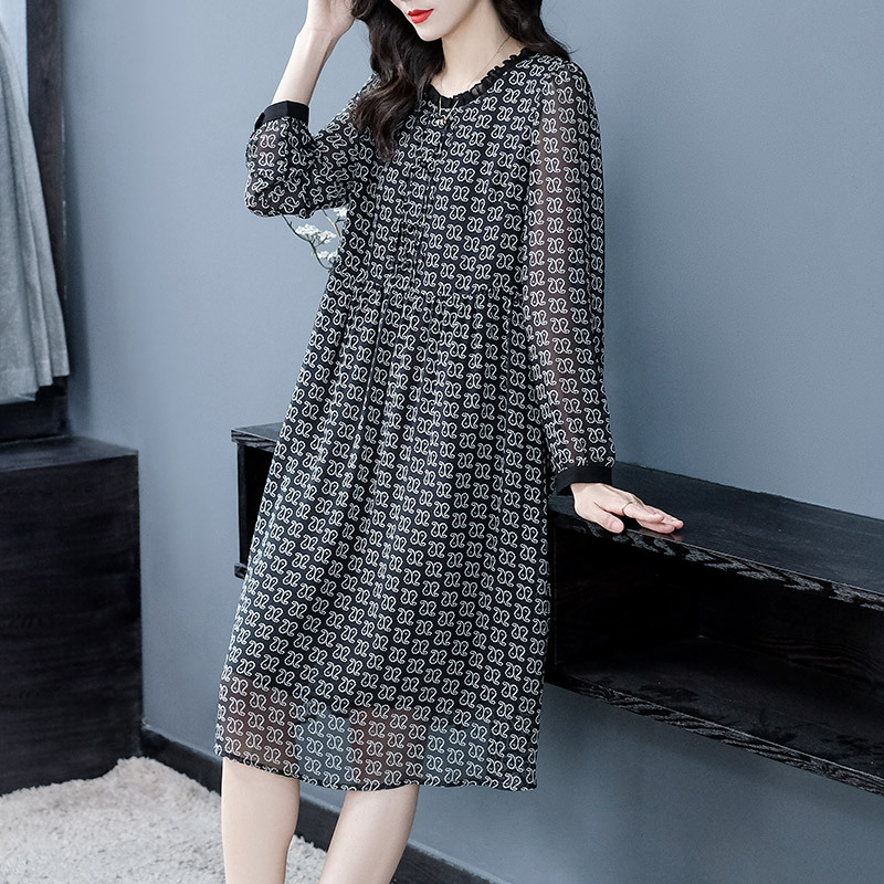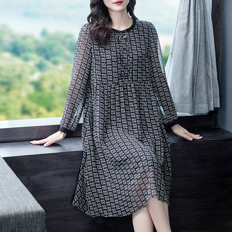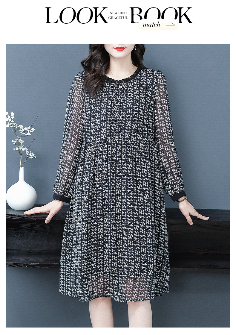 Летнее Новое пухлое платье для девочек больших размеров, свободное платье с круглым вырезом для похудения, платье с длинными рукавами, одежда для женщин среднего и пожилого возраста