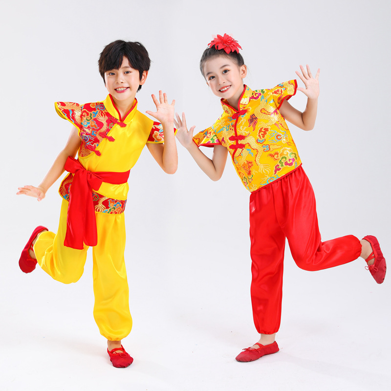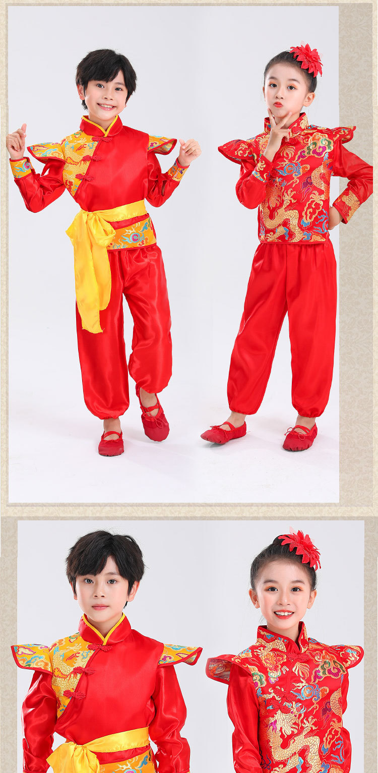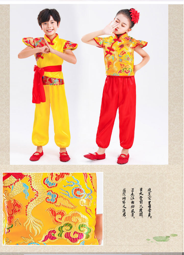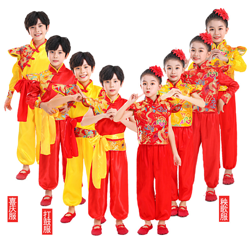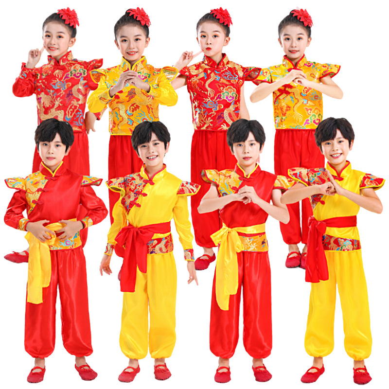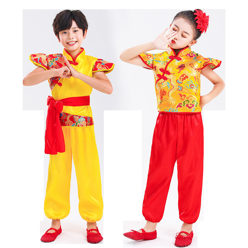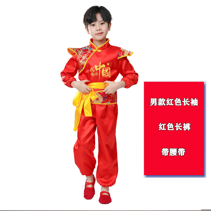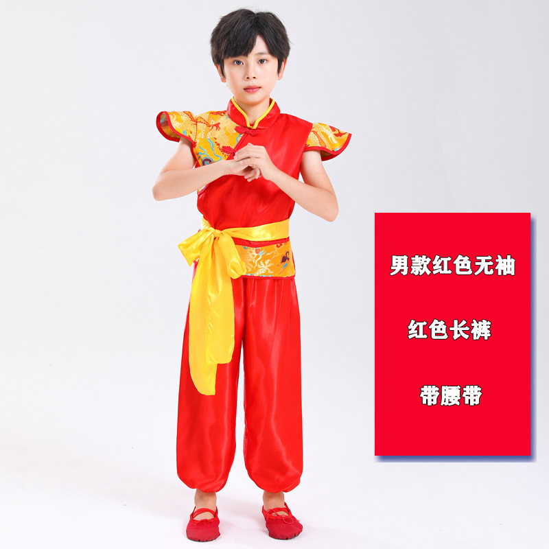 Детский праздничный костюм для открытия выступления Одежда Янко Детский рэп Одежда для китайского Красного барабана Костюм для выступления на поясе