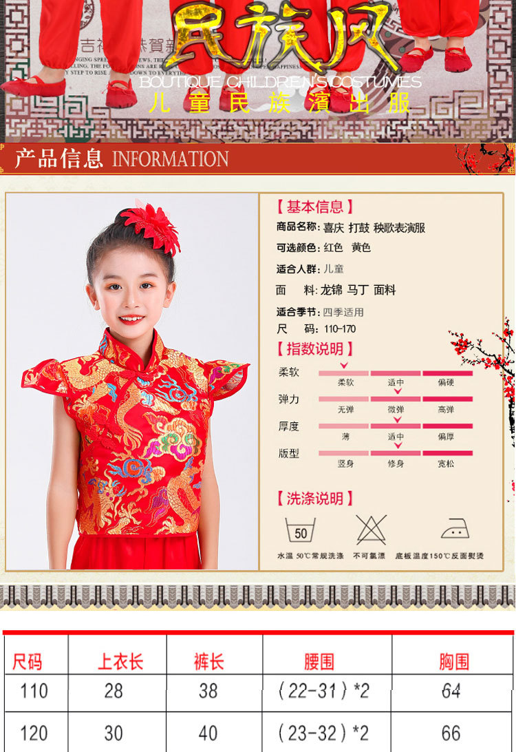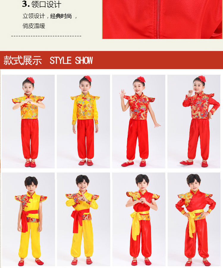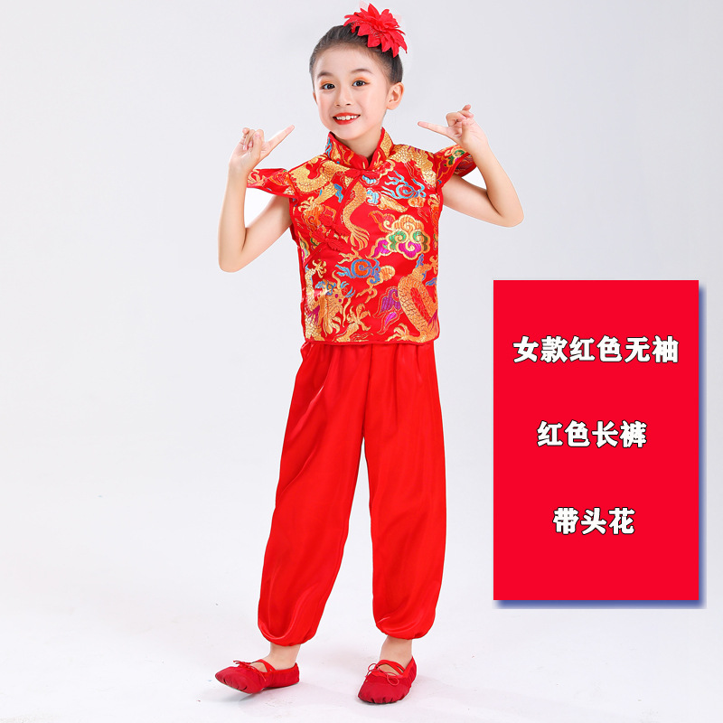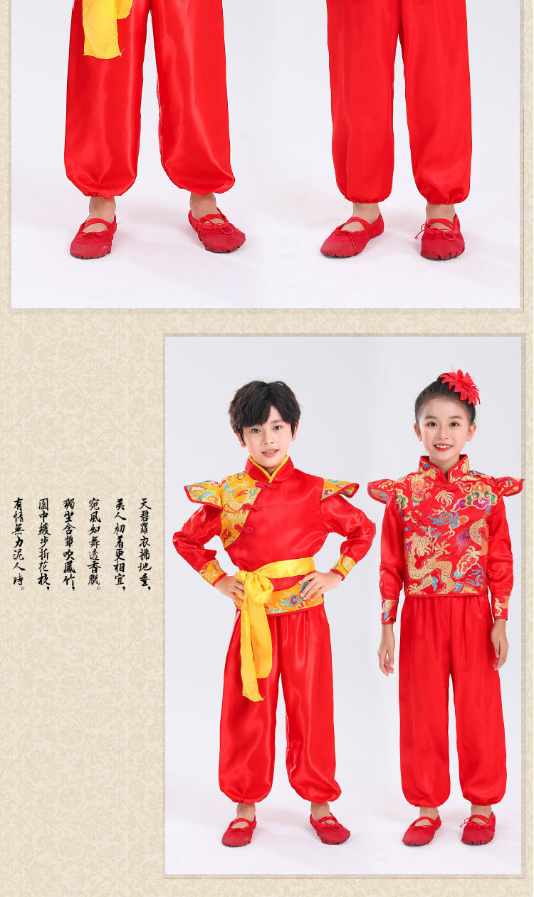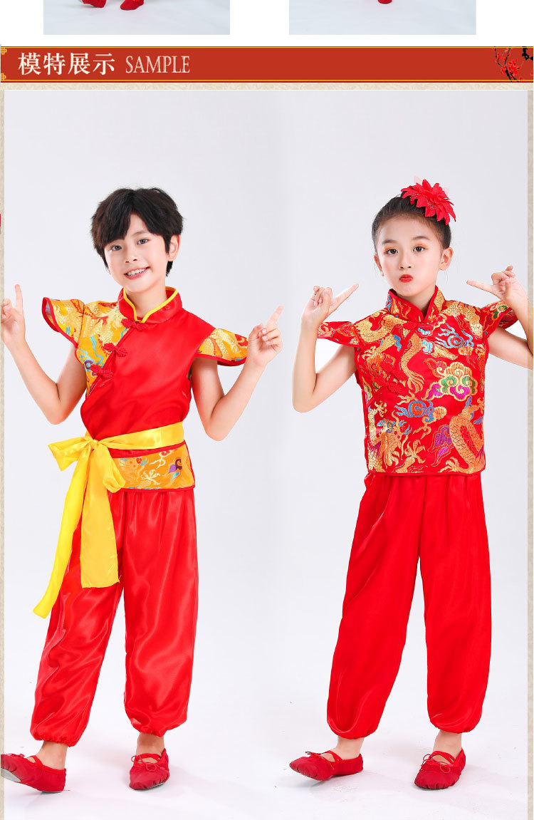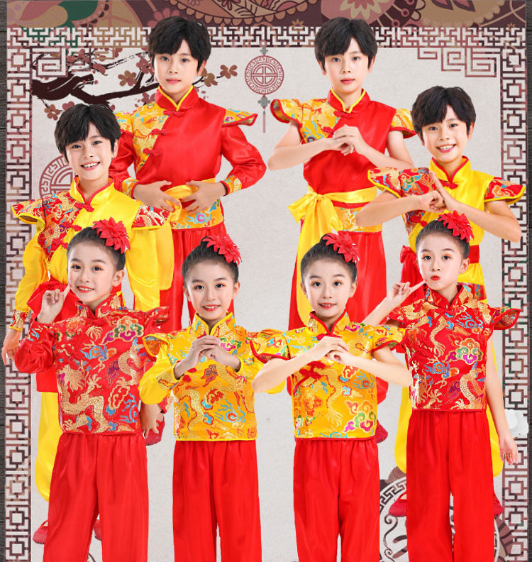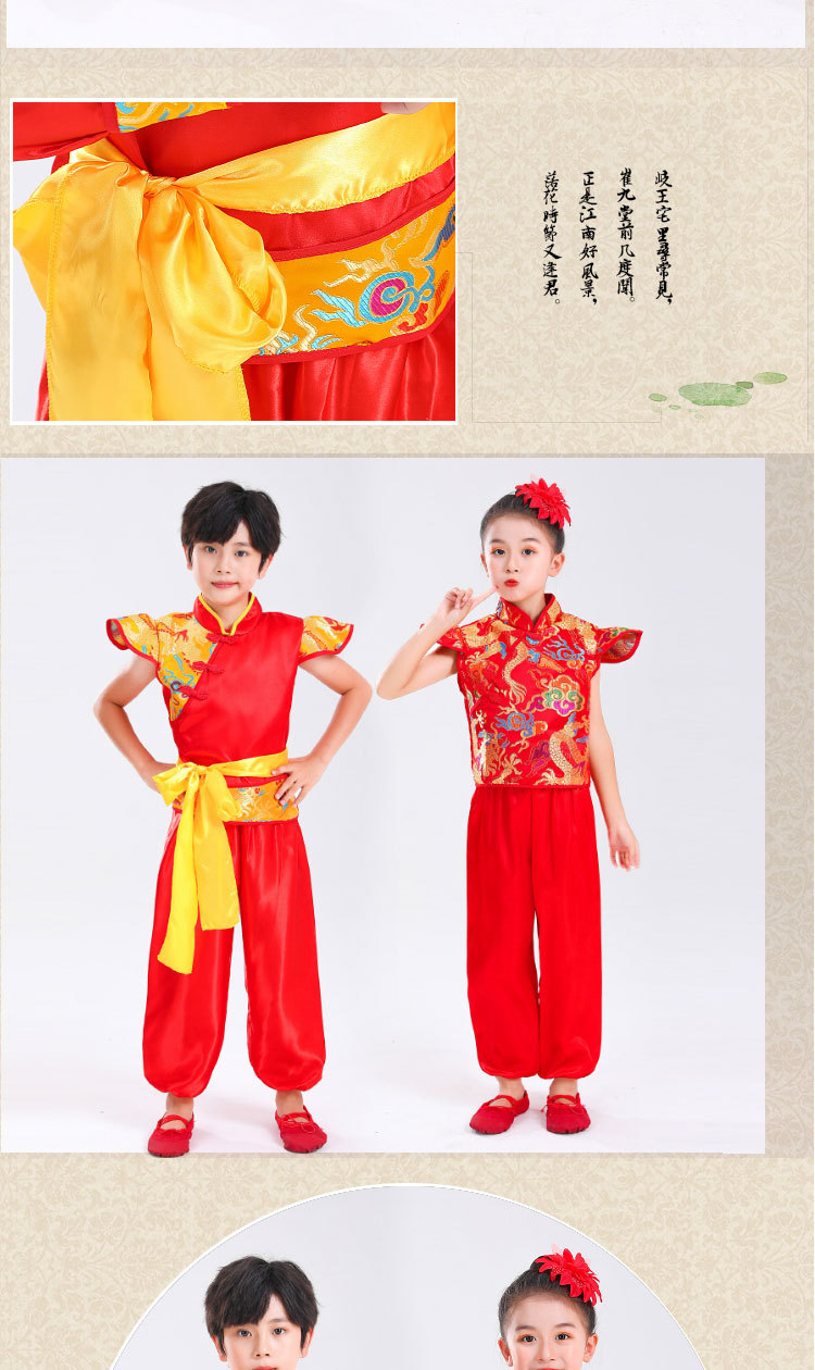 Детский праздничный костюм для открытия выступления Одежда Янко Детский рэп Одежда для китайского Красного барабана Костюм для выступления на поясе