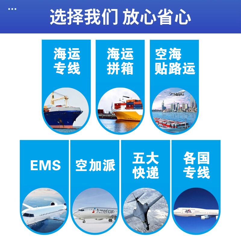 2.快递:DHL/UPS/TNT/EMS/联邦快递/电商小包,从广州、深圳、宁波、上海、青岛、厦门、香港、北京等 主要机场出口