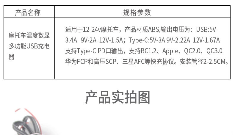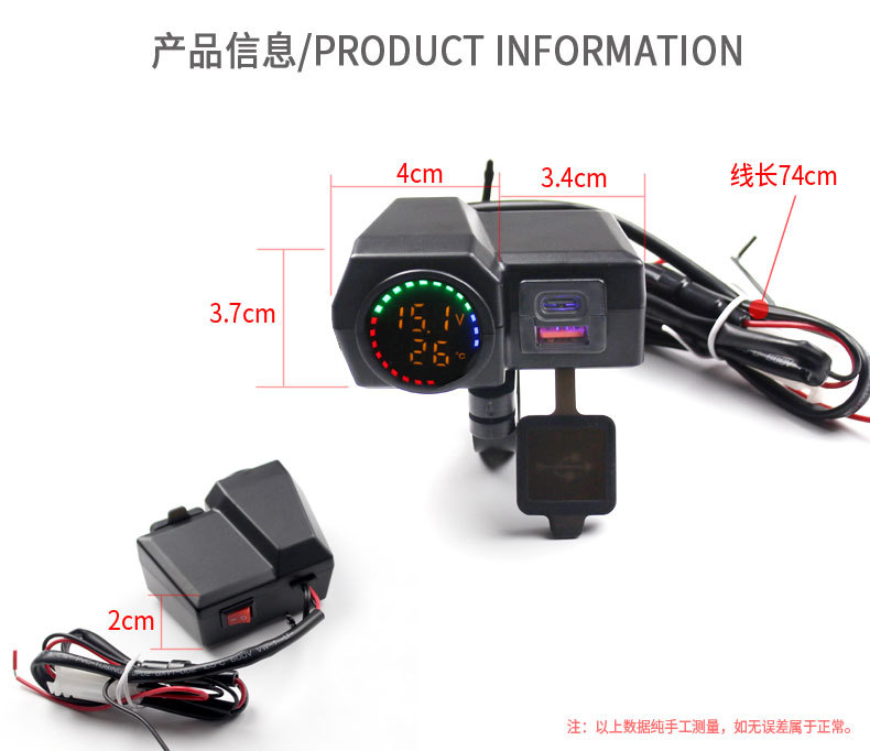 Мотоцикл многофункциональное автомобильное зарядное устройство для мобильного телефона температуры и напряжения