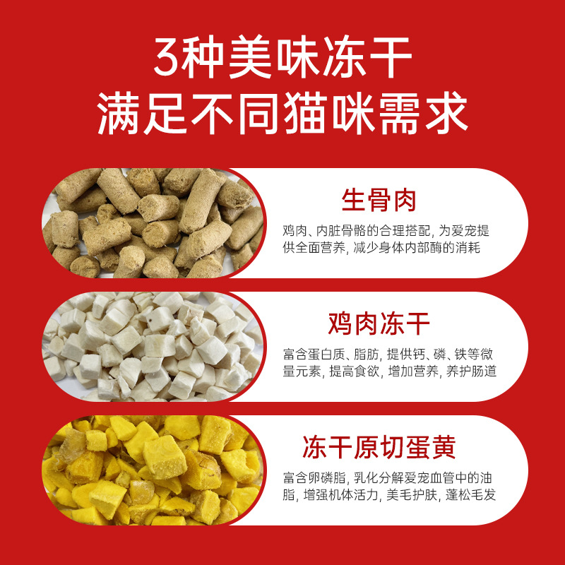 Представленная трехкомпонентная (серебряная кость + яичный желток); Пищевая полная цена (обслуживание желудочно-кишечного тракта); Juewei три куска (курица + необработанное костное мясо)