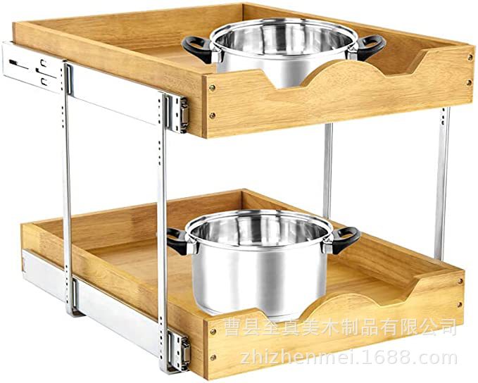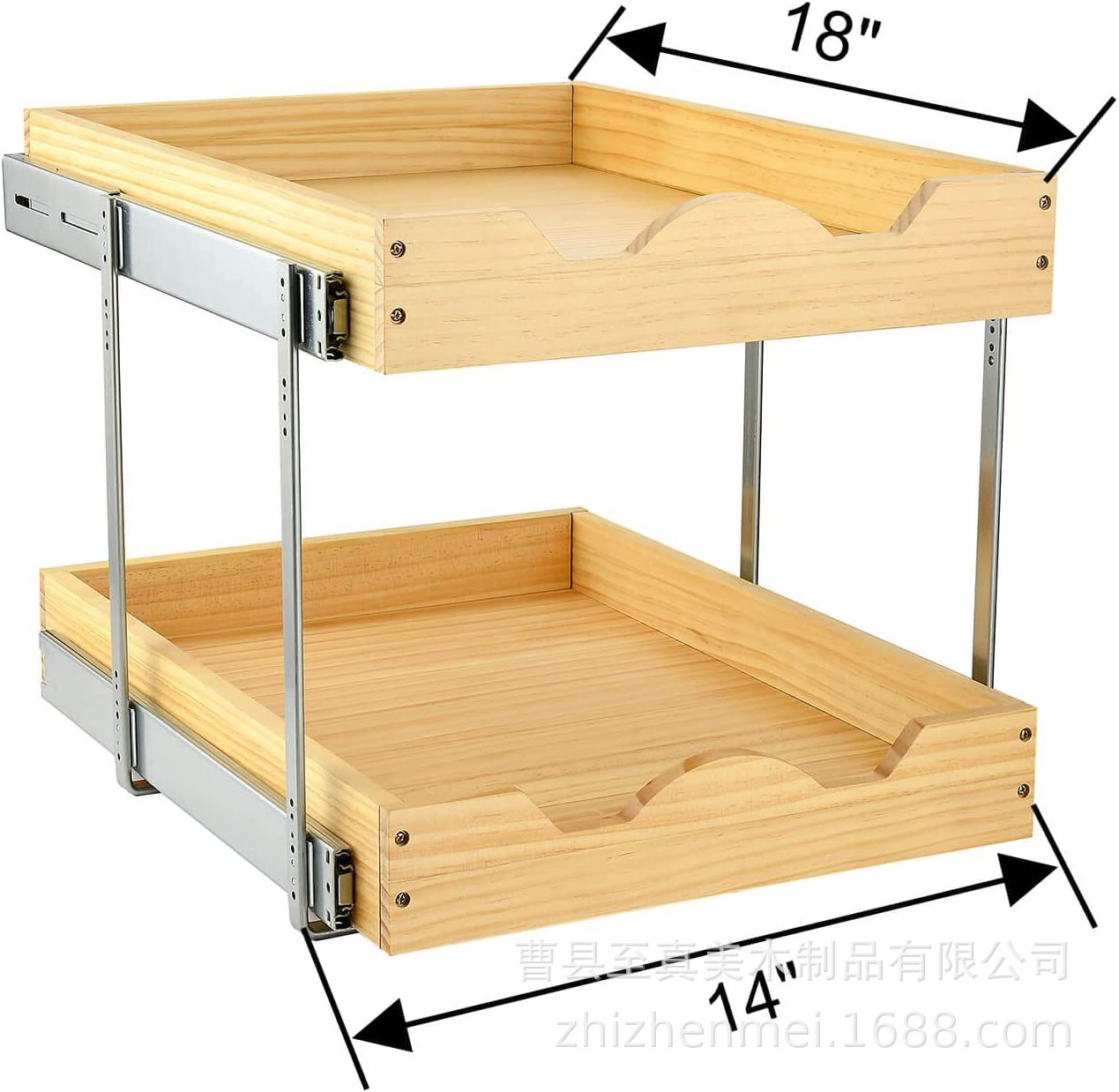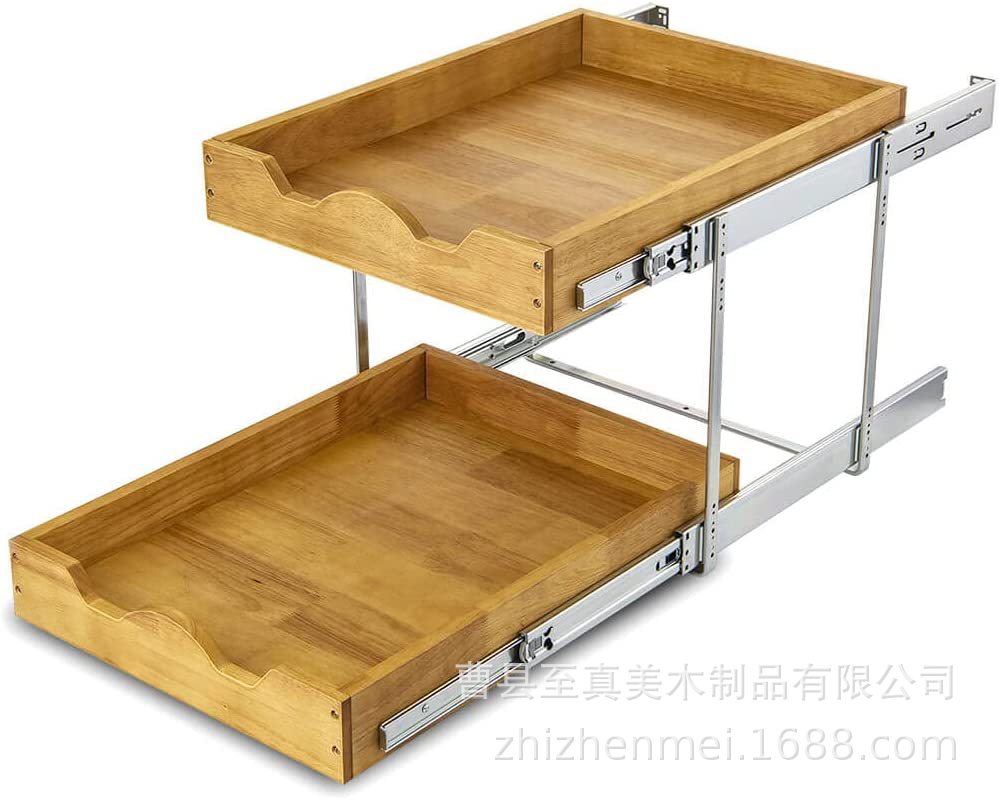 2-х слойный выдвижной шкаф-органайзер, выдвижной деревянный ящик, двухслойная выдвижная стойка, деревянная стойка для хранения
