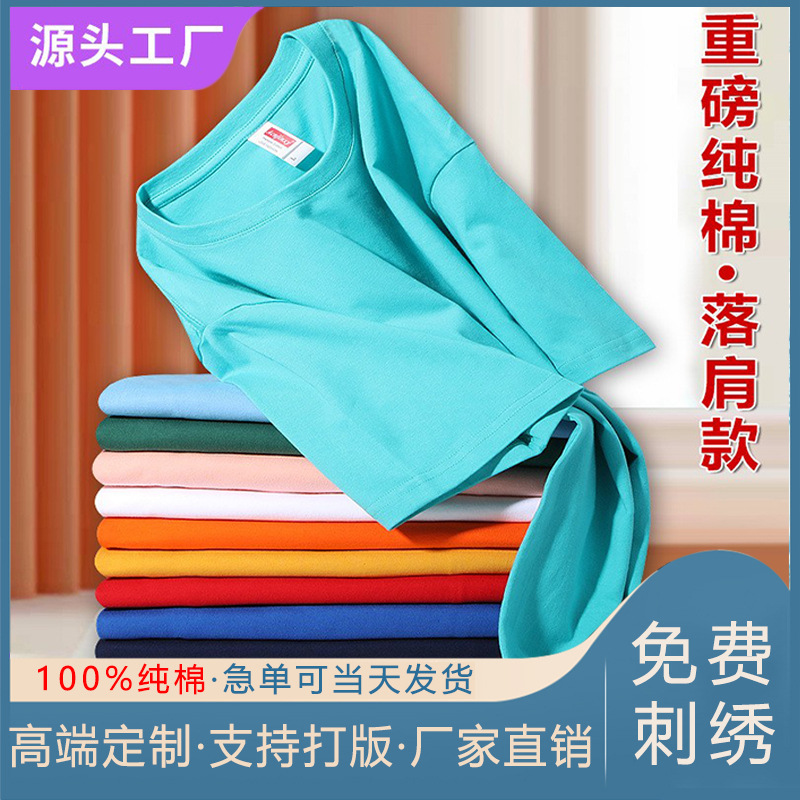Футболка с короткими рукавами и логотипом, Плотная хлопковая футболка с короткими рукавами на плечах, мужская и женская футболка с вышивкой, пустая футболка с круглым вырезом, летняя