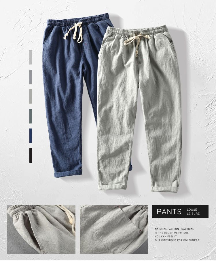 Льняные брюки Мужские свободные хлопчатобумажные льняные мужские повседневные брюки Летние прямые льняные мужские брюки летние шорты