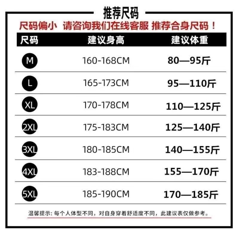 М (рекомендуется носить 80-90 кг); L (рекомендуется носить 90-100 кг); XL (рекомендуется носить 100-110 кг); 2XL (рекомендуется носить 110-125 кг); 3XL (рекомендуется носить 125-140 кг); 4XL (рекомендуется носить 140-160 кг); 5XL (рекомендуется носить 160-180 кг)