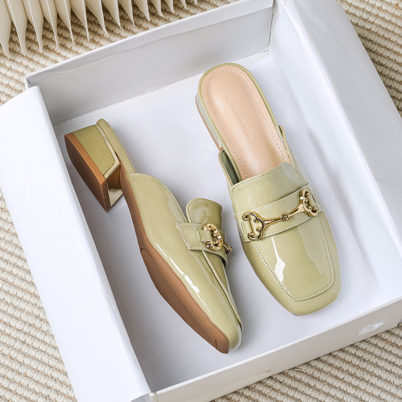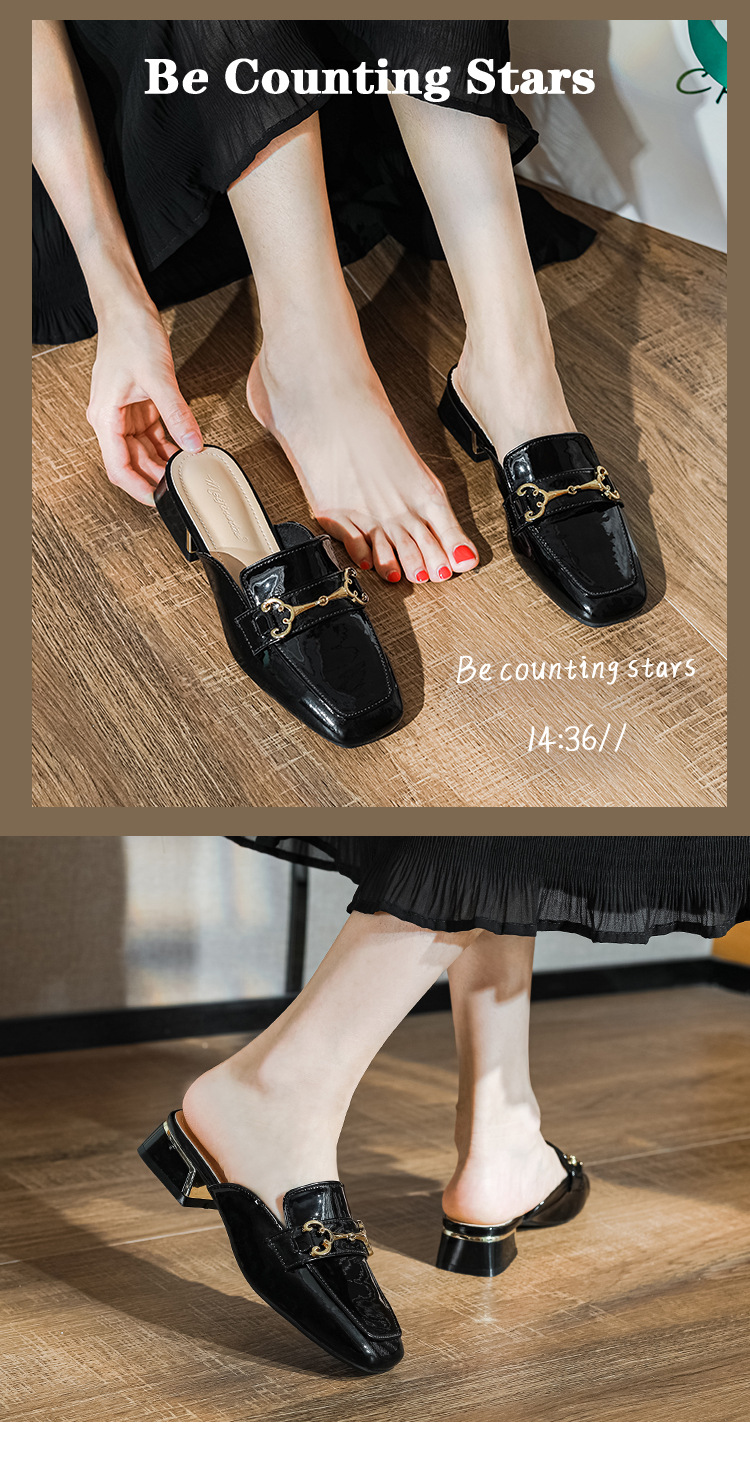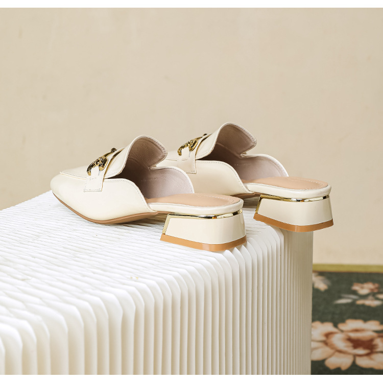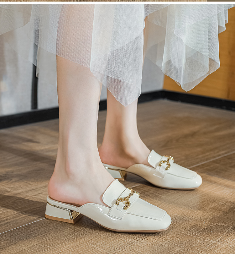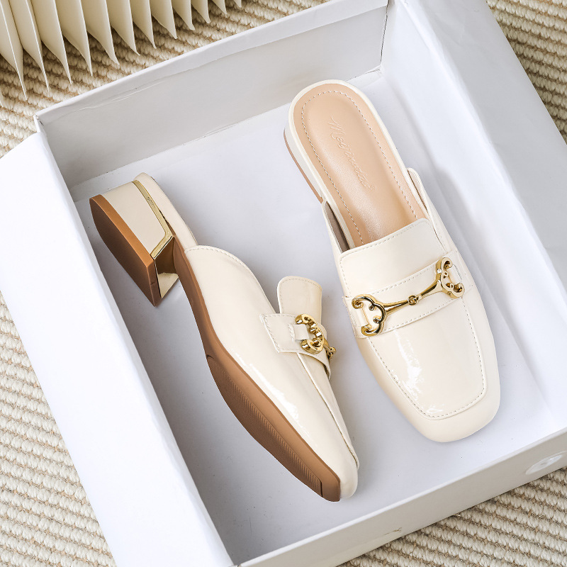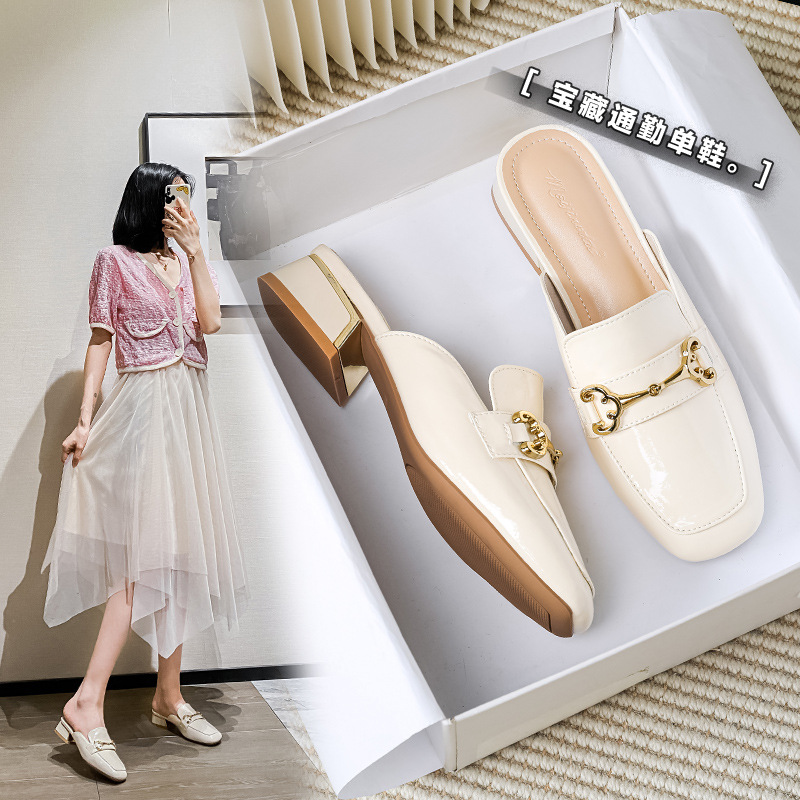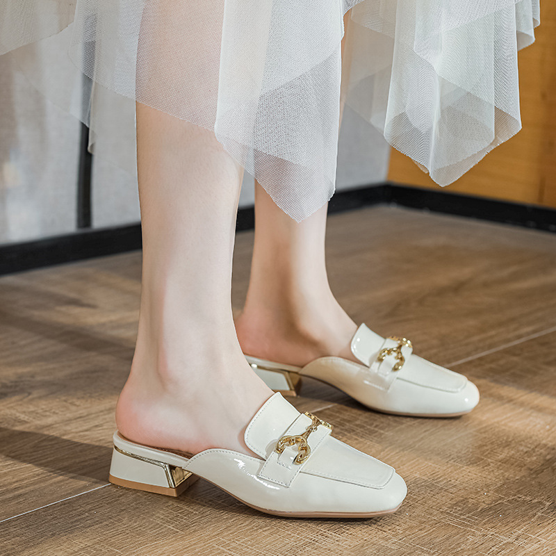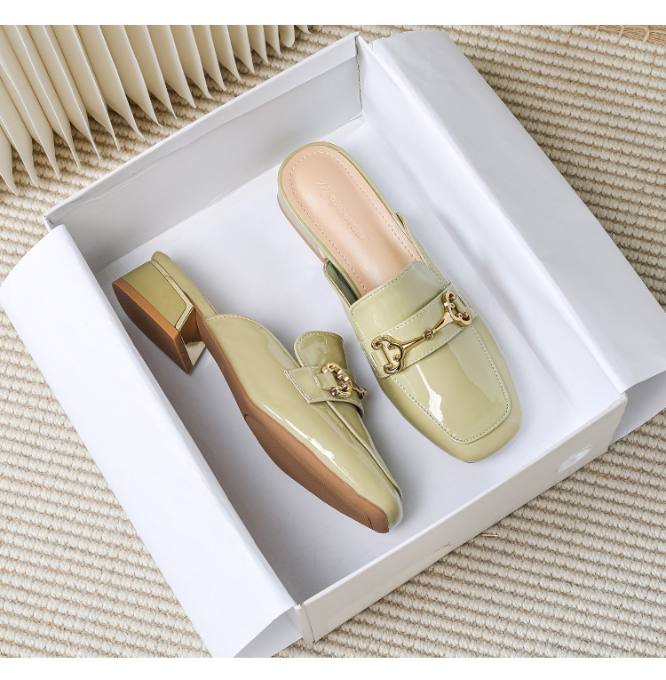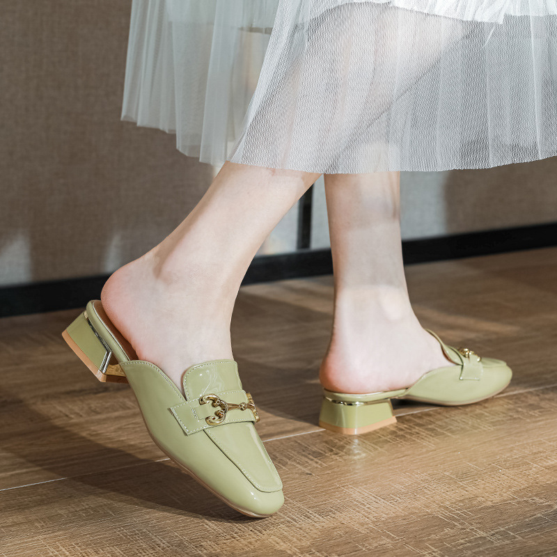 Женские шлепанцы на массивном каблуке с закрытым носком, новая модель весна-лето 2025, подходят для улицы, высококачественные универсальные ленивые тапочки, полузакрытые, большие размеры.