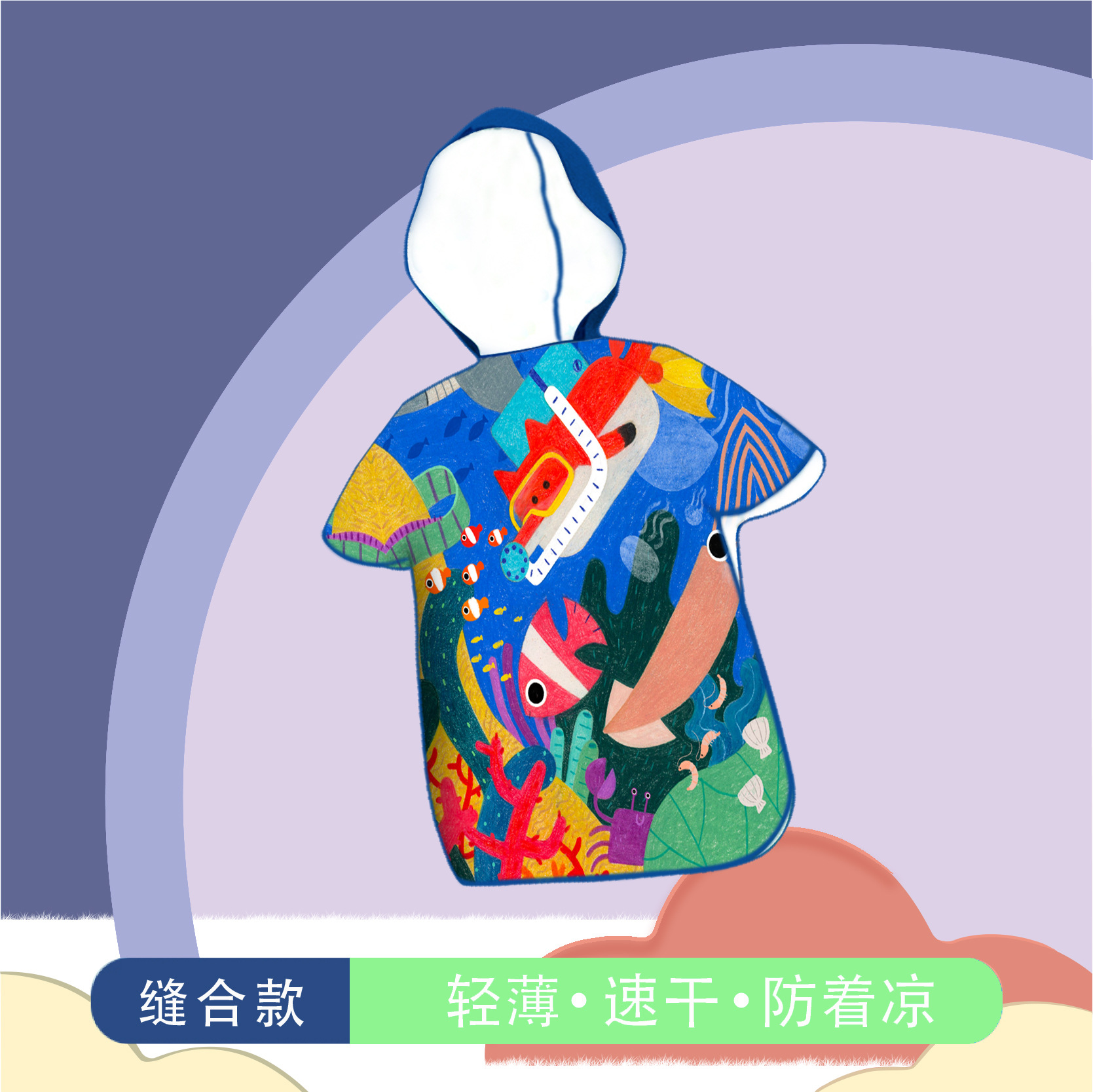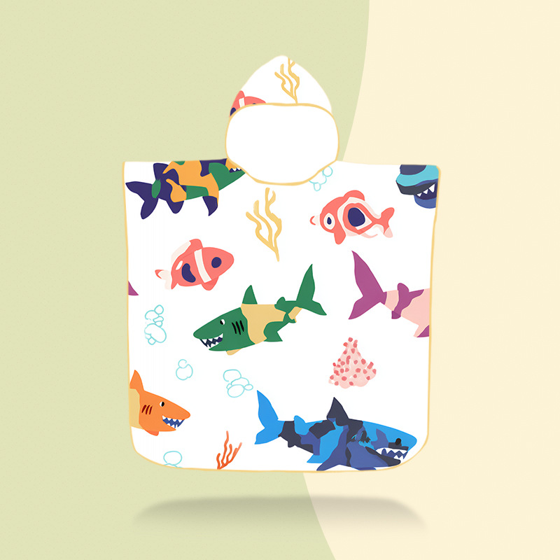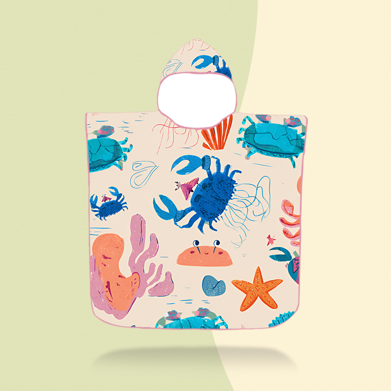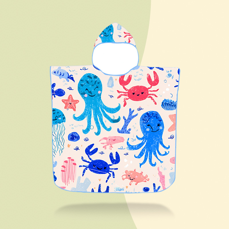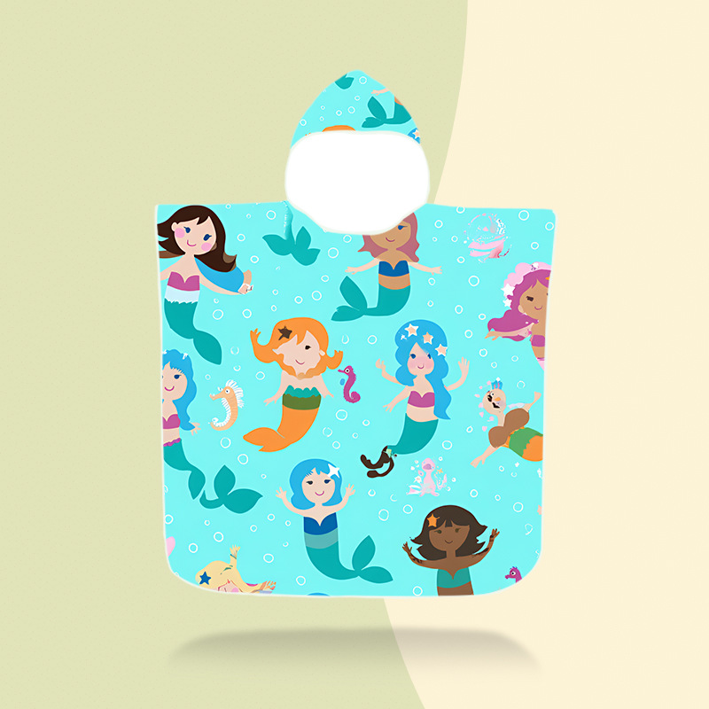 Детское банное полотенце с накидкой и капюшоном, быстросохнущее пляжное полотенце, халат Amazon, морской купальный халат с мультяшным принтом для переодевания