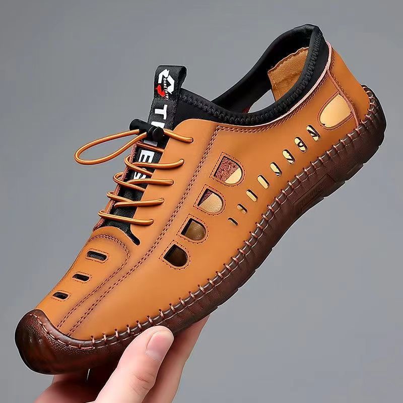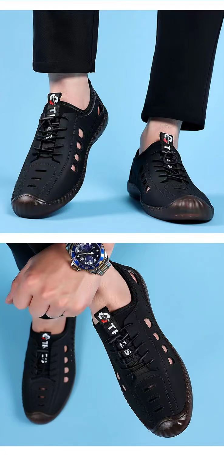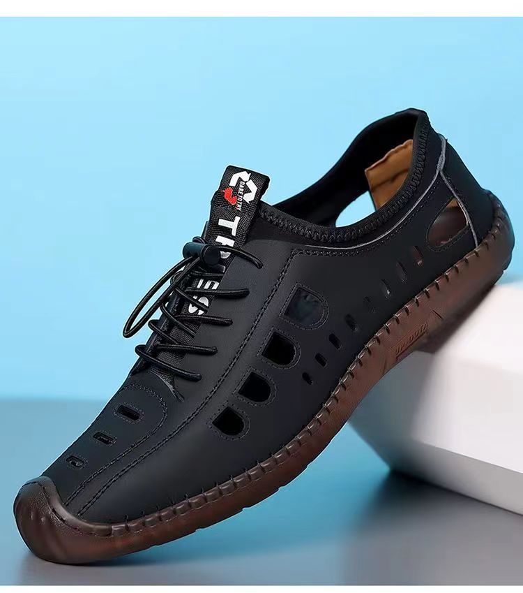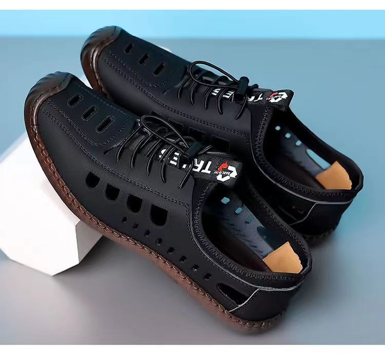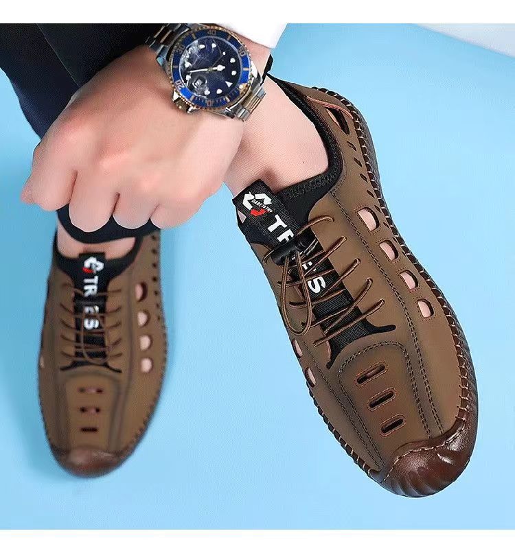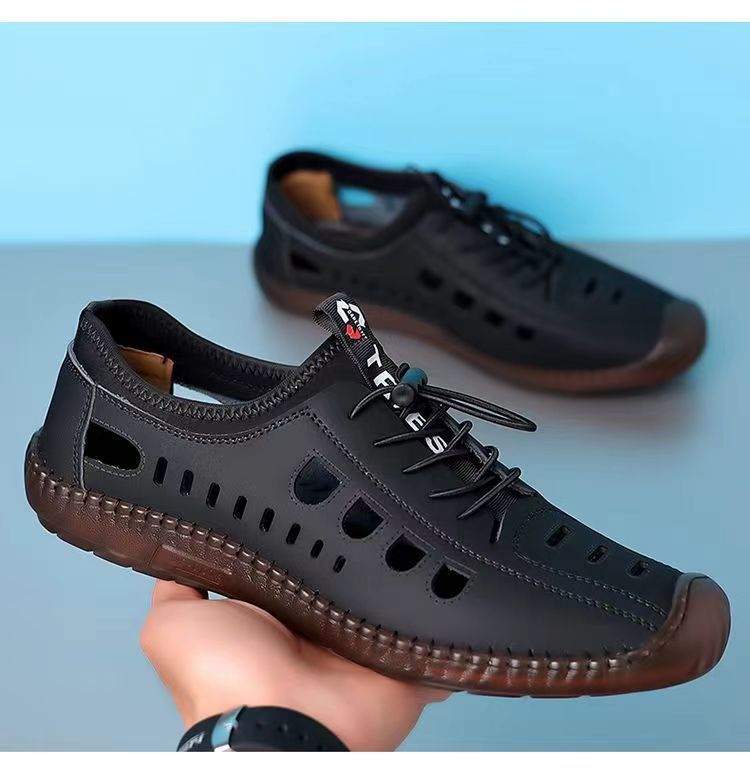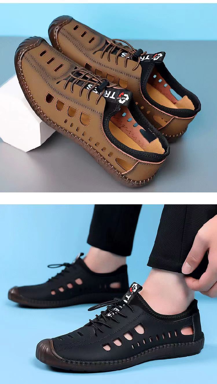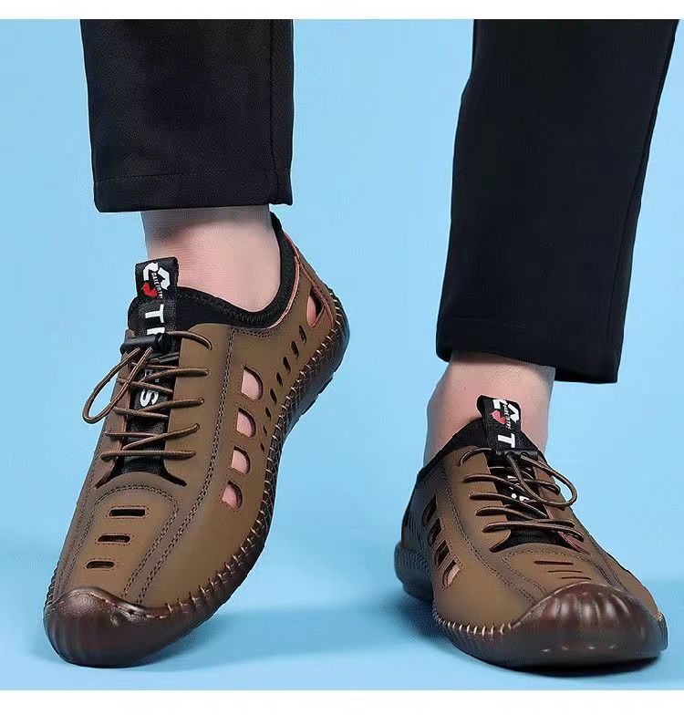 Сандалии мужские летние полые дышащие кожаные сандалии