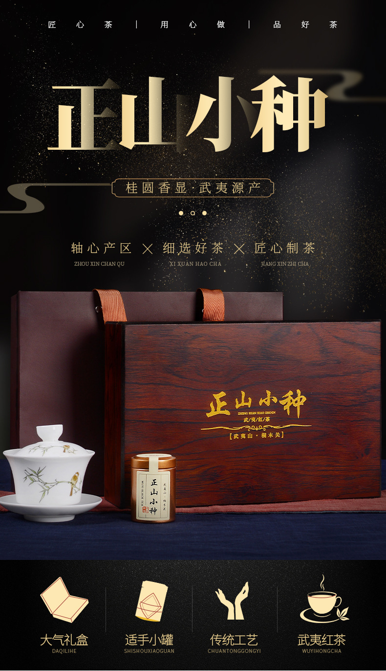 Прямая поставка с фабрики Wuyishan Премиум Черный чай Цзинь Junmei Чжэншань Маленький новый чай из цельного дерева Подарочная коробка 120 г