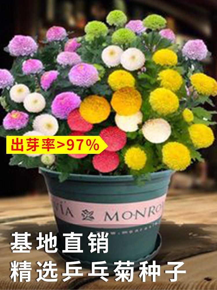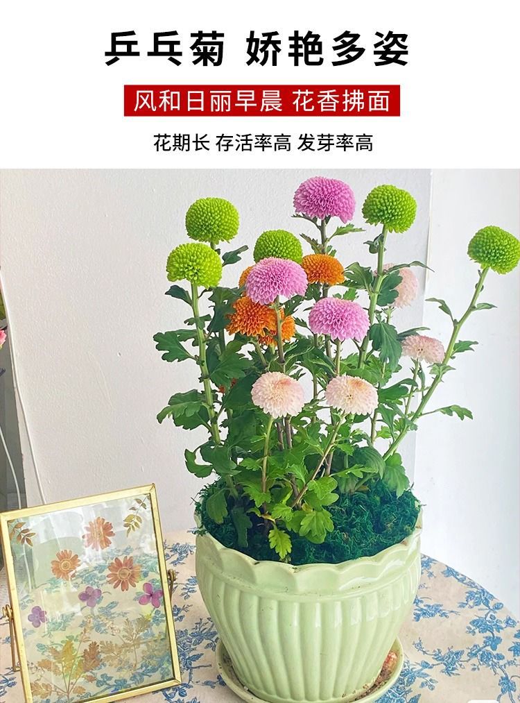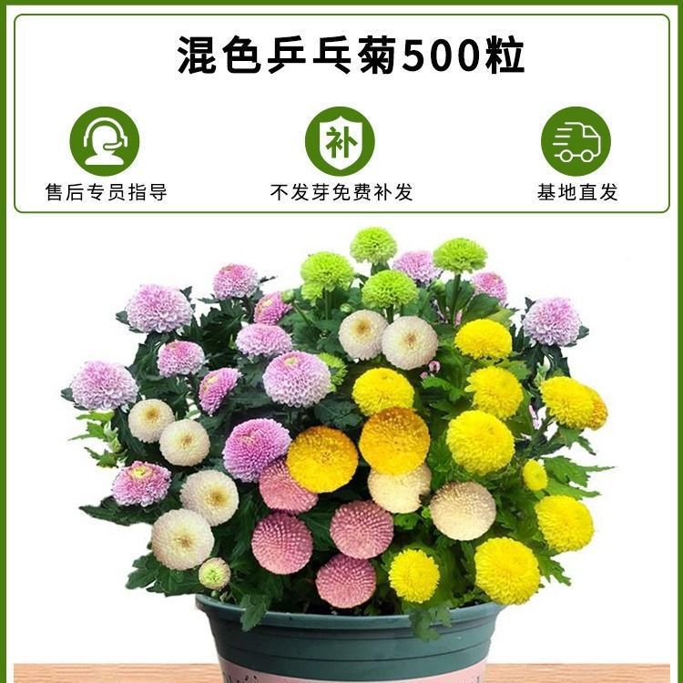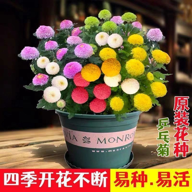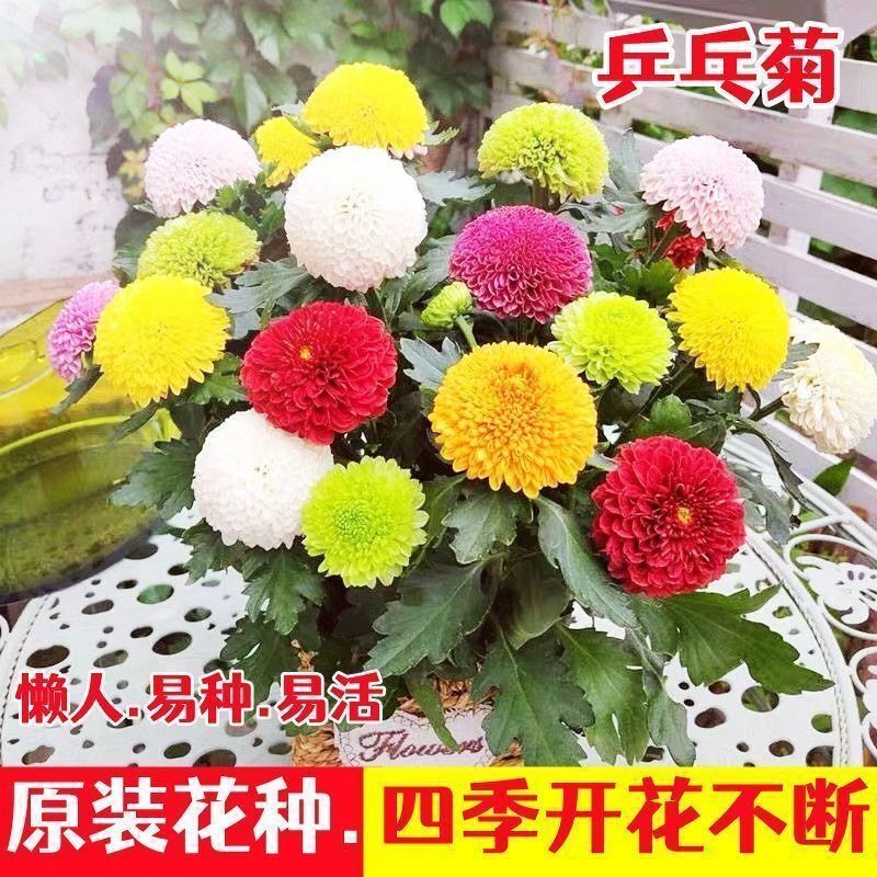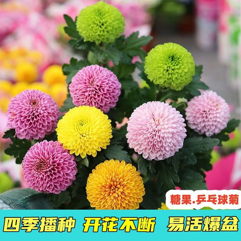 Семена хризантемы для настольного тенниса Четыре сезона Цветение Легкий цветок Крытый балкон Растение Настольный теннис Хризантема Красочные семена