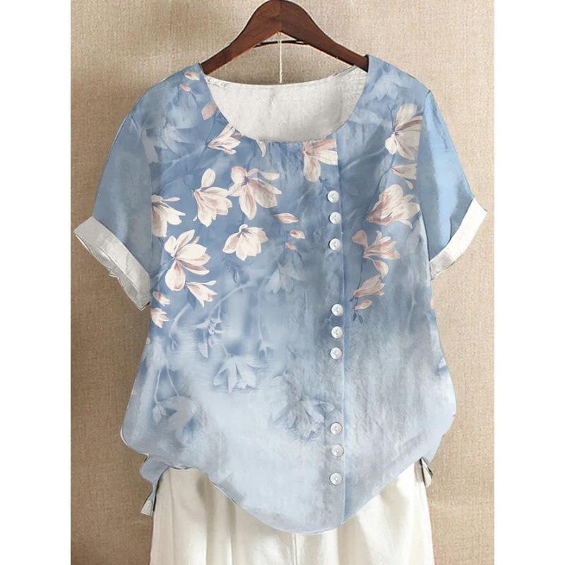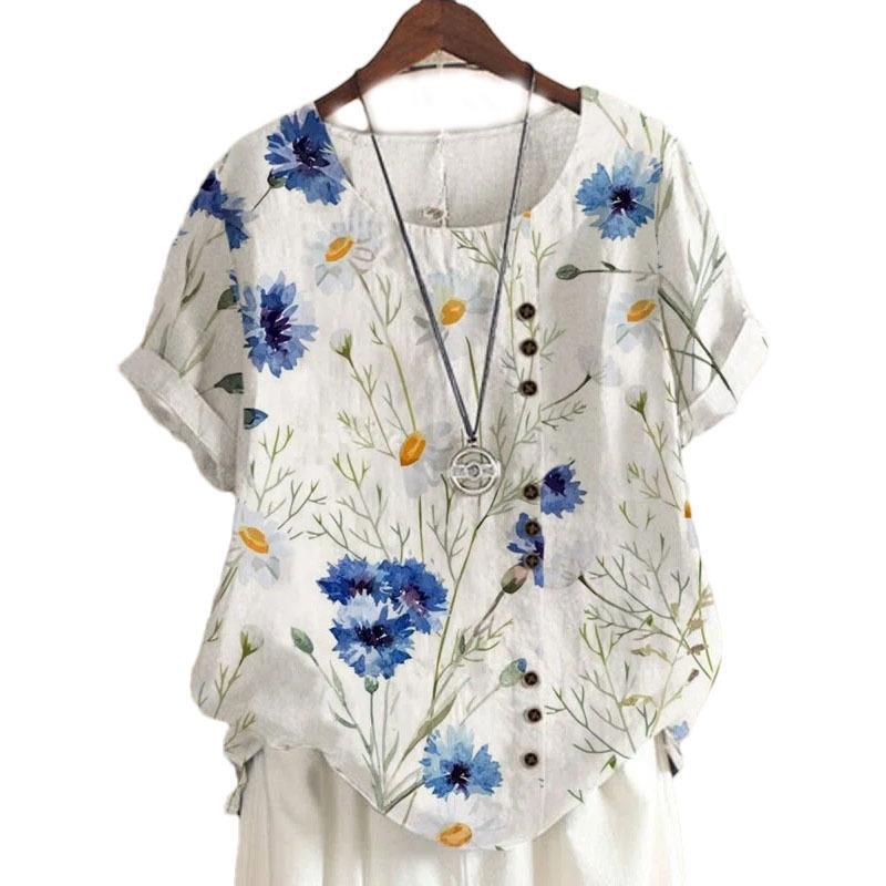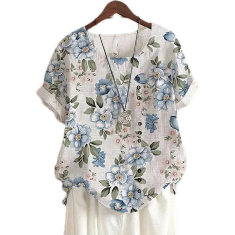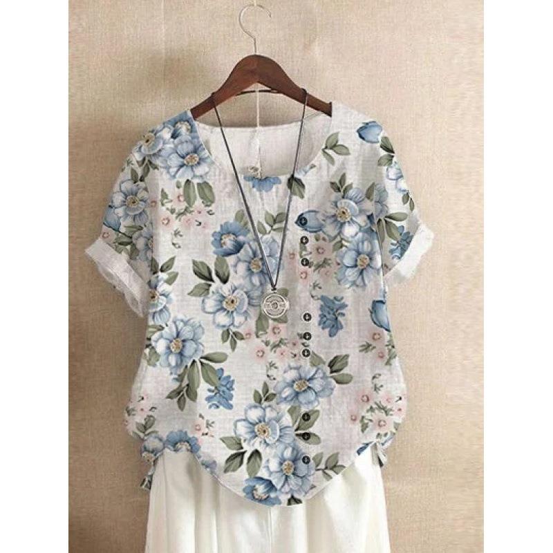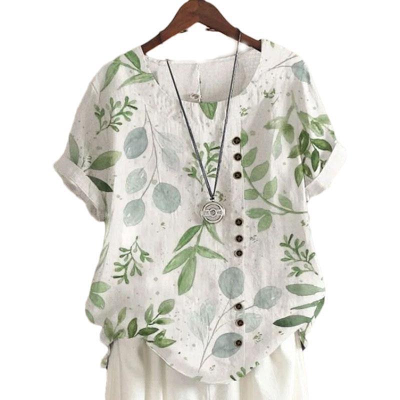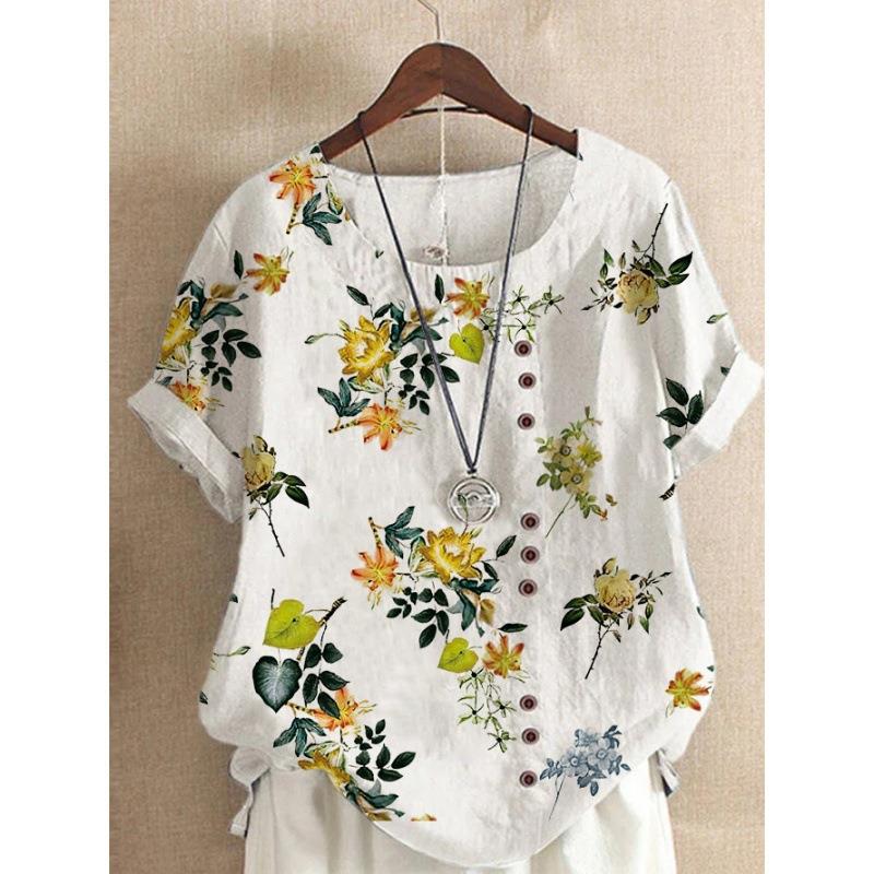 2022 летняя винтажная Свободная Повседневная рубашка из хлопка и льна Amazon AliExpress с принтом, футболка с короткими рукавами для женщин