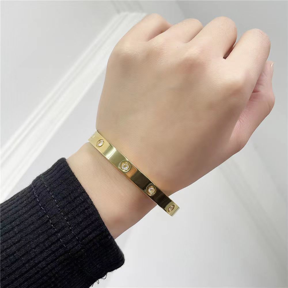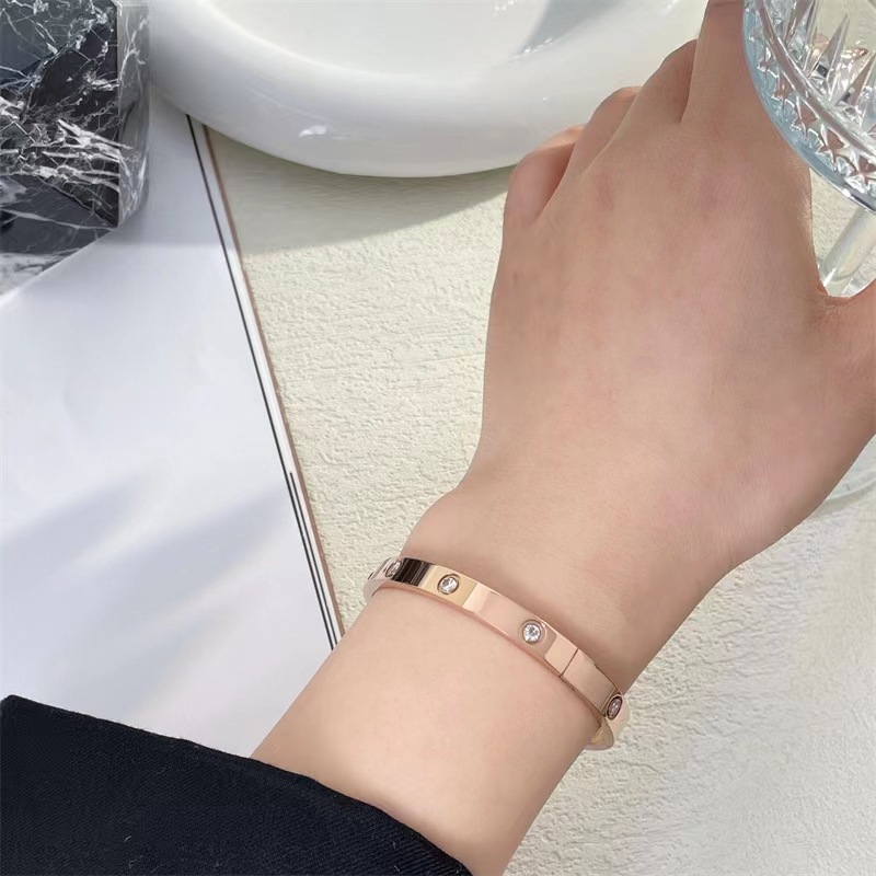 Трансграничная европейская и американская мода розовое золото love полный бриллиант браслет мужской из нержавеющей стали десять бриллиантов пара браслет титановая сталь ручной работы женский