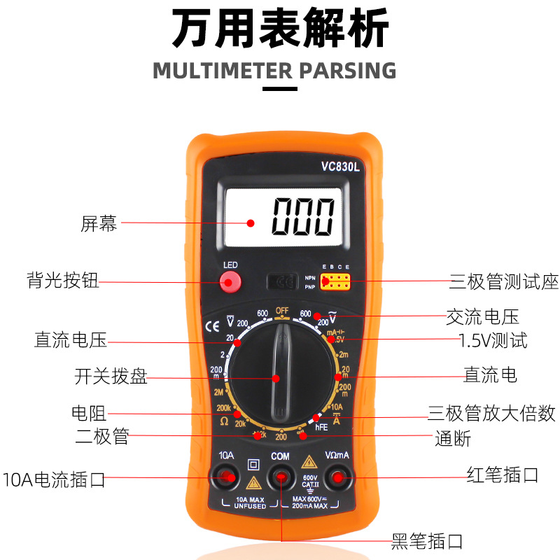 Многофункциональный цифровой универсальный измеритель 830 со светодиодным дисплеем Тестовый измеритель переменного тока для студентов