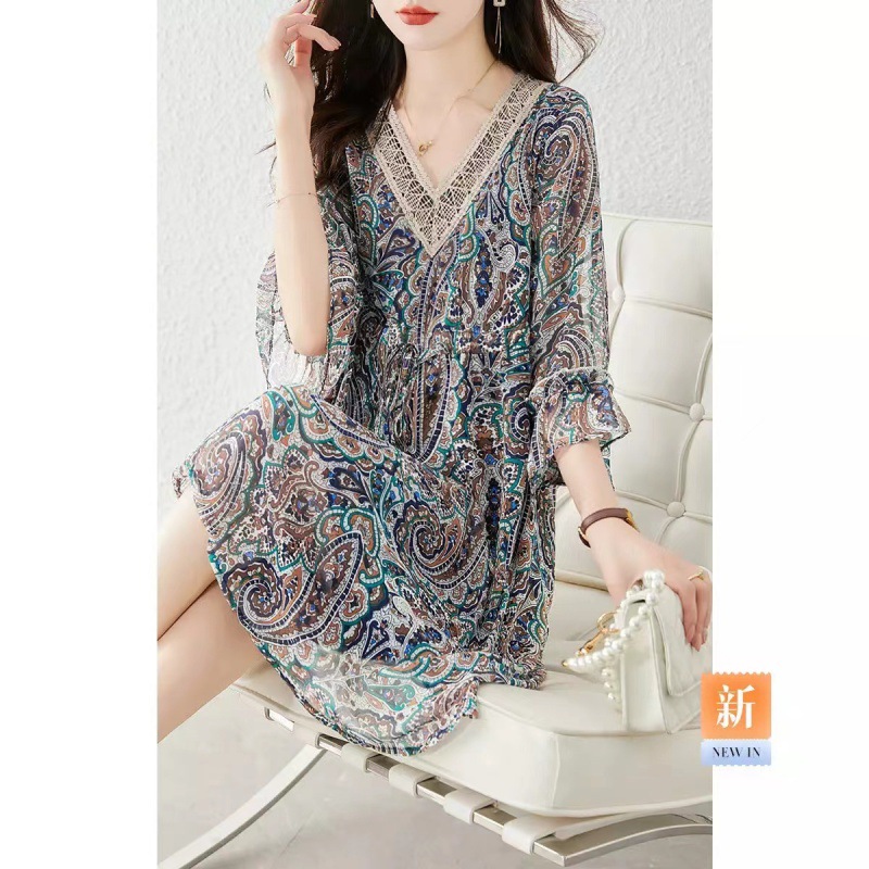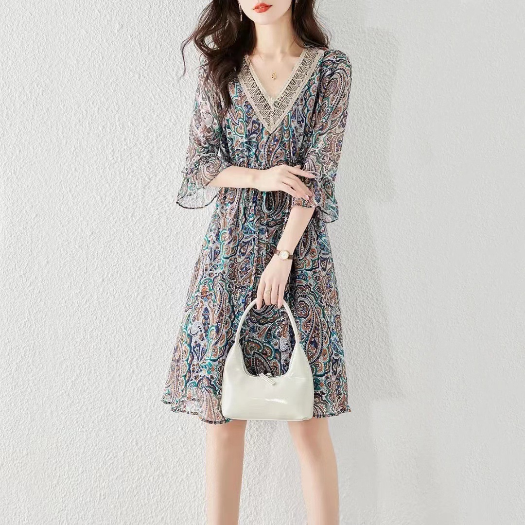 Приталенное пригородное платье с плотной талией, легкое роскошное высококачественное кружевное шифоновое платье в стиле пэчворк с V-образным вырезом и принтом во французском стиле