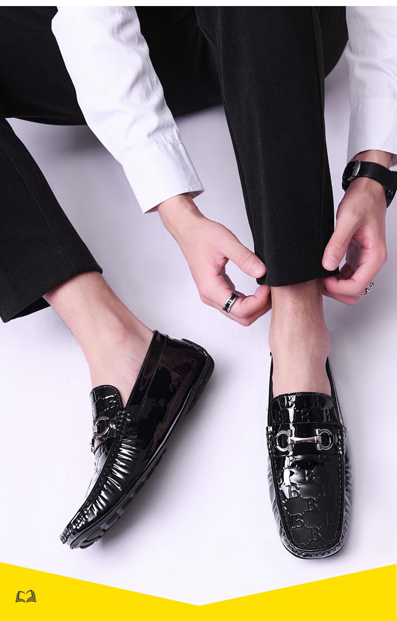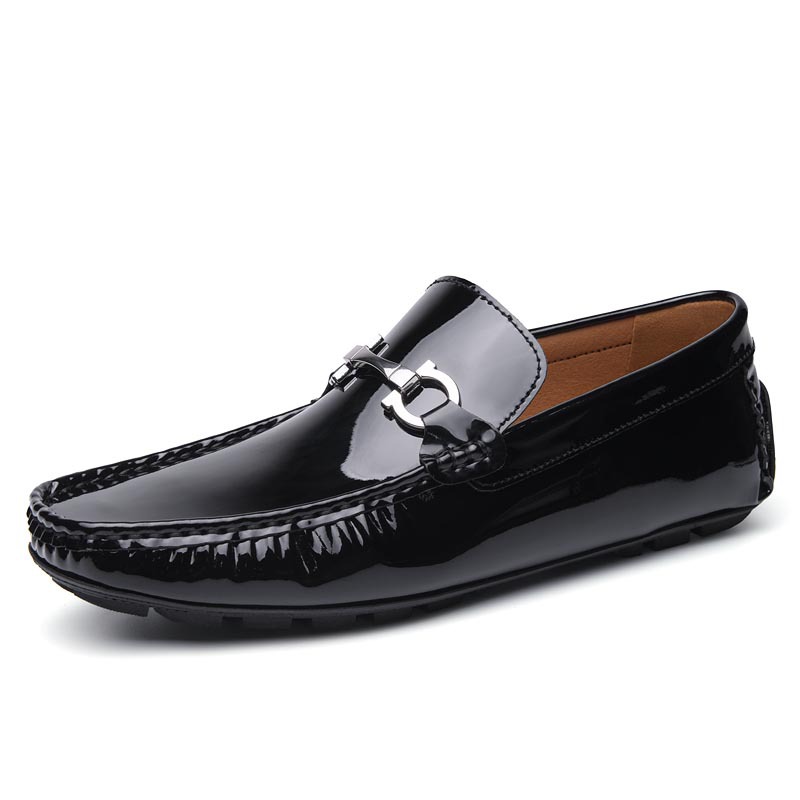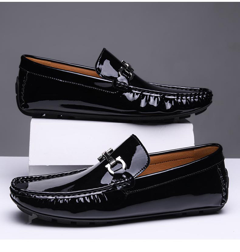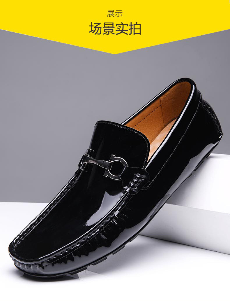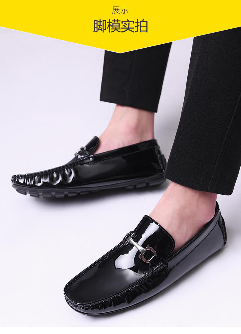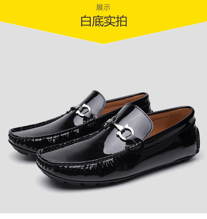 Прямая трансляция Взрывы Обувь из натуральной кожи из воловьей кожи Трансграничная Мужская обувь больших размеров из лакированной кожи без шнуровки для вождения Повседневная кожаная обувь
