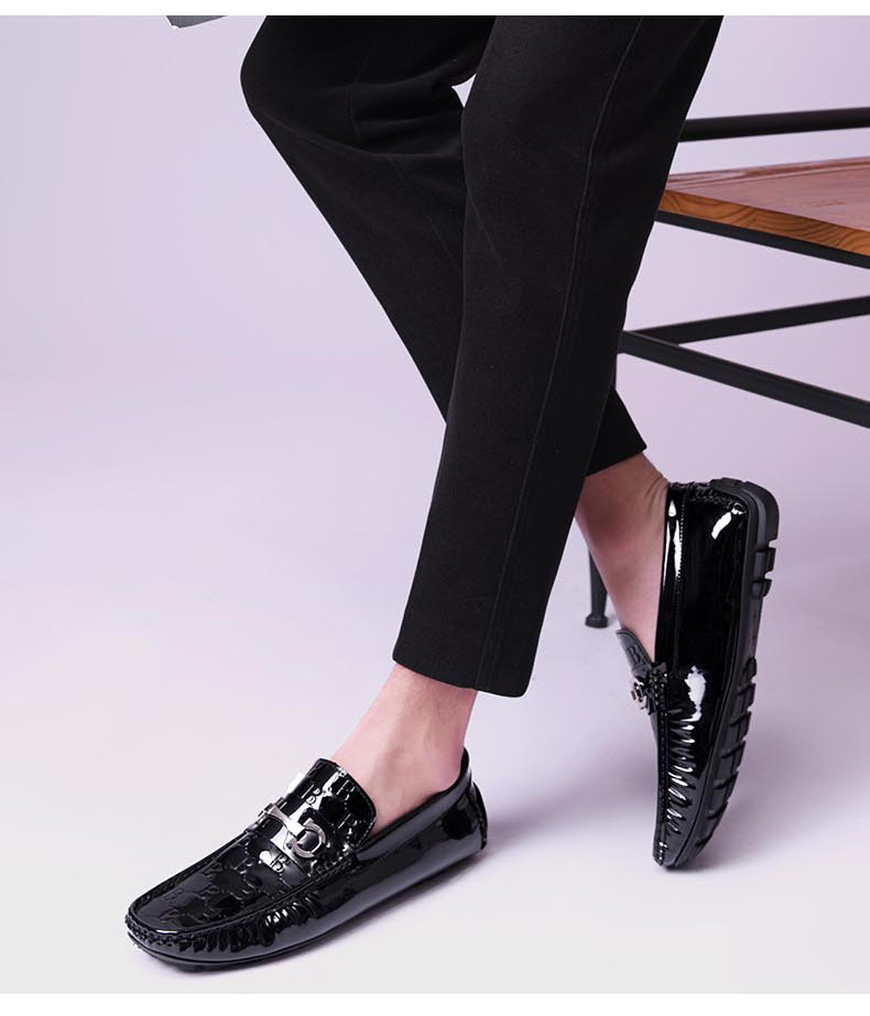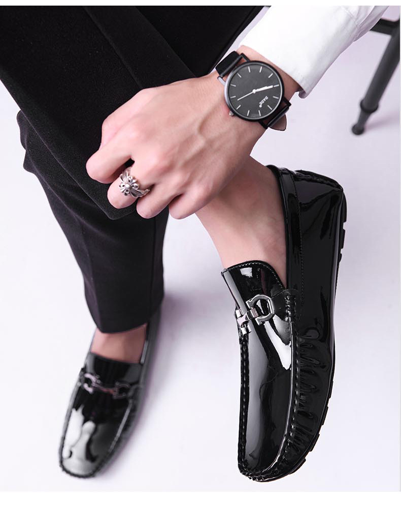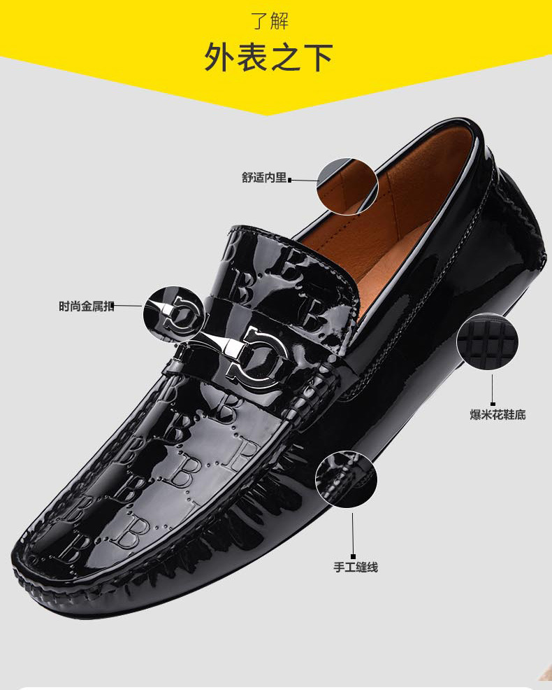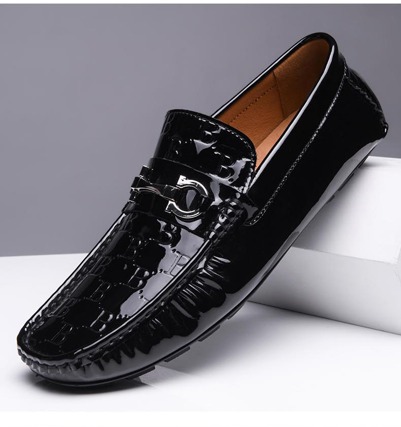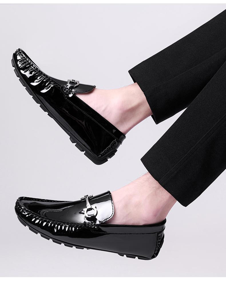 Прямая трансляция Взрывы Обувь из натуральной кожи из воловьей кожи Трансграничная Мужская обувь больших размеров из лакированной кожи без шнуровки для вождения Повседневная кожаная обувь